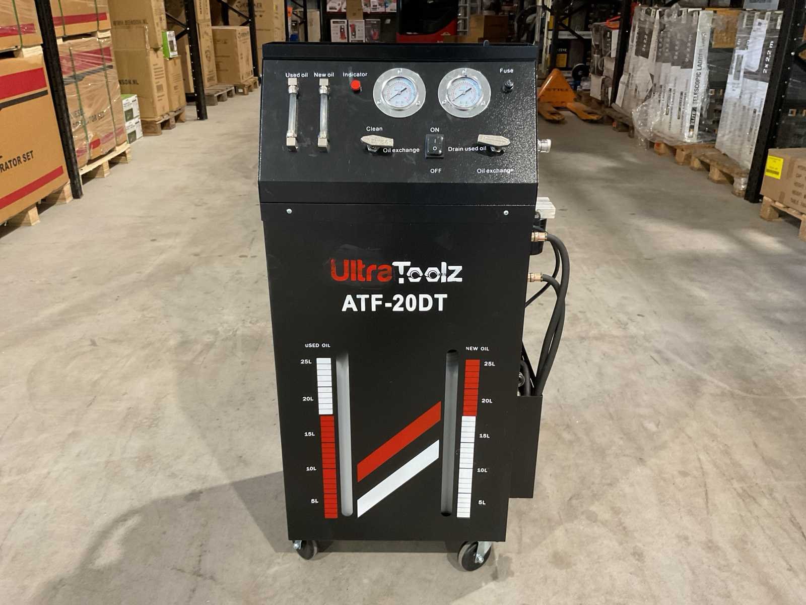 Voorzien van 35-delige adapterset in koffer; Vervangbaar oliefilter; 12V / 230V spanning; Uitwisselbare nieuwe en gebruikte olietanks; maximale druk 20 bar; pompvermogen: 70 Watt; Ongebruikt in doos (Afmeting transport verpakking 540x380x1000 mm lxbxh, gewicht 30.3 kg) Merk: UltraToolz Bouwjaar: 2025 Eigen gewicht: 30.3kg Totale afmeting L: 540mm Totale afmeting Breedte: 380mm Totale afmeting Hoogte: 1000mm
