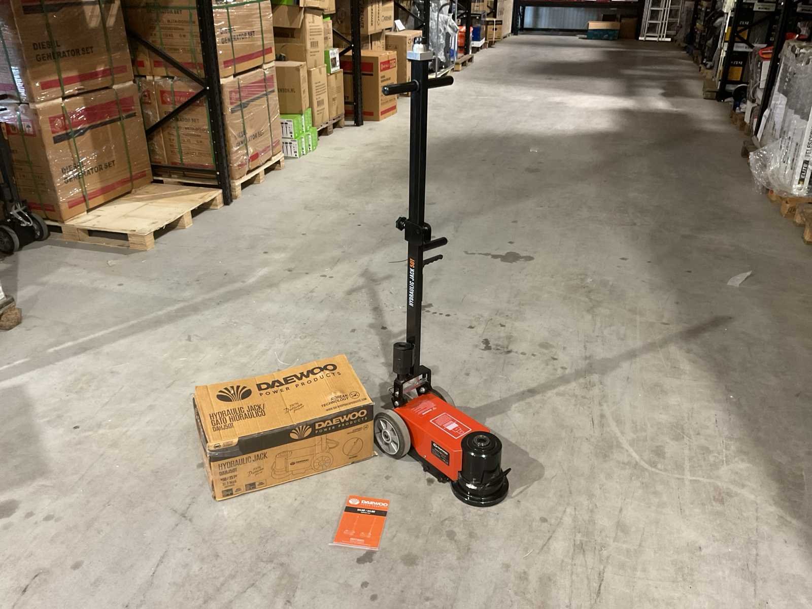 Voorzien van Hydraulische krik; Max. werkhoogte 42 cm; Maximaal draagvermogen 50000 kg; Maximale hoogte 42; Min. werkhoogte 19.5; Ongebruikt in 2 dozen Merk: Daewoo Type: DAHJ50T Bouwjaar: 2025 Capaciteit.: 50t Eigen gewicht: 52kg Totale afmeting L: 580mm Totale afmeting Breedte: 3150mm Totale afmeting Hoogte: 245mm