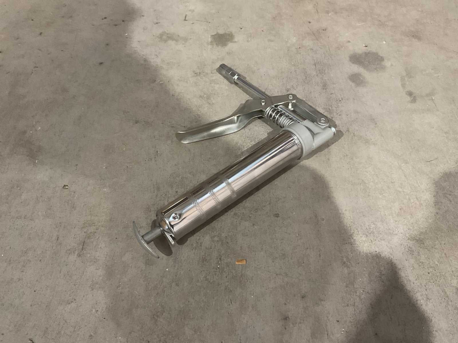 Voorzien van vetspuit; geschikt voor 85 gram vetpatronen; flexibele slang; vaste pijp 145 mm; ongebruikt in doos Transport afmeting 270 x 135 x 40, Gewicht 0.62 kg ) Merk: Benson tools Type: 010391 Bouwjaar: 2025 Eigen gewicht: 0.09kg Totale afmeting L: 270mm Totale afmeting Breedte: 40mm Totale afmeting Hoogte: 135mm