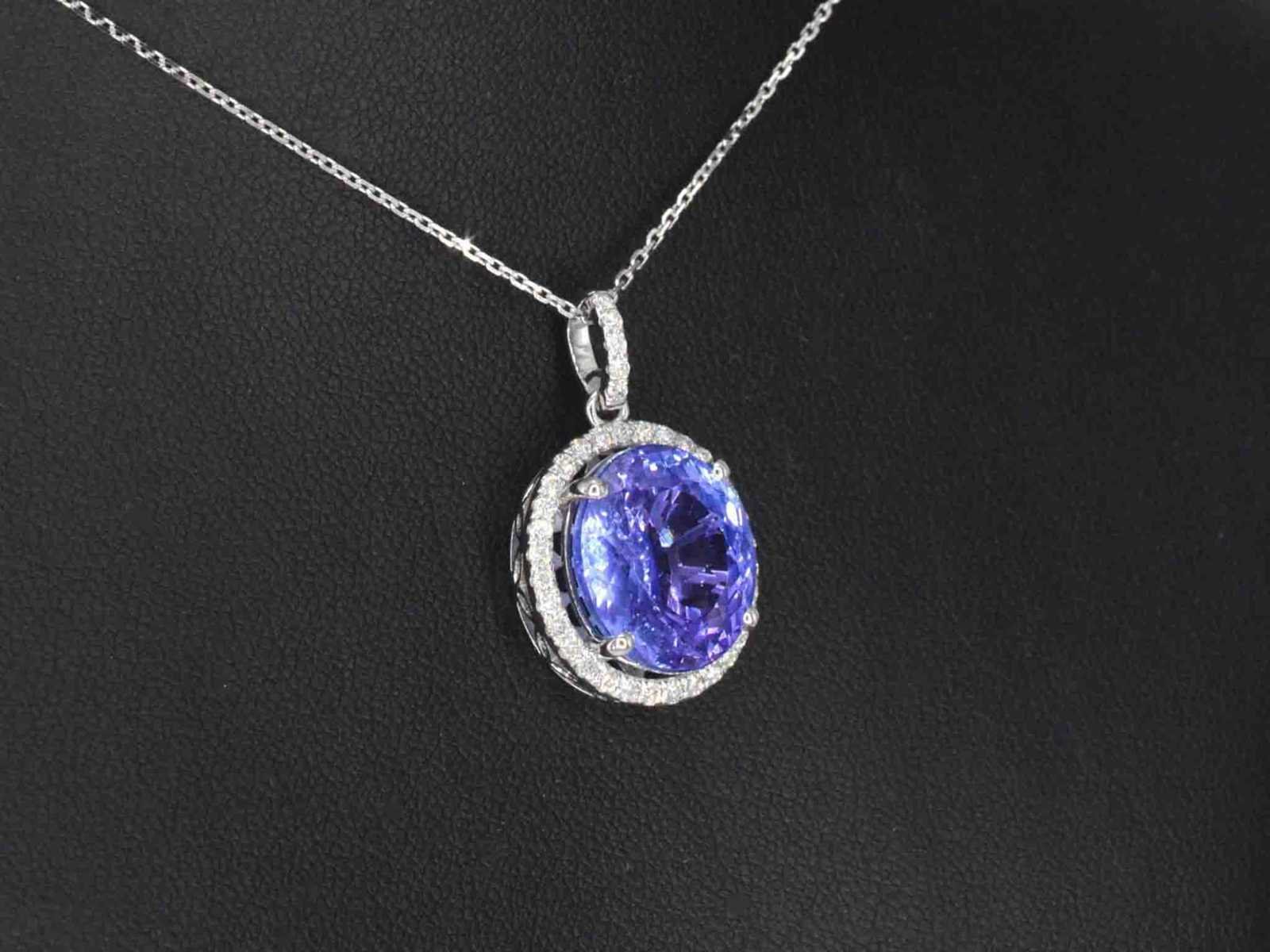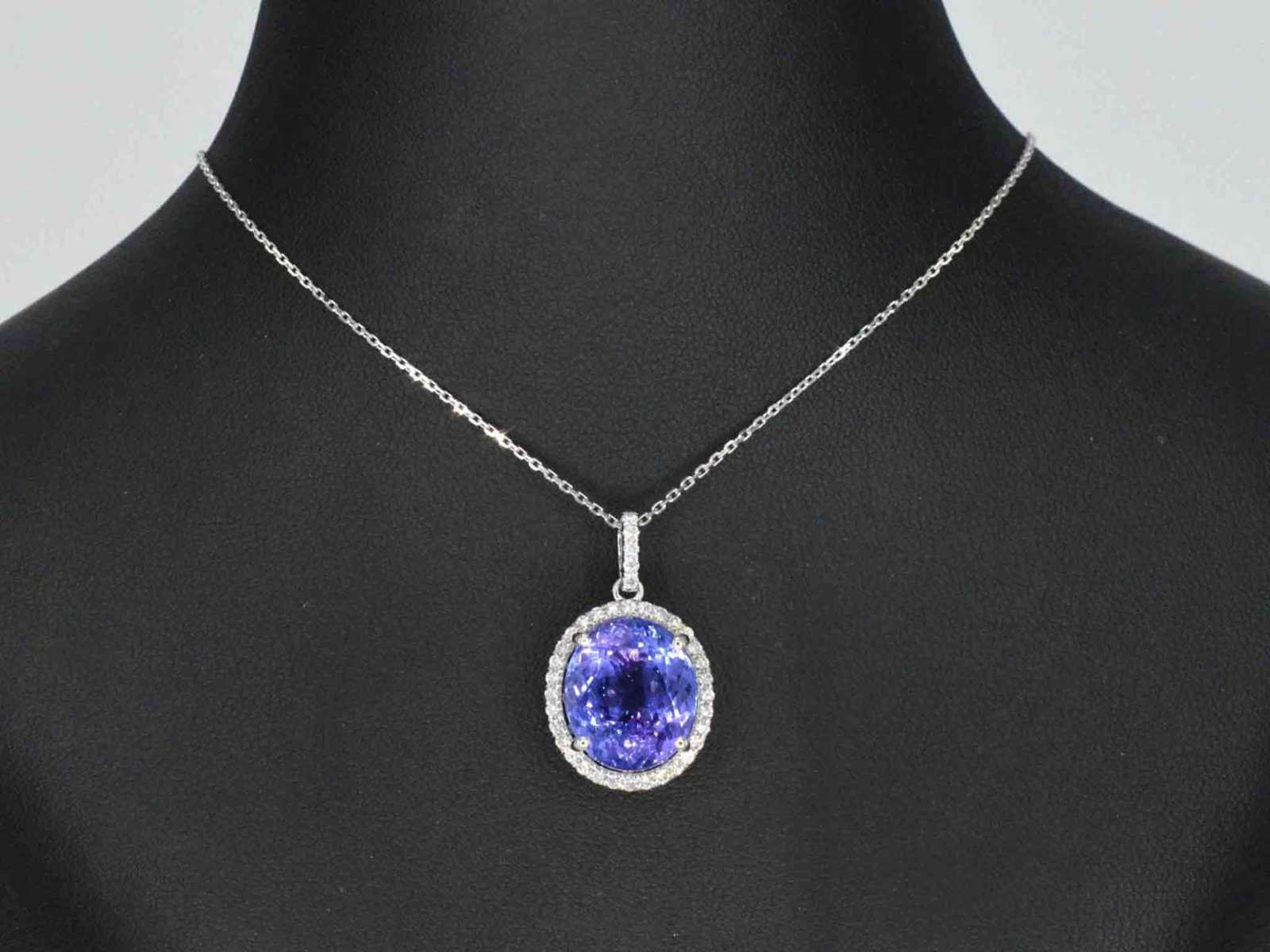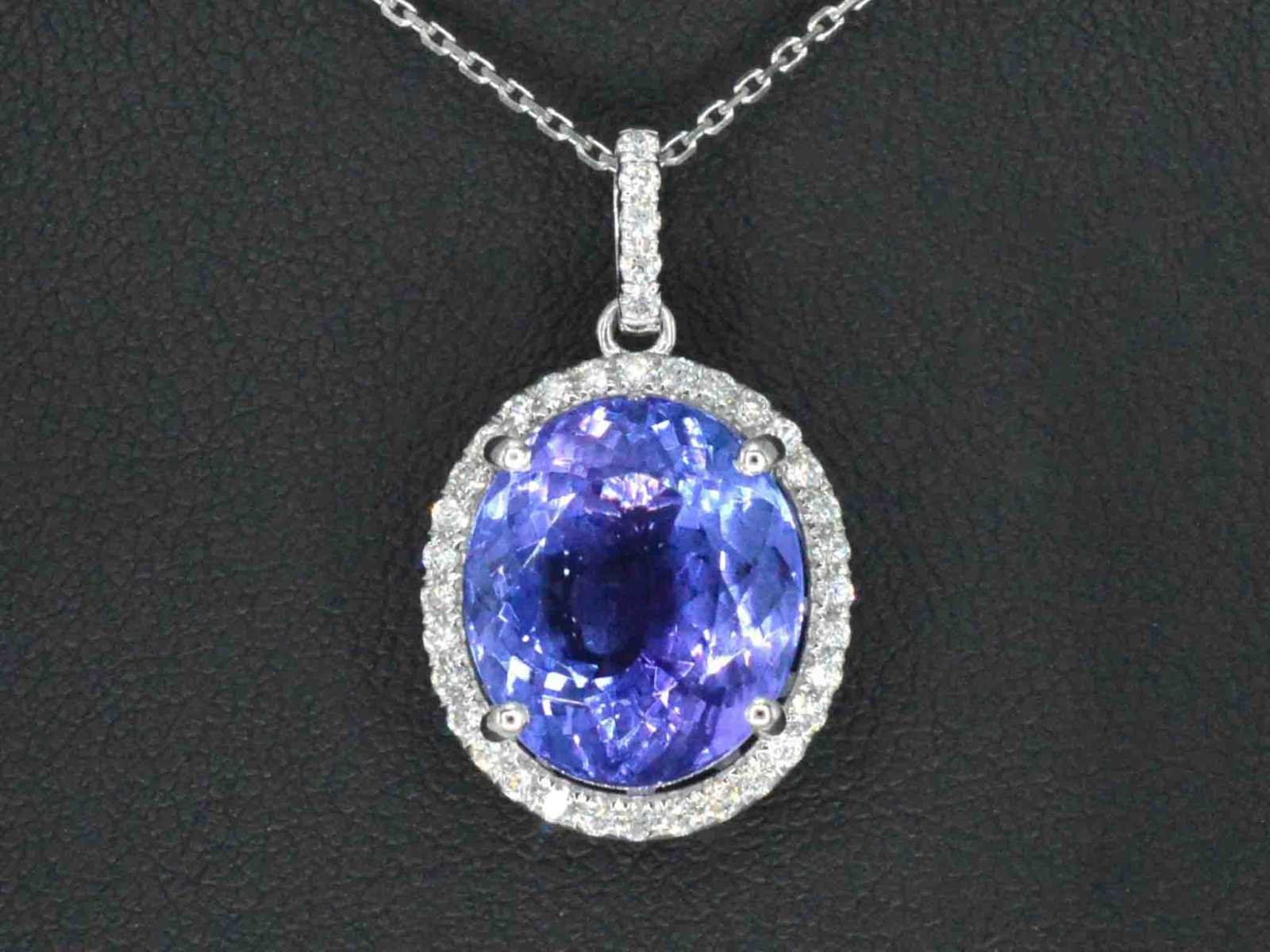 Samenvatting van gegevens Witgouden hanger met diamanten en een tanzaniet Diamant: Natuurlijk; Aantal: 50 stuks; Slijpvorm: Brilljant en single geslepen; Gewicht (carat): 0.60 carat; Kleur: F; Zuiverheid: VS; Slijpkwaliteit: Zeer mooi; Edelsteen: Tanzaniet; Slijpvorm: Oval brilliant cut; Gewicht (carat): 9.69 carat; Kleur: Blueish Violet; Zuiverheid: Transparant; Certificaat: GIA; Certificaat nummer: 6411464243; Juweel: Hanger (incl. Ketting); Gewicht: 7.3 gram; Afmetingen/lengte: Hanger: 25 x 15 mm, Lengte ketting: 42 cm; Materiaal: 18k goud (750); Conditie: Nieuw; Verpakking: Luxe sieradendoos; Toelichting: De kwaliteit is overgenomen van het rapport behorend bij item. De waardebepaling is een beoordeling van een gecertificeerde diamantair, gebaseerd op consumentenprijzen.; Consumentenprijs: € 24.500,- Within 14 days Materiaal: Goud Voornaamste diamant: Natuurlijk Kleur diamant: F Gewicht diamant: 0.60ct Slijpvorm diamant: Brilljant en single geslepen Slijpkwaliteit diamant: Zeer mooi Zuiverheidsgraad diamant: VS Edelsteen: Tanzaniet Kleur edelsteen: Blueish Violet Slijpvorm edelsteen: Oval brilliant cut Zuiverheidsgraad edelsteen: Transparant Totaal gewicht: 7.3g Keurmerk: 750