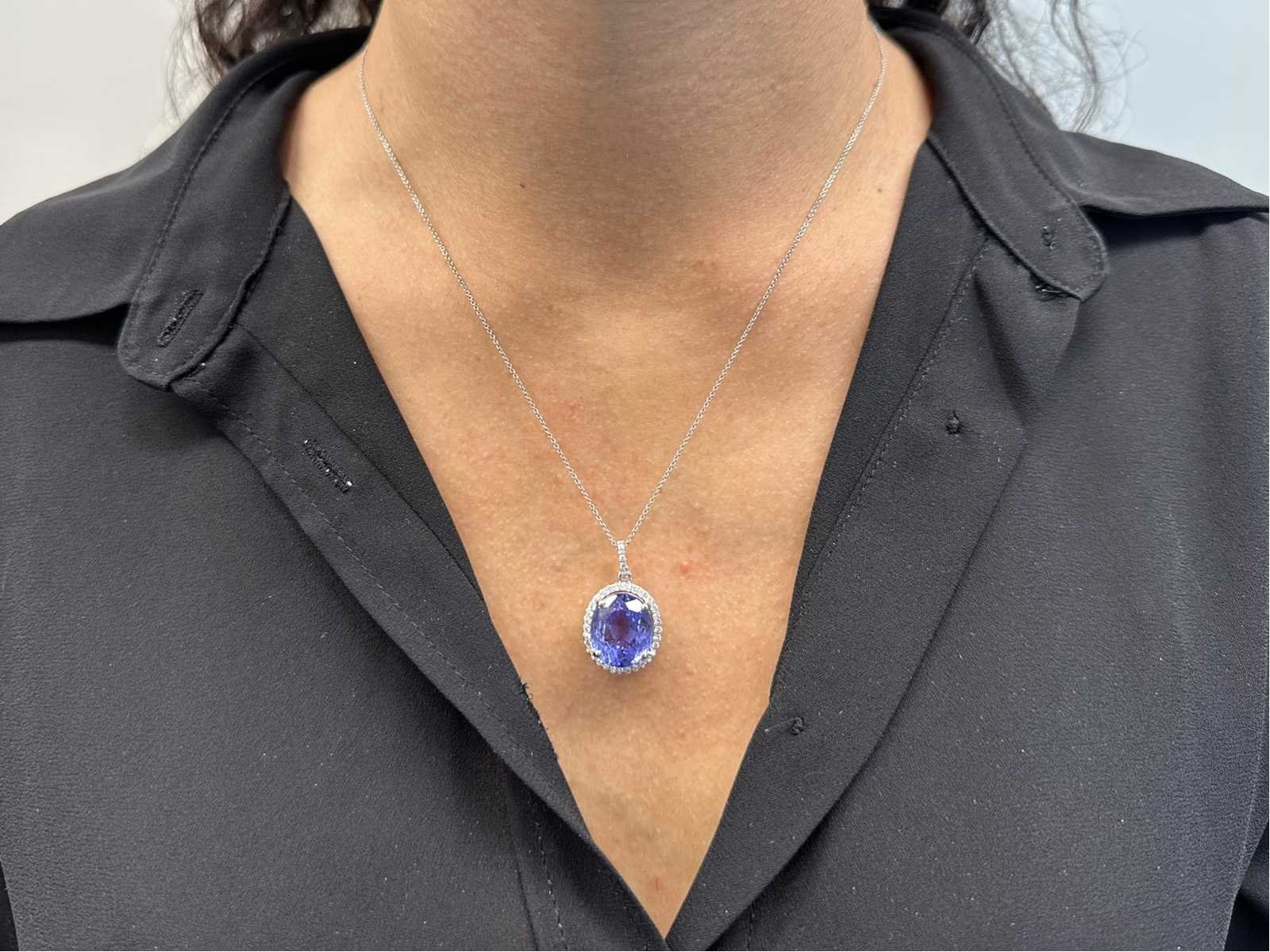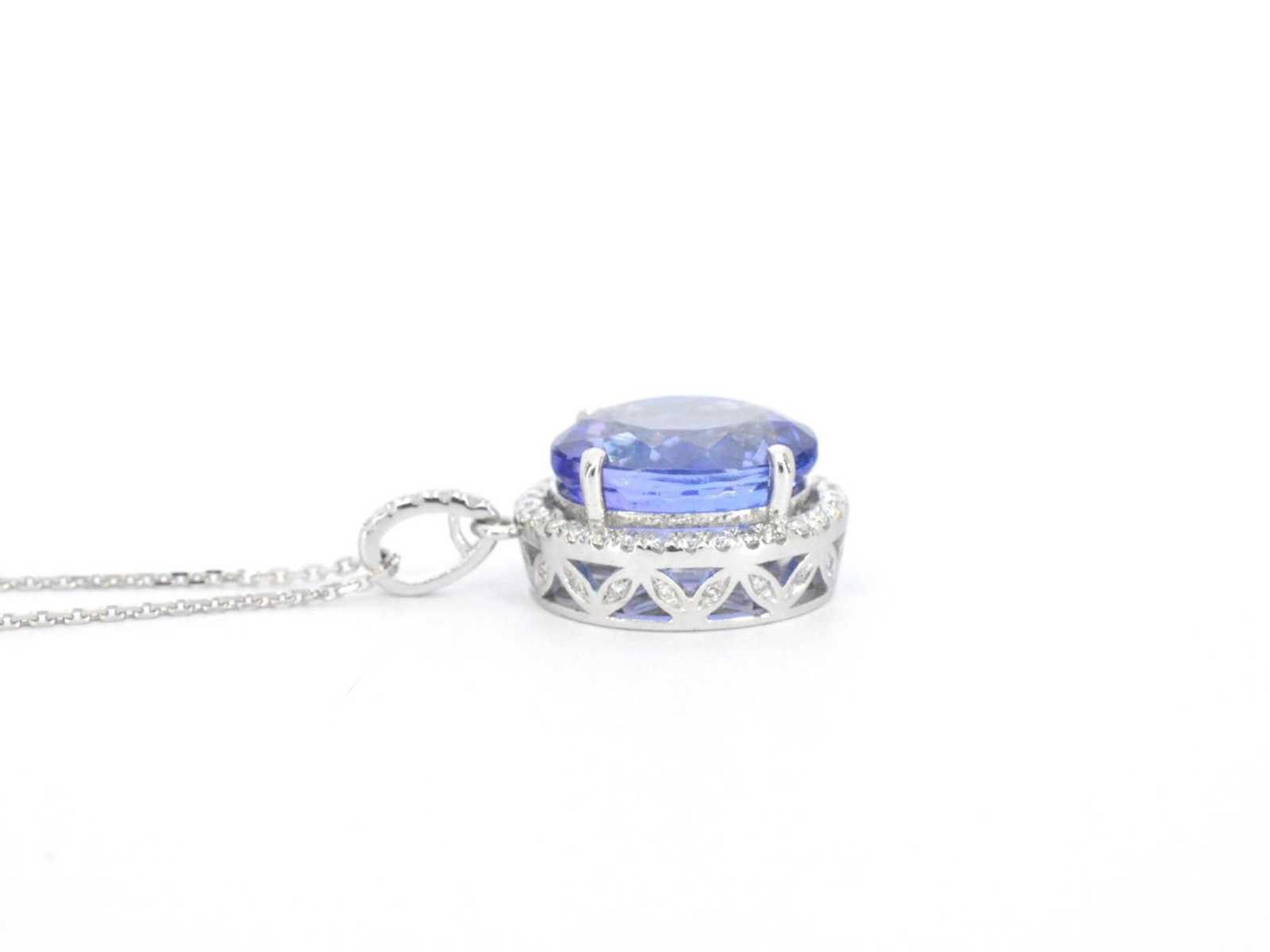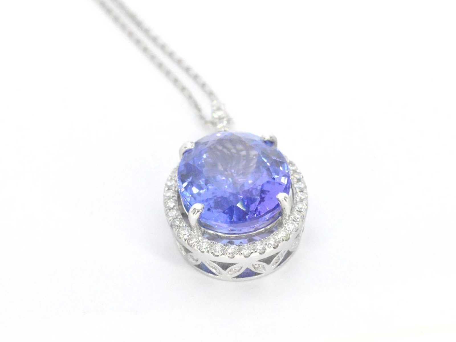 Samenvatting van gegevens Witgouden hanger met diamanten en een tanzaniet Diamant: Natuurlijk; Aantal: 50 stuks; Slijpvorm: Brilljant en single geslepen; Gewicht (carat): 0.60 carat; Kleur: F; Zuiverheid: VS; Slijpkwaliteit: Zeer mooi; Edelsteen: Tanzaniet; Slijpvorm: Oval brilliant cut; Gewicht (carat): 9.69 carat; Kleur: Blueish Violet; Zuiverheid: Transparant; Certificaat: GIA; Certificaat nummer: 6411464243; Juweel: Hanger (incl. Ketting); Gewicht: 7.3 gram; Afmetingen/lengte: Hanger: 25 x 15 mm, Lengte ketting: 42 cm; Materiaal: 18k goud (750); Conditie: Nieuw; Verpakking: Luxe sieradendoos; Toelichting: De kwaliteit is overgenomen van het rapport behorend bij item. De waardebepaling is een beoordeling van een gecertificeerde diamantair, gebaseerd op consumentenprijzen.; Consumentenprijs: € 24.500,- Within 14 days Materiaal: Goud Voornaamste diamant: Natuurlijk Kleur diamant: F Gewicht diamant: 0.60ct Slijpvorm diamant: Brilljant en single geslepen Slijpkwaliteit diamant: Zeer mooi Zuiverheidsgraad diamant: VS Edelsteen: Tanzaniet Kleur edelsteen: Blueish Violet Slijpvorm edelsteen: Oval brilliant cut Zuiverheidsgraad edelsteen: Transparant Totaal gewicht: 7.3g Keurmerk: 750