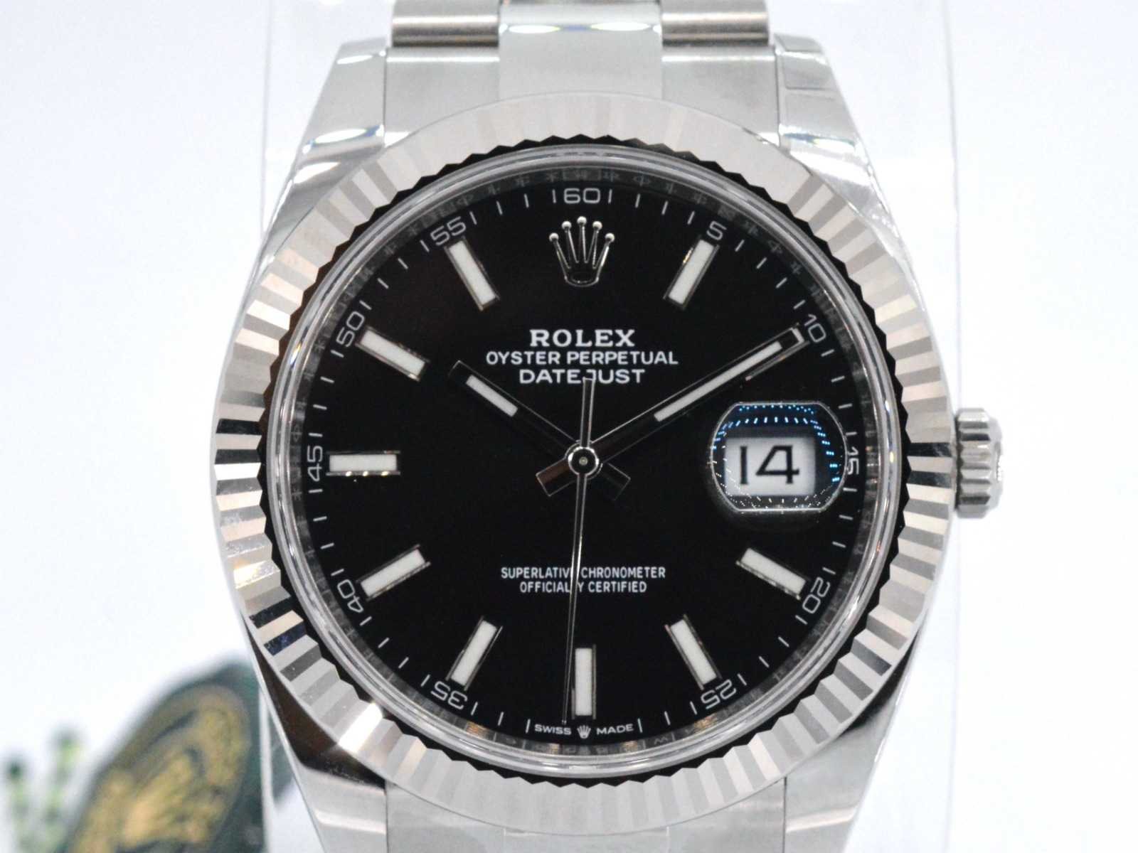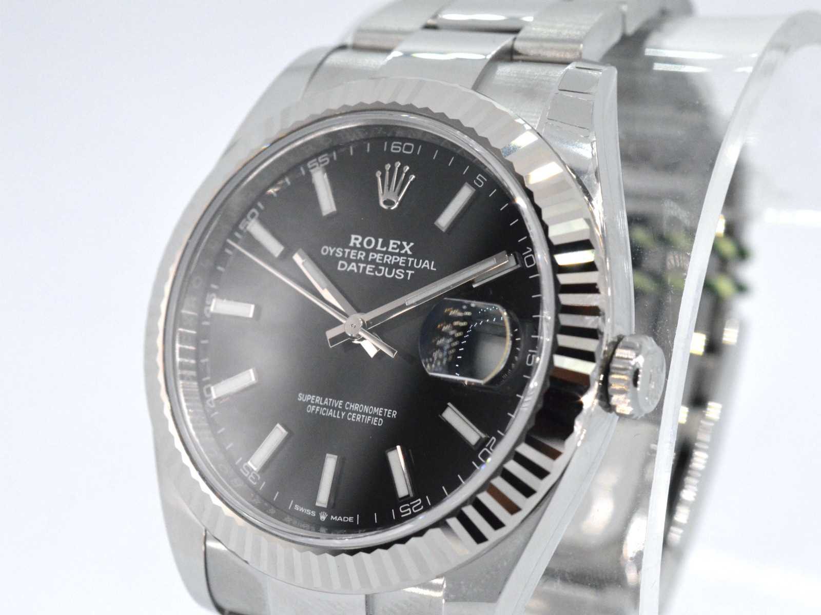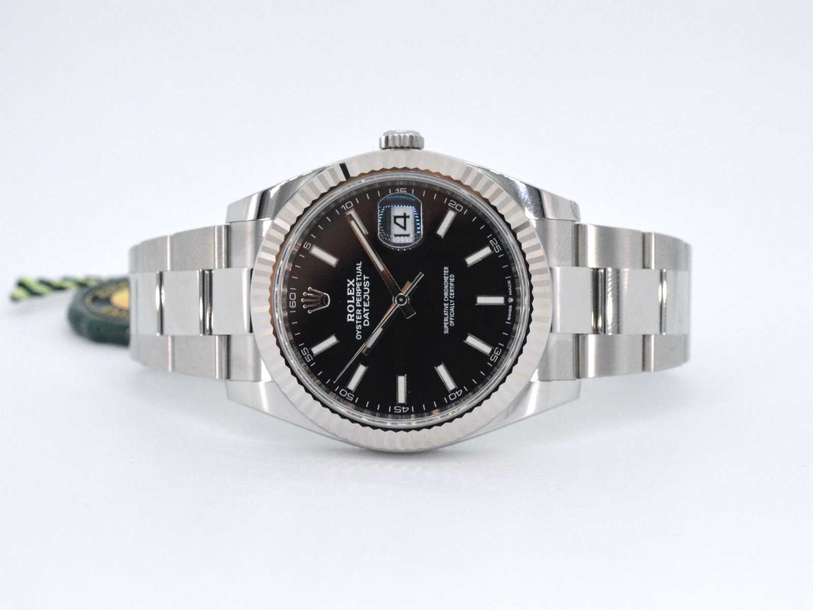 Samenvatting van gegevens Rolex datejust 41 mm 126334 Horloge (Merk): Rolex; Model: datejust 41; Referentie: 126334; Jaar: 2021; Wijzerplaat: zwart; Klok (type): automaat; Kast doorsnede: 41 mm; Lunette: witgoud; Glas: saffierglas; Band: Vouwsluiting; Toebehoren: Orginele doos en papieren; Juweel: Horloge; Materiaal: Staal; Conditie: nieuw; Toelichting: De kwaliteit is overgenomen van het rapport behorend bij item. De waardebepaling is een beoordeling van een gecertificeerde diamantair, gebaseerd op consumentenprijzen.; Within 14 days
