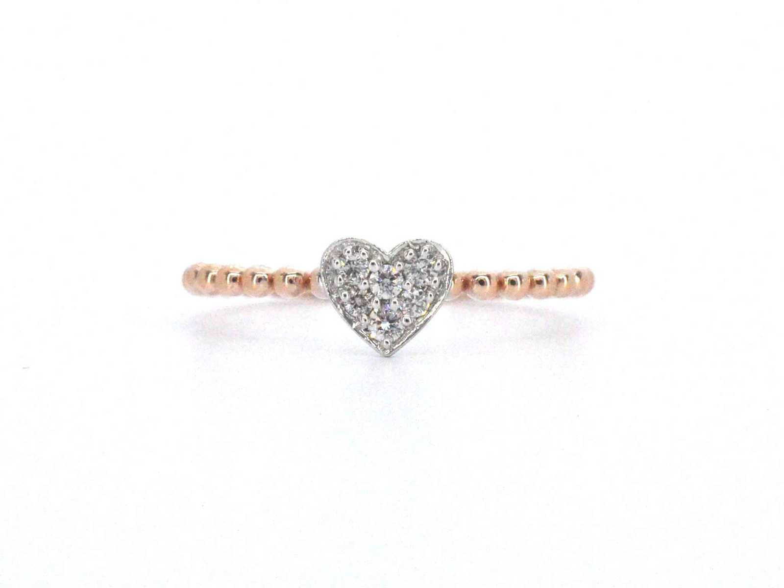 Samenvatting van gegevens Rosegouden ring met een hartje vol gezet met diamanten Diamant: Natuurlijk; Slijpvorm: Briljant geslepen; Gewicht (carat): 0.12 carat; Kleur: F-G; Zuiverheid: SI-P; Slijpkwaliteit: Zeer mooi; Juweel: Ring; Gewicht: 1 gram; Ringmaat (op maat gemaakt*): 54 (17.25 mm); Materiaal: 14k goud (585); Conditie: Nieuw; Verpakking: Luxe sieradendoos; Toelichting: De kwaliteit is overgenomen van het rapport behorend bij item. De waardebepaling is een beoordeling van een gecertificeerde diamantair, gebaseerd op consumentenprijzen.; Consumentenprijs: € 963,- Within 14 days Materiaal: Goud Voornaamste diamant: Natuurlijk Gewicht diamant: 0.12ct Totaal gewicht: 1g Keurmerk: 585 Kleur diamant: F-G Slijpvorm diamant: Briljant geslepen Slijpkwaliteit diamant: Zeer mooi Zuiverheidsgraad diamant: SI-P