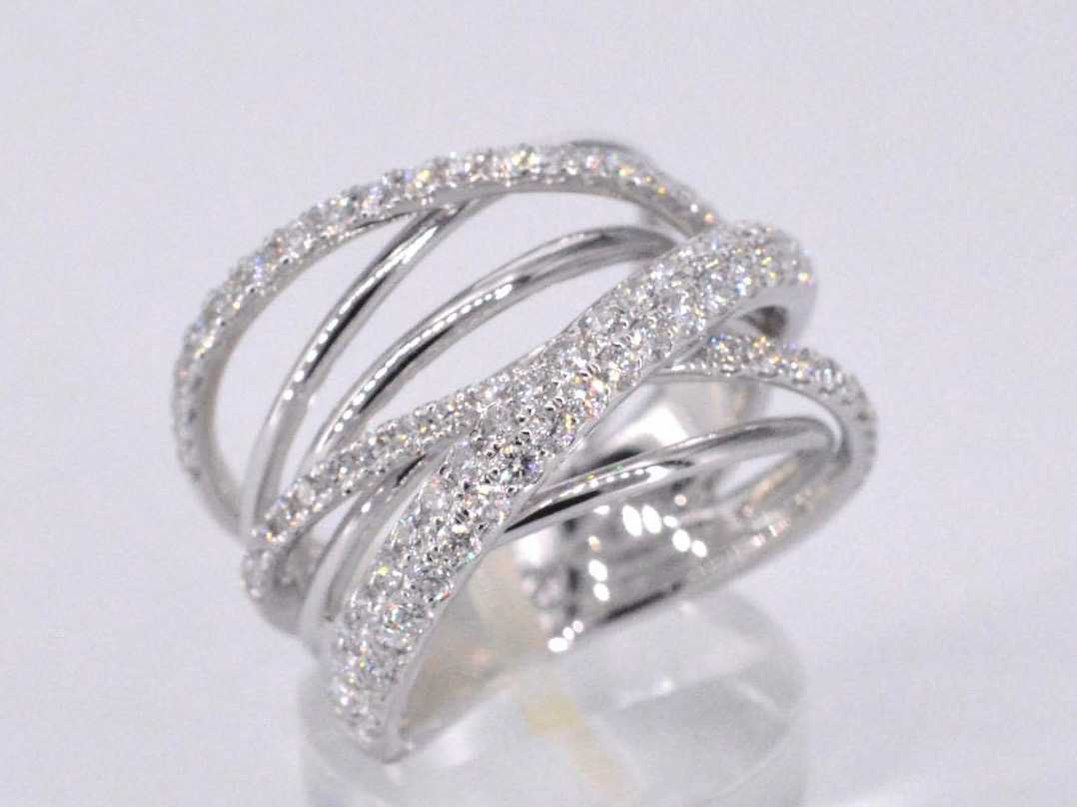 Samenvatting van gegevens Witgouden design ring met diamanten Diamant: Natuurlijk; Slijpvorm: Briljant geslepen; Gewicht (carat): 1.50 carat; Kleur: F-G; Zuiverheid: VS; Slijpkwaliteit: Zeer mooi; Juweel: Ring; Gewicht: 10.7 gram; Ringmaat (op maat gemaakt*): 53 (17 mm); Materiaal: 18K goud (750); Conditie: Nieuw; Verpakking: Luxe sieradendoos; Toelichting: De kwaliteit is overgenomen van het rapport behorend bij item. De waardebepaling is een beoordeling van een gecertificeerde diamantair, gebaseerd op consumentenprijzen.; Consumentenprijs: € 10.780,- Within 14 days Materiaal: Goud Voornaamste diamant: Natuurlijk Gewicht diamant: 1.50ct Totaal gewicht: 10.7g Keurmerk: 750 Kleur diamant: F-G Slijpvorm diamant: Briljant geslepen Slijpkwaliteit diamant: Zeer mooi Zuiverheidsgraad diamant: VS