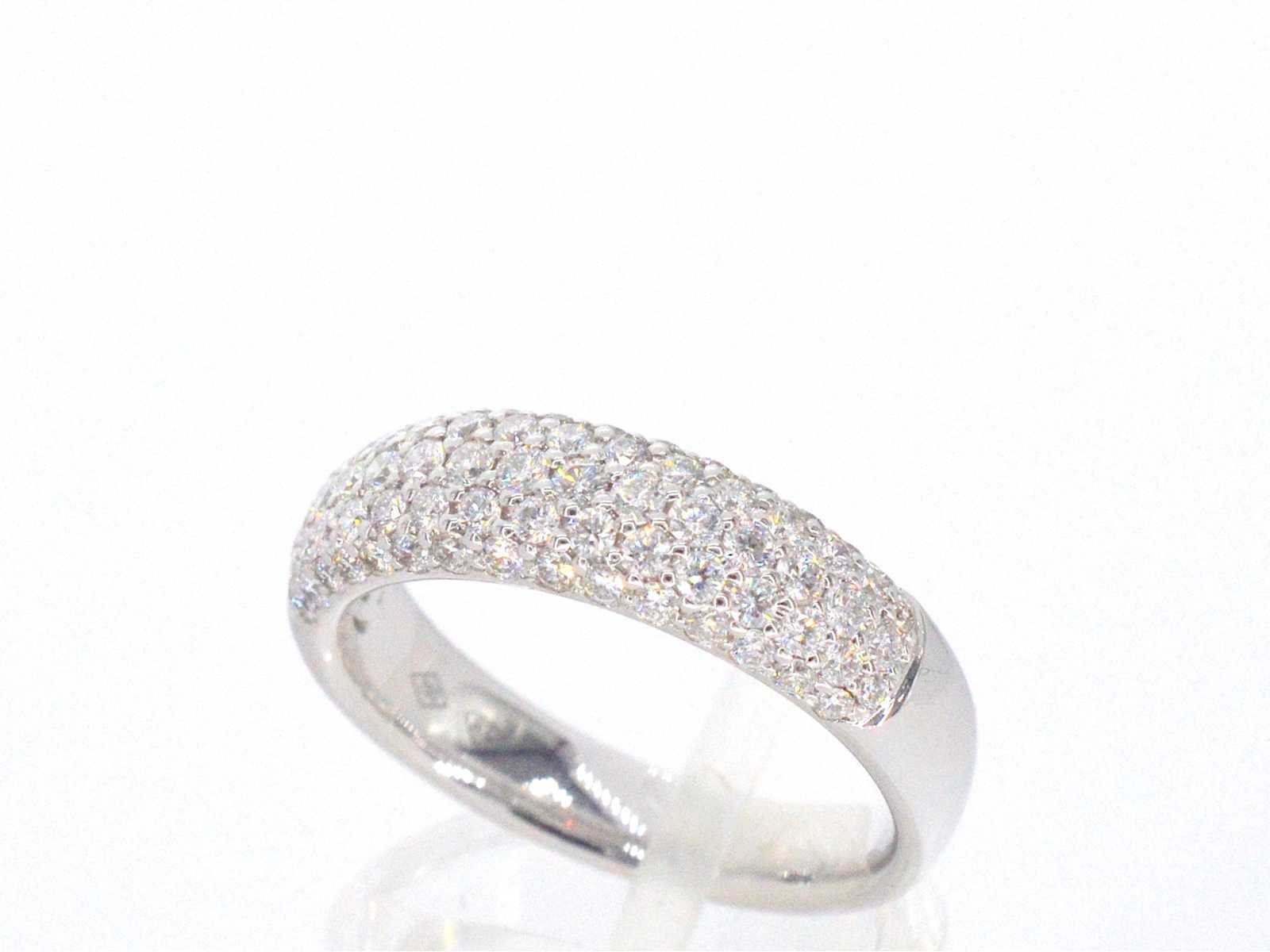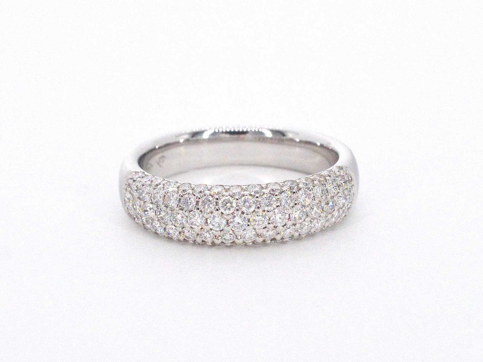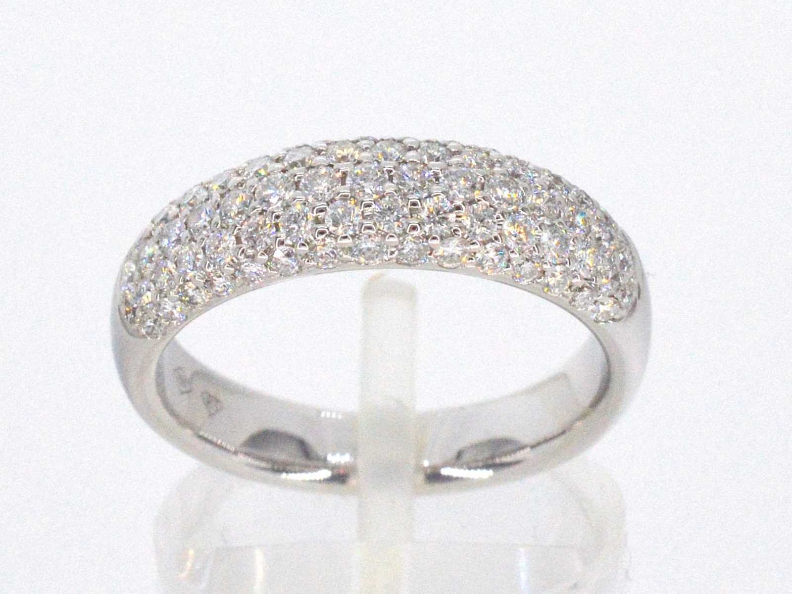 Samenvatting van gegevens Witgouden pave ring met diamanten 0.90 carat Aantal: 77 stuks; Slijpvorm: Briljant geslepen; Gewicht (carat): 0.90 carat; Kleur: F-G; Zuiverheid: VS; Slijpkwaliteit: Zeer mooi; Juweel: Ring; Gewicht: 5 gram; Ringmaat (op maat gemaakt*): 53 (17 mm); Materiaal: 18K goud (750); Conditie: Nieuw; Verpakking: Luxe sieradendoos; Toelichting: De kwaliteit is overgenomen van het rapport behorend bij item. De waardebepaling is een beoordeling van een gecertificeerde diamantair, gebaseerd op consumentenprijzen.; Consumentenprijs: € 6.930,- Within 14 days Materiaal: Goud Gewicht diamant: 0.90ct Totaal gewicht: 5g Keurmerk: 750 Kleur diamant: F-G Slijpvorm diamant: Briljant geslepen Slijpkwaliteit diamant: Zeer mooi Zuiverheidsgraad diamant: VS