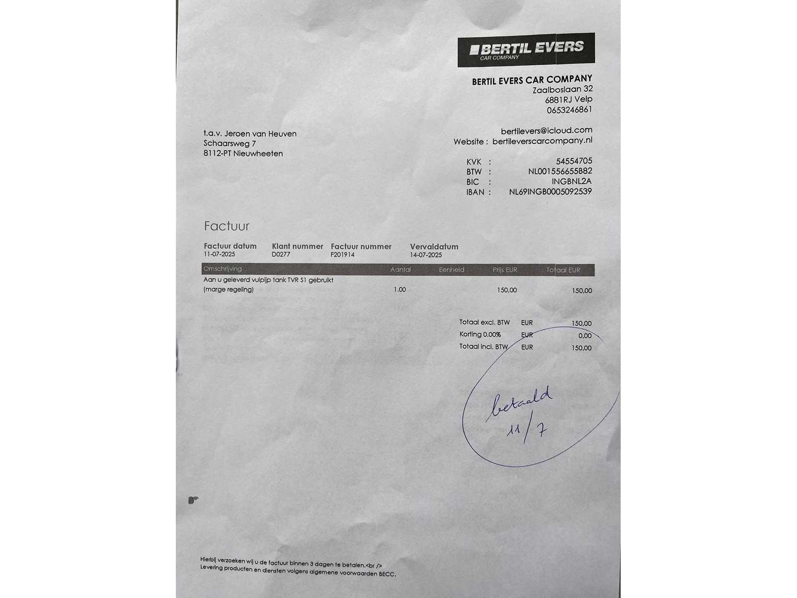 Omdat dit kavel niet in Spijkenisse staat moet u ons een mail sturen dan krijgt u van ons het adres. Vermeld wel het veilingnummer en kavel nummer zodat het voor ons makkelijker zoeken is. Kenteken: 94-HP-KH Merk: TVR Model: S Type: 107 kW Cilinderinhoud: 2792cc Vermogen (kW): 110kW Afgelezen mijlenstand: 64859mi Chassisnummer: SA9DS28P8JB019120 Laadvermogen: 0kg Datum eerste toelating: 1988-01-15 Datum eerste toelating (NL): 2002-01-08 APK vervaldatum: 2026-02-06 Kleur: bruin Stuurwiel: links Emissieklasse: 0 Aantal deuren: 2 Ledig gewicht: 990kg Bruto BPM (NL): 7229€ Aantal cilinders: 6 Carrosserie: cabriolet Onderhoudshistorie: Ja gedeeltelijk Carfax Link: https://was.carfax.eu/v0/api/ccdid/5100016408/svc/201/vinreg/94HPKH/checksum/eyJhbGciOiJIUzI1NiIsInR5cCI6IkpXVCJ9.eyJleHAiOjE3Njc1Mjc5Mzh9.fLp0BRld6AqaLhVJibvDfWA8K71UP01pKGAWqMAk5NE startinformatie : Start en rijdt