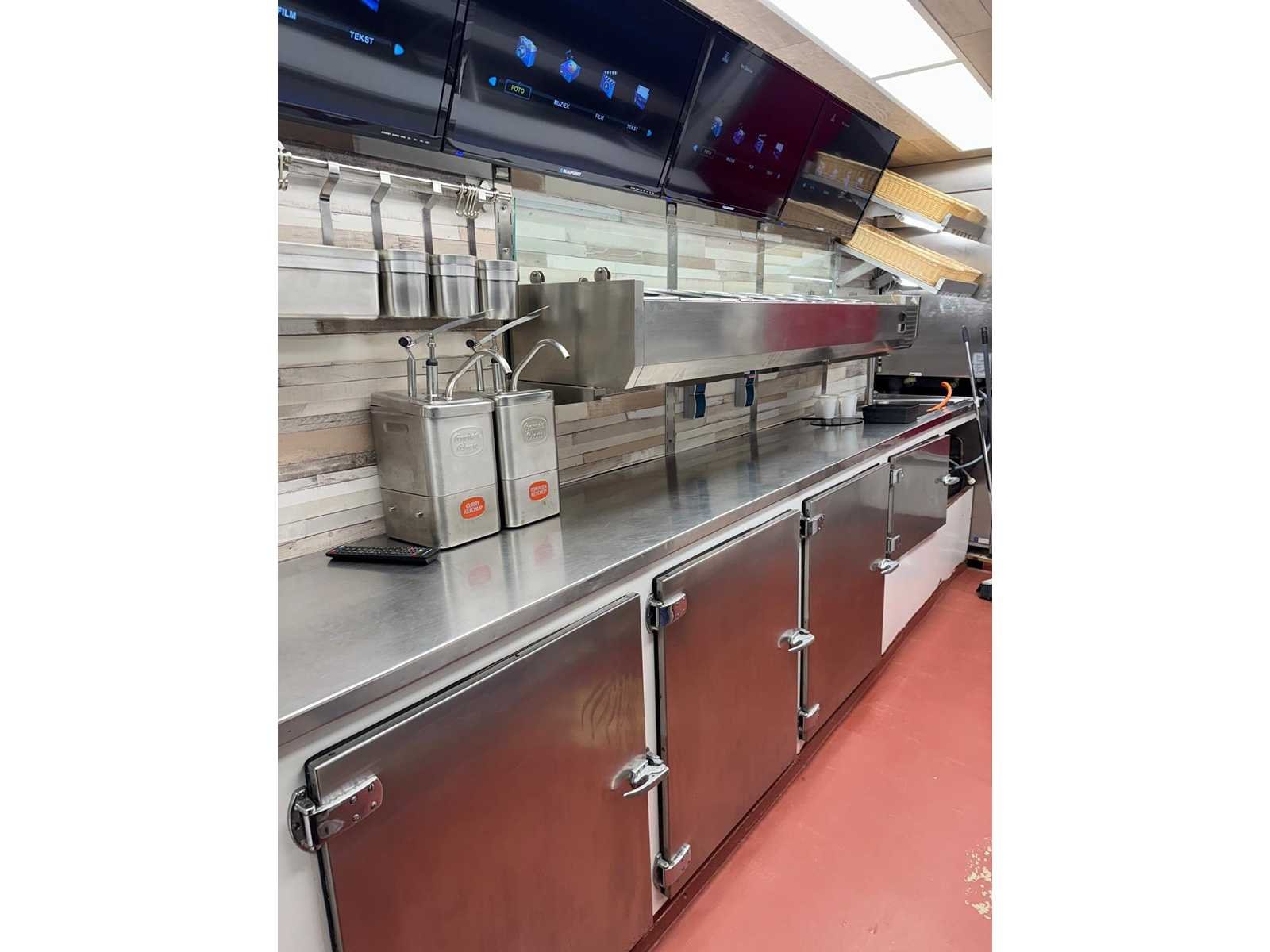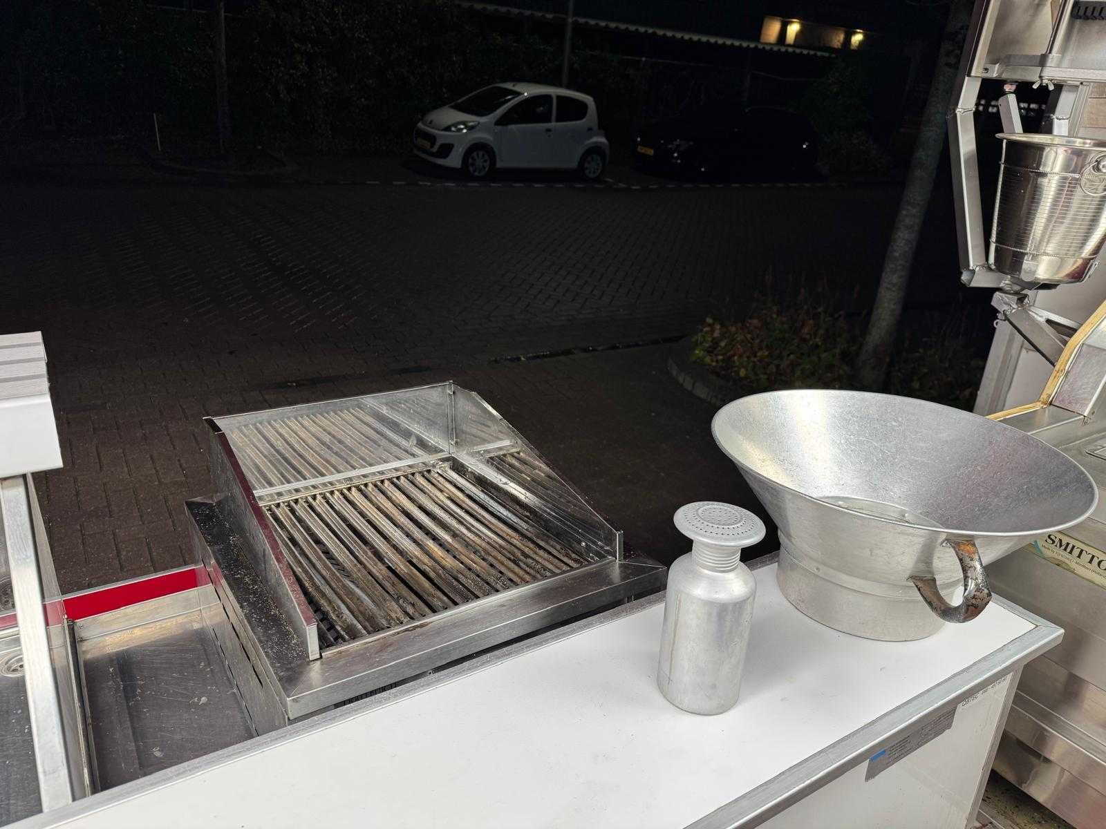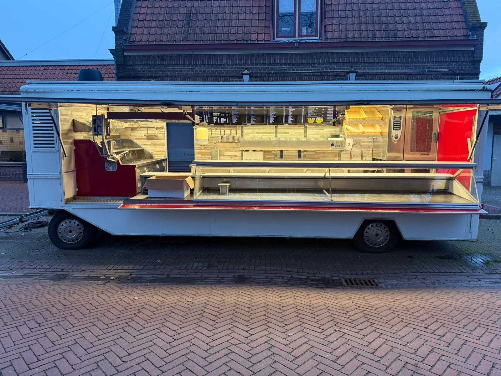Complete verkoopwagen met alle opties voor de horeca alles aanwezig frituur Rationale grill oven Gas koeling vitrine patatsnijder 220v led schermen led verlichting warm koud water zie foto's Omdat dit kavel niet in Spijkenisse staat moet u ons een mail sturen dan krijgt u van ons het adres. Vermeld wel het veilingnummer en kavelnummer zodat het voor ons makkelijker zoeken is. Merk: De Vries Model: Aanhangwagen 7 meter Type: Patatwagen Frietwagen Grillwagen Rationale Bouwjaar: 2000 Chassisnummer: 4477 Stuurwiel: links Carrosserie: Aanhangwagen Onderhoudshistorie: Ja gedeeltelijk startinformatie : rijdt
