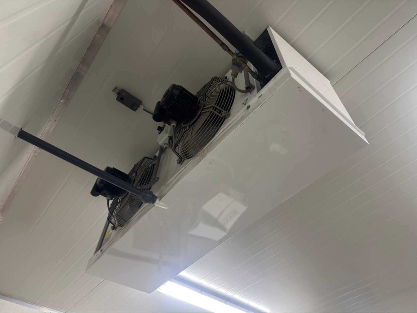 Cel hoogte binnen is 3380 mm; Deur is 2050 mm breed en 2850 mm hoog; panelen zijn 100 mm dik; met 1 verdamper in de koelcel; met 1 buiten unit; 4 TL lichtbakken; wordt gedemonteerd en transport klaar gemaakt door verkoper; Koelcompressor: true Verdamper: true