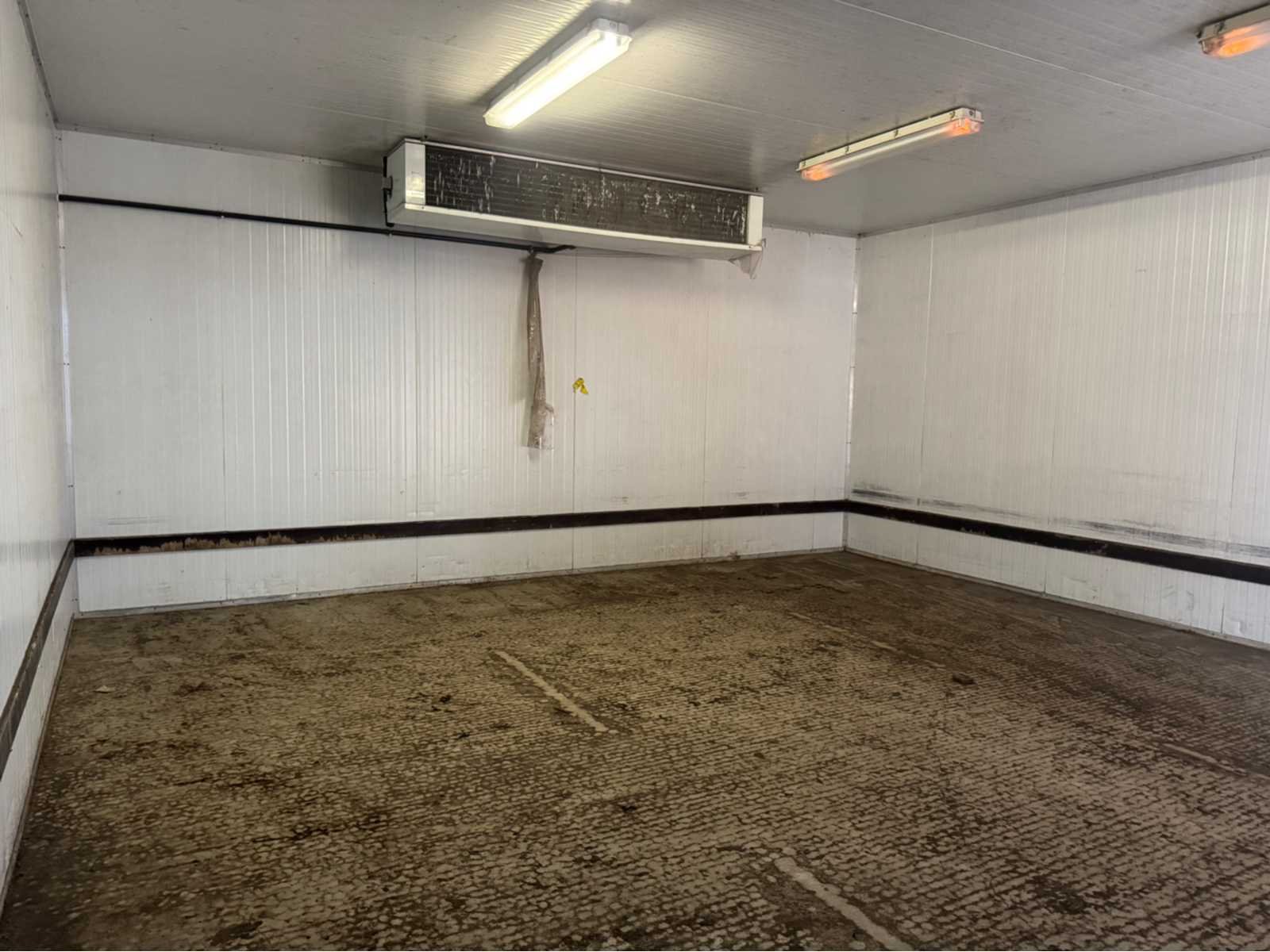 Deur van 2050 mm breed en 2450 mm hoog; panelen zijn ca. 120 mm dik; binnen kant cel voorzien van houten stoot randen; met bedieningspaneel; 1 verdamper in de koelcel en 4 TL lichtbakken; wordt gedemonteerd en transport klaar gemaakt door verkoper; kijkdag en afhalen op afspraak; Afmeting l: 6800mm Afmeting b: 6000mm Afmeting h: 3000mm Koelcompressor: true Verdamper: true