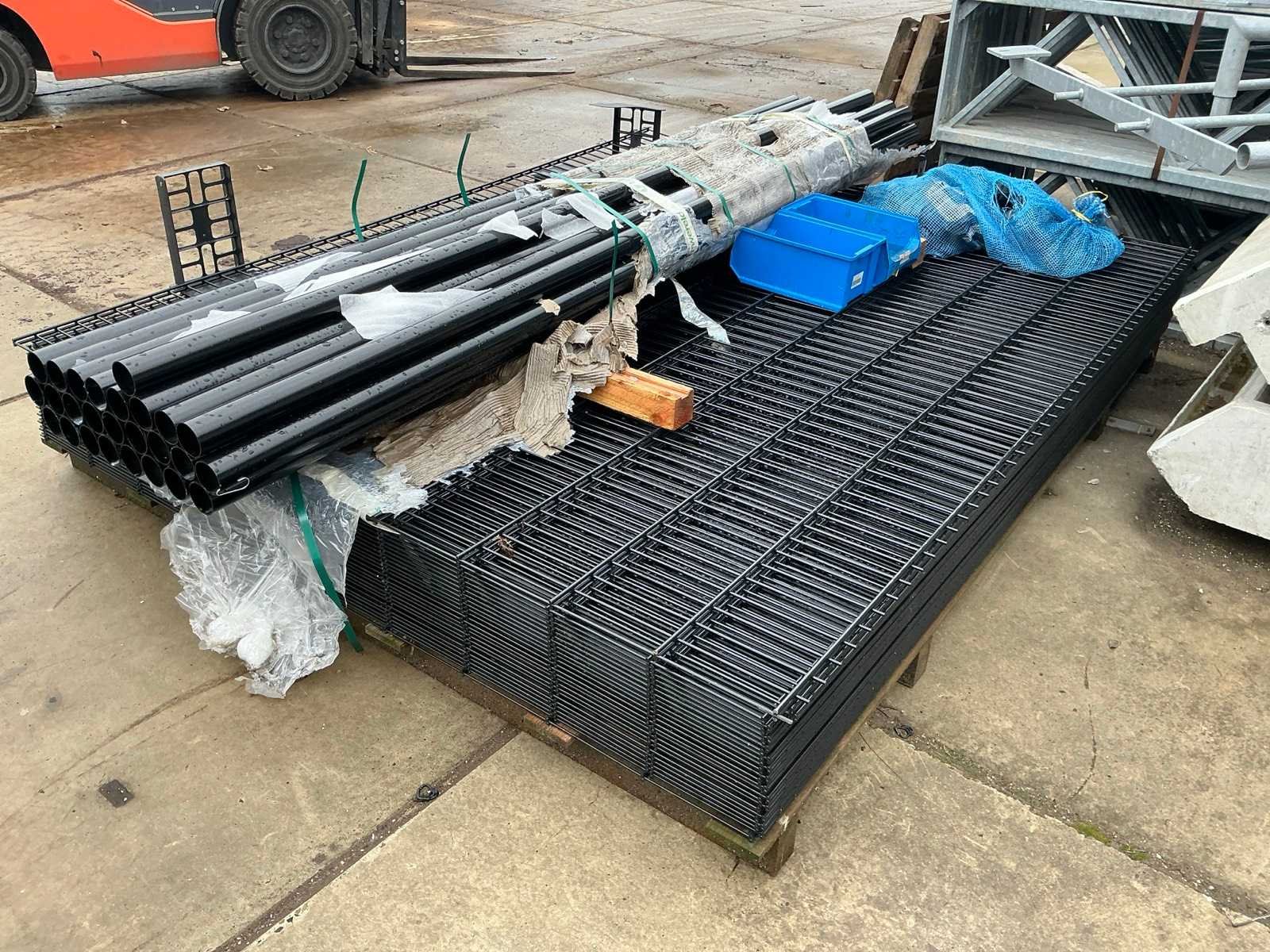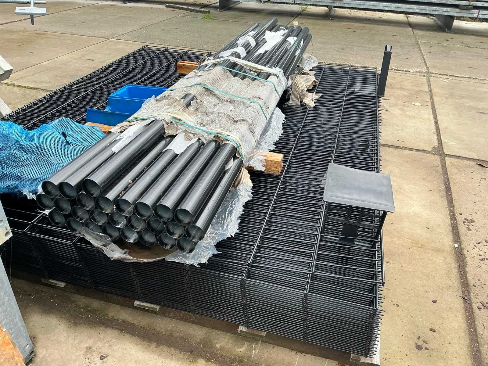 Hekdelen 2500 mm breed en 2000 mm hoog; totaal 28 hekdelen; 26 palen; met montage materialen;