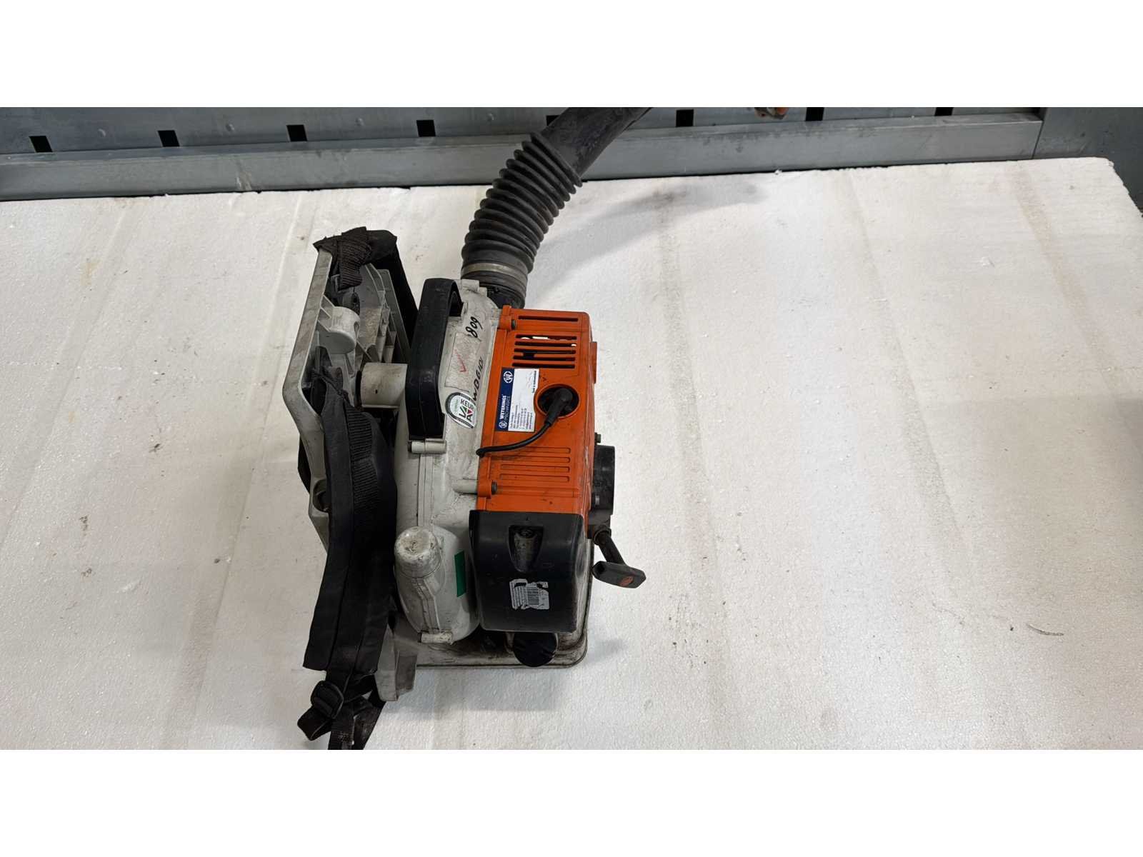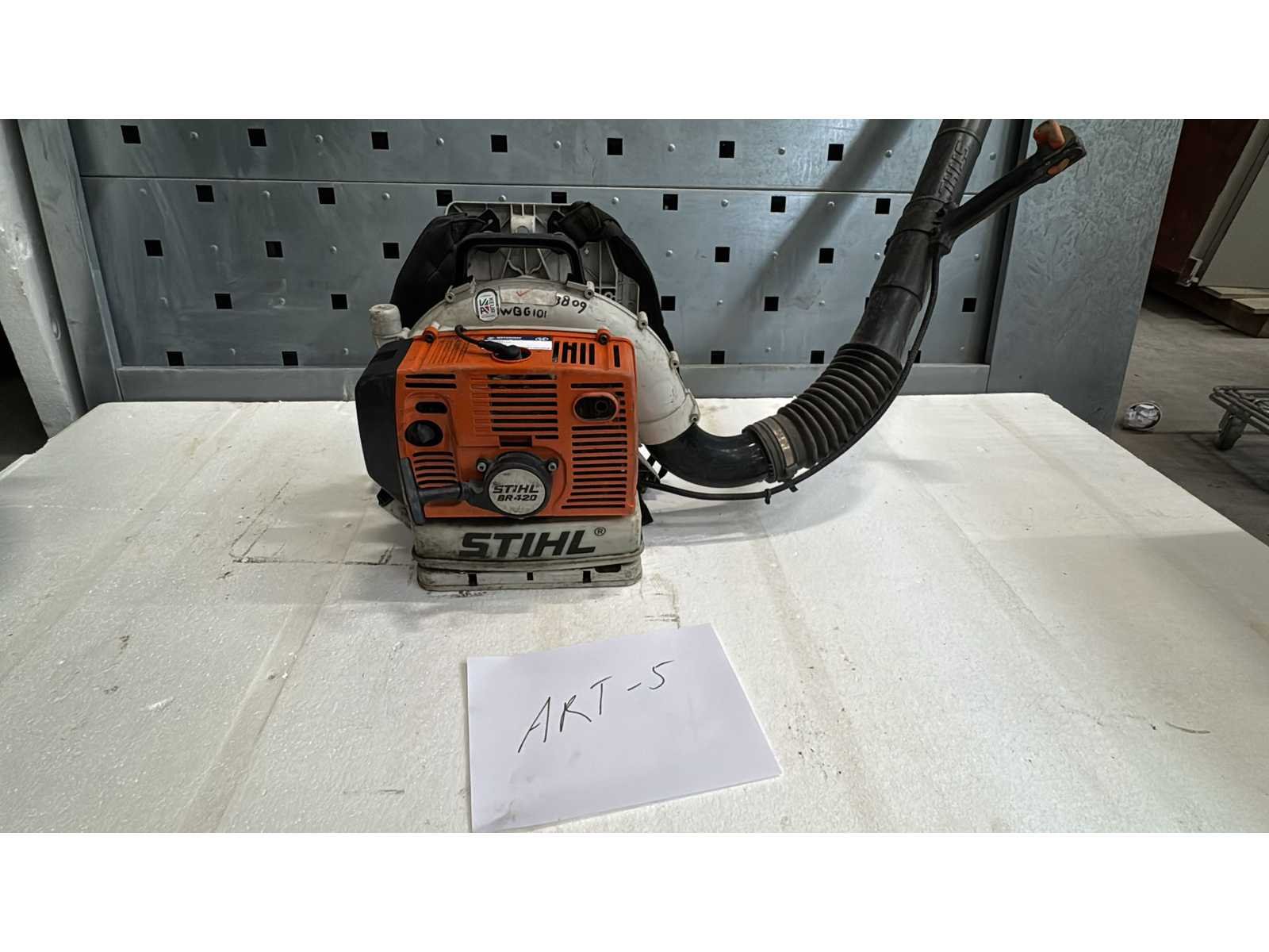 STIHL BR 420 C Rugblad Bladblazer; Benzine-aangedreven rugbladblazer; type BR 420 C (CE-gemarkeerd, 2002); Voorzien van draagharnas en robuuste kunststof behuizing; Serienummerpla(a)t aanwezig; Gebruikte staat met normale slijtage; geschikt voor professioneel inzetbaar terrein- en bouwplaatsgebruik; Merk: Stihl Type: BR 420 C Brandstofmotor aangedreven: true Brandstof: Benzine