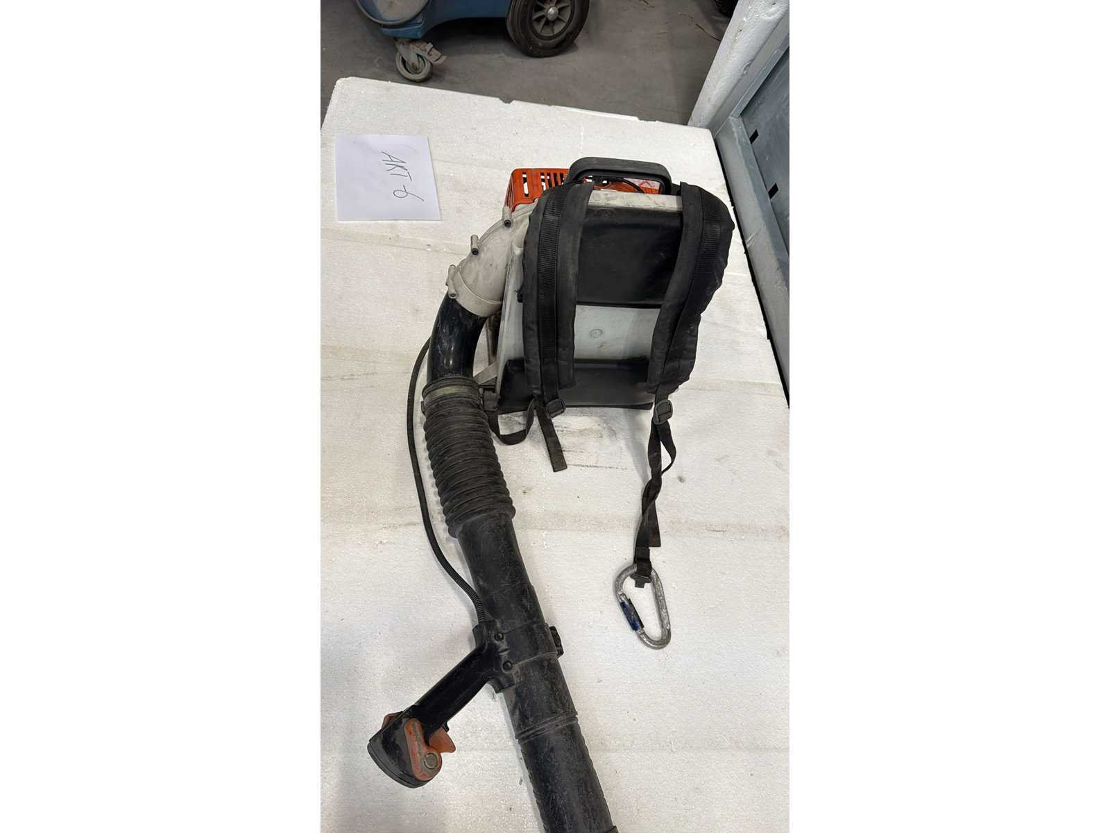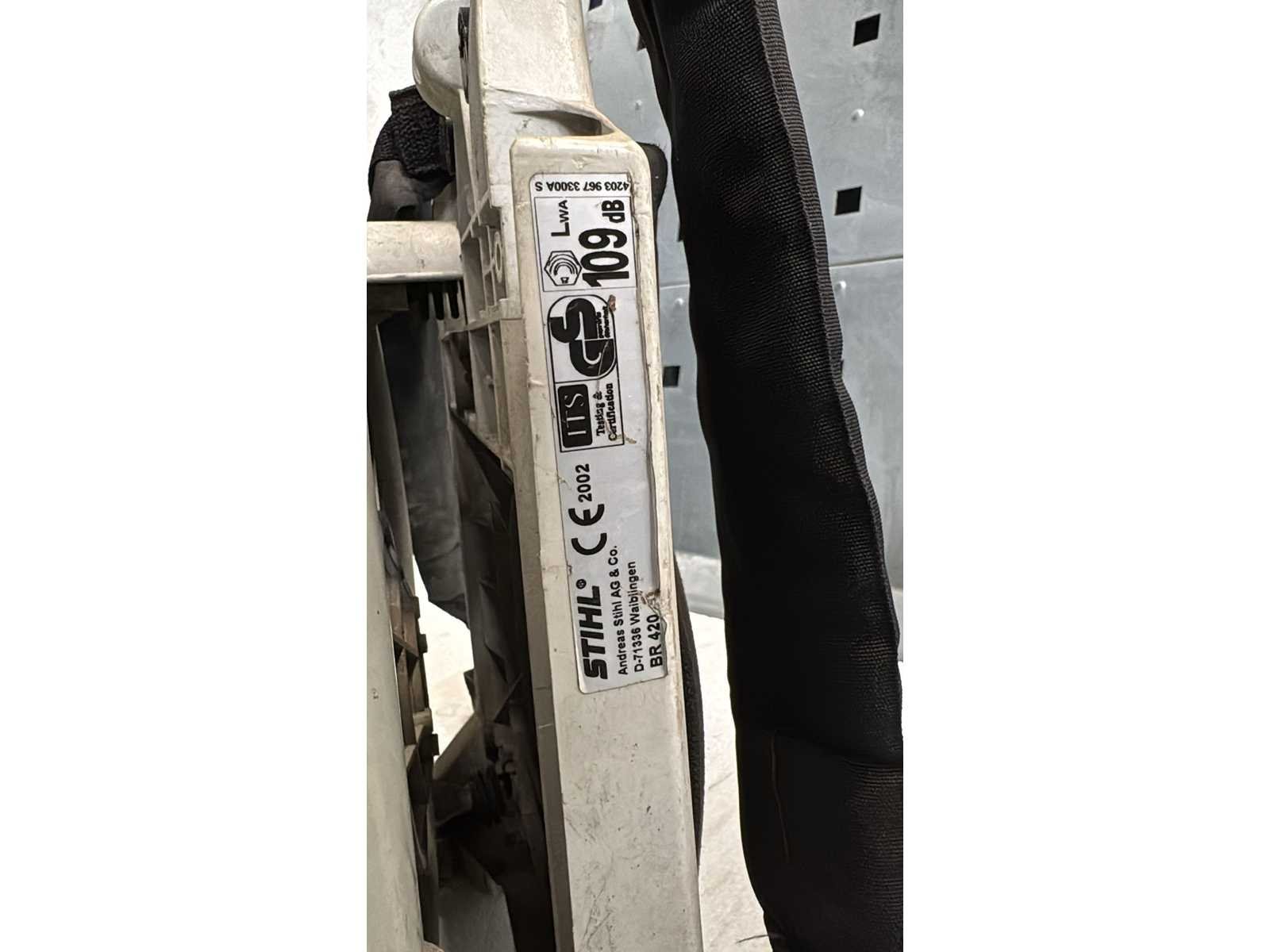 STIHL BR 420 C Rugbladblazer; Benzine-aangedreven bladblazer (rugmodel) met draagharnas en stevige kunststof behuizing; Bouwjaar ca. 2002, CE-gemarkeerd; Gebruikte werkstaat met zichtbare slijtage en lakschade,; zuig-/blaaskanaal intact; typeplaat aanwezig; Geschikt voor professionele inzet op terrein en bouwplaats; Merk: Stihl Type: BR 420 C Brandstofmotor aangedreven: true Brandstof: Benzine