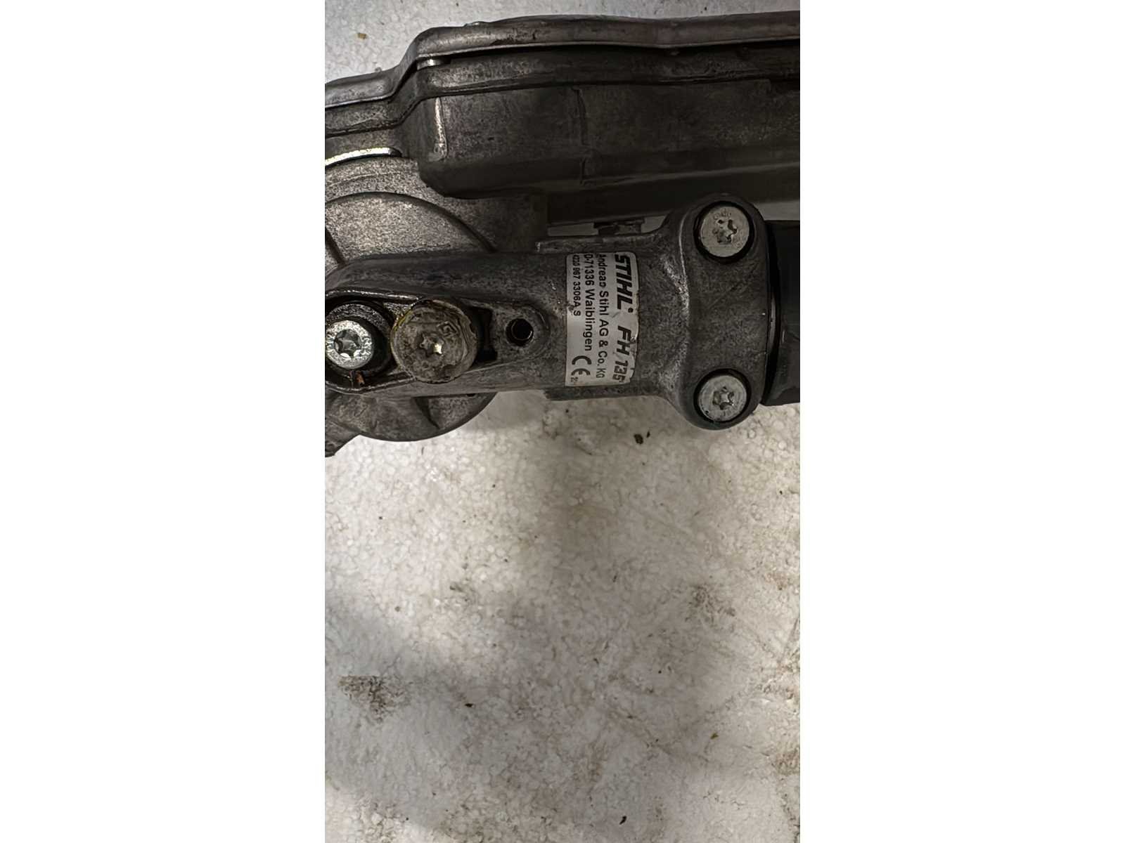 / Bovenstuk (op steel); Professioneel heggenschaar-opzetstuk (bovenstuk) voor STIHL stoksystemen; model FH 135. Voorzien van aluminium draagsteel; verstelbare heggenschaar­kop met dubbelzijdige messen en bedieningshandgreep; Gebruikte staat met normale slijtage en lichte vervuiling; CE markering en typeplaat aanwezig; Geschikt voor professioneel heg- en groenonderhoud; Merk: Stihl Type: FH 135