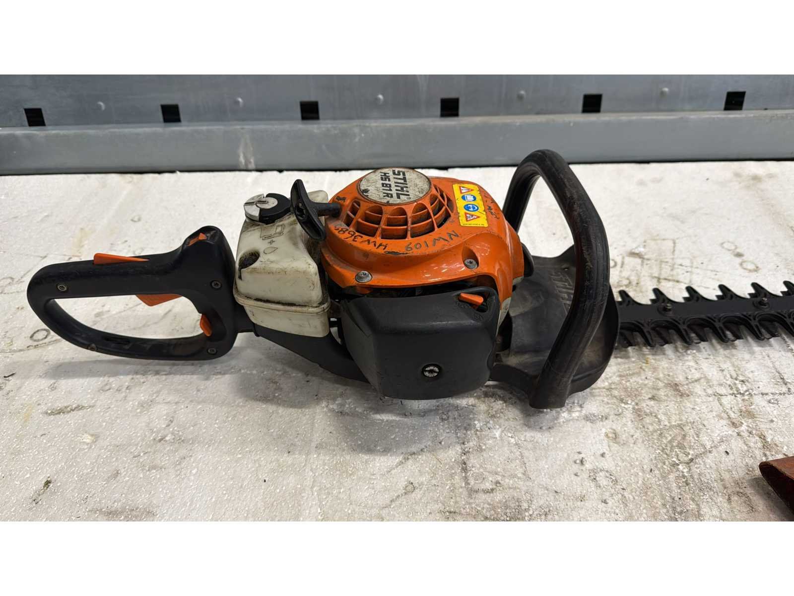 (Benzine); Benzine-aangedreven professionele heggenschaar met dubbelzijdig snijblad; Robuust ontwerp met handstart; blade guard en CE-markering; Gebruikte staat met duidelijke slijtage en vervuiling; functionele werkplaats/terrein-uitvoering; Geschikt voor intensief groenonderhoud; Merk: Stihl Type: HS 81 R Brandstofmotor aangedreven: true Brandstof: Benzine