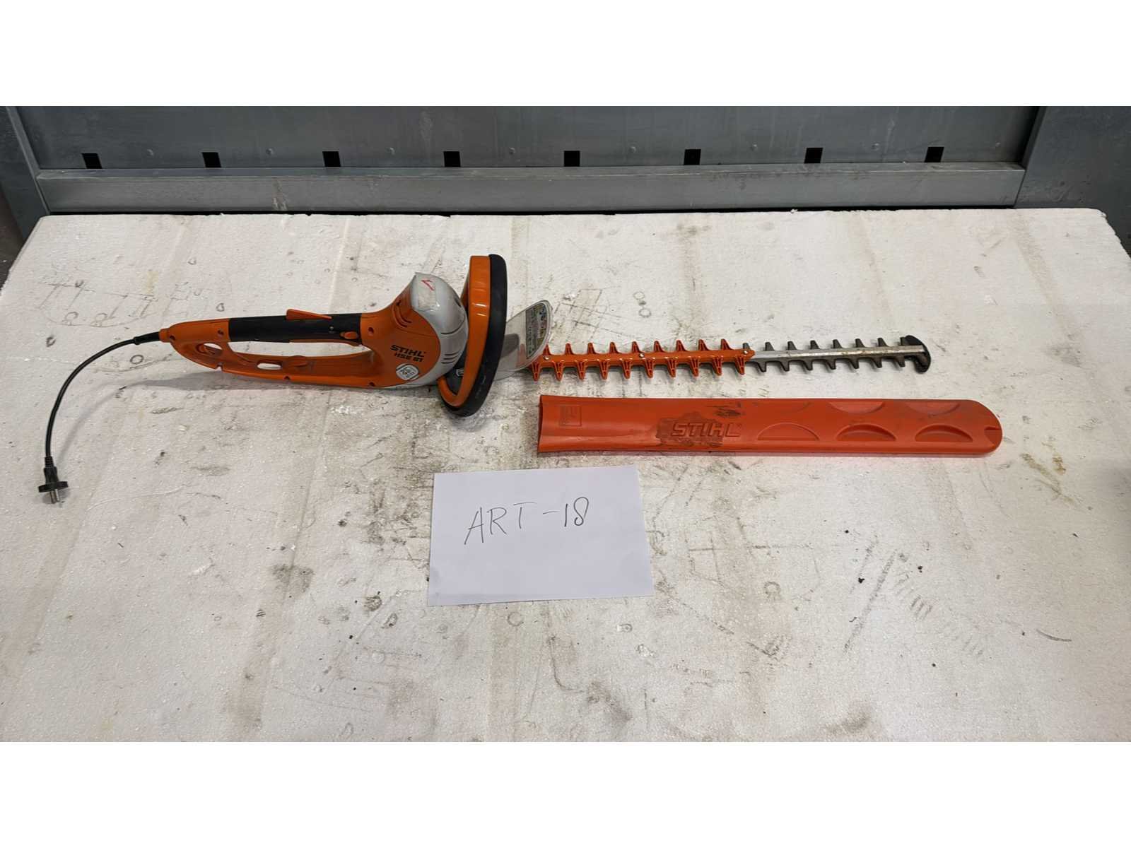 STIHL HSE 81 Elektrische Heggenschaar; Elektrische heggenschaar; model HSE 81; Voorzien van dubbelzijdig snijblad en handgreep; 230 V uitvoering, CE-gemarkeerd; Gebruikte staat met normale gebruiks- en slijtagesporen op behuizing en frame; Geschikt voor professioneel groenonderhoud en terreinbeheer; Merk: Stihl Type: HSE 18 Elektrisch aangedreven: true