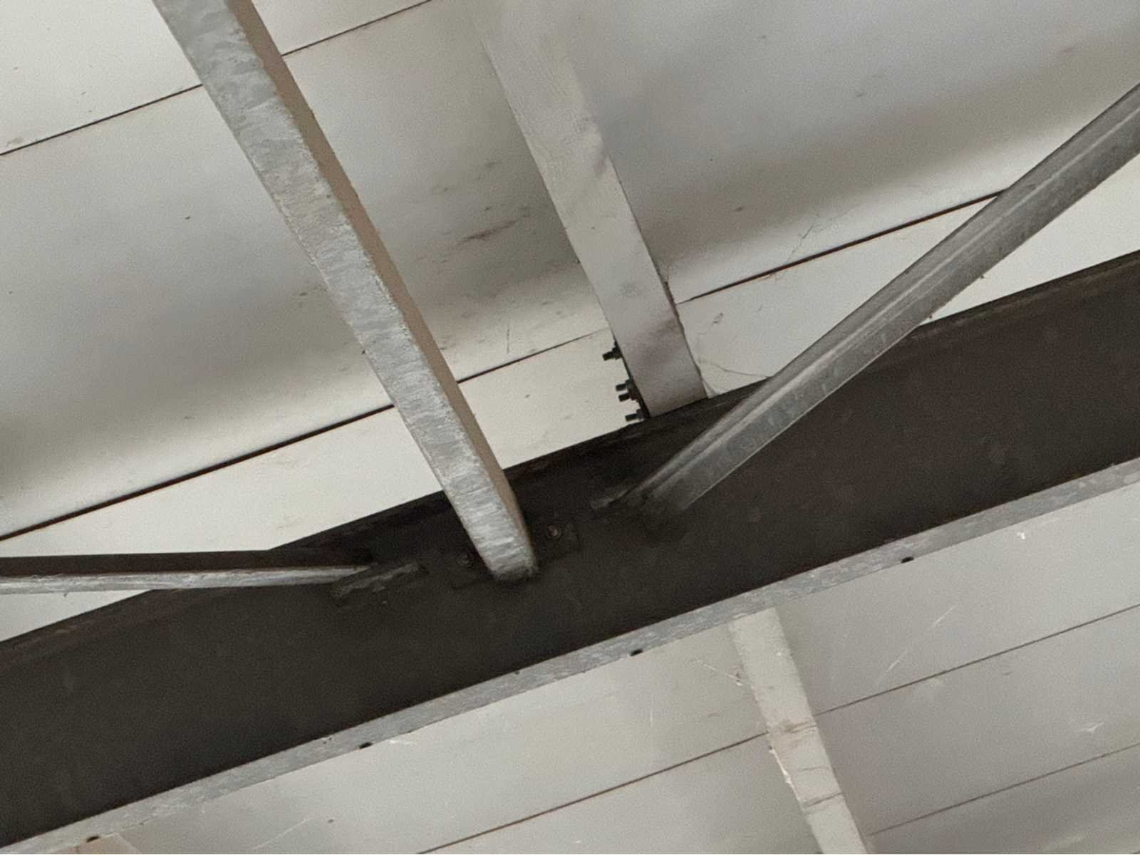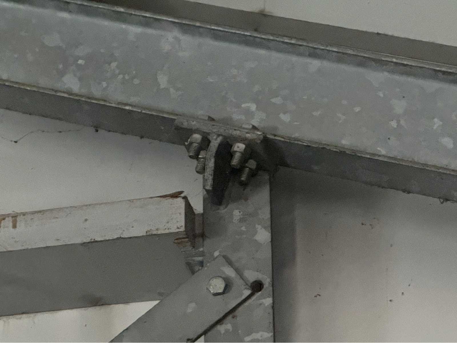 Volblad verzinkte staalconstructie; vrije overspanning van 13000 mm; 7 vakken van 4500 mm; totale lengte constructie is 31500 mm; poothoogte 4500 mm; nokhoogte 6850 mm; staanders van IPE 220; spantbenen van IPE 220 mm; kopgevel constructie van IPE 120; dak en gevels zijn voorzien van kruisschoren en windverbanden; dak met houten gordingen; isolatie platen op de houten gordingen; zonder buiten dakbeplating; 1 overheaddeur van 4300 mm breed en 4250 mm hoog; met verenpakket en railsen; levering op afspraak; wordt door verkoper gedemonteerd en transport klaar gemaakt;