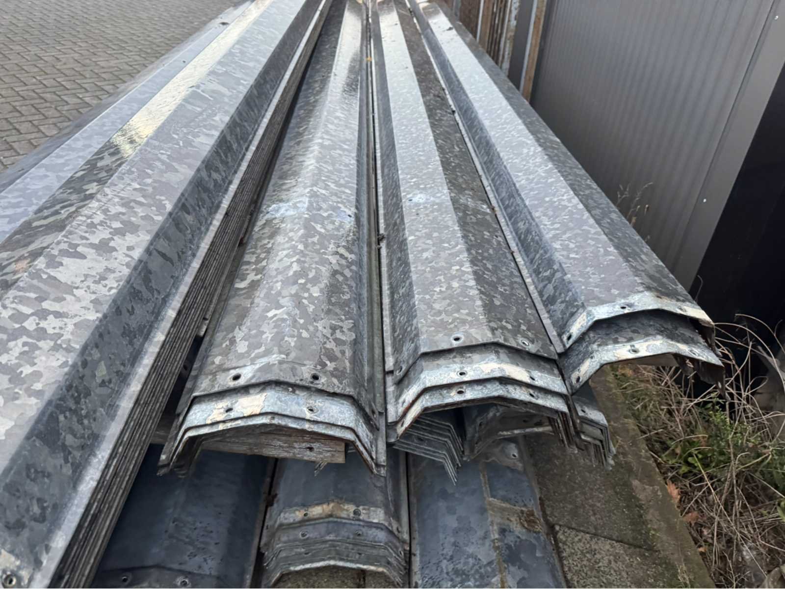 Goten zijn gegalvaniseerd; binnenzijde goot is zwart geteerd; goten verkeren in zeer goede staat; lengte is 6400 mm;