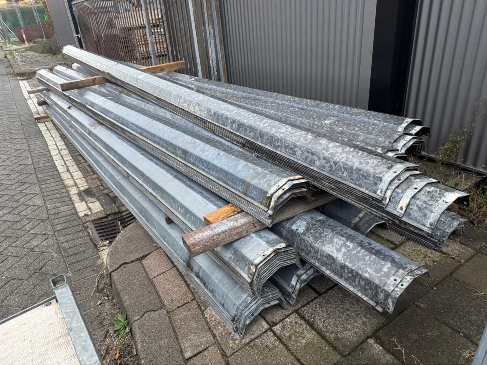 Goten zijn gegalvaniseerd; binnenzijde goot is zwart geteerd; goten verkeren in zeer goede staat; lengte is 6400 mm;