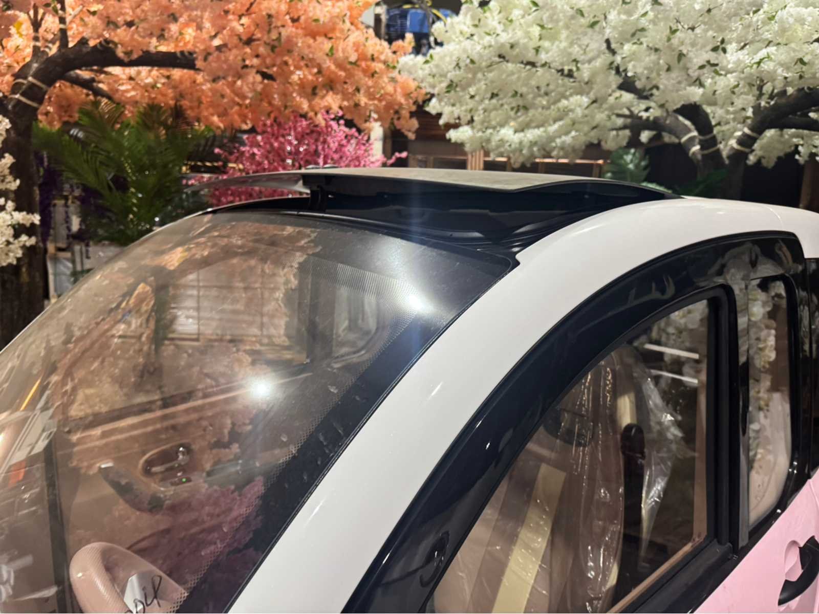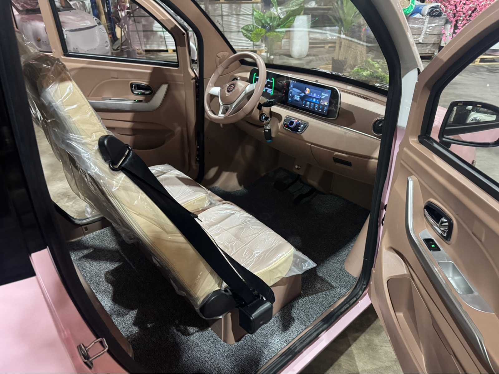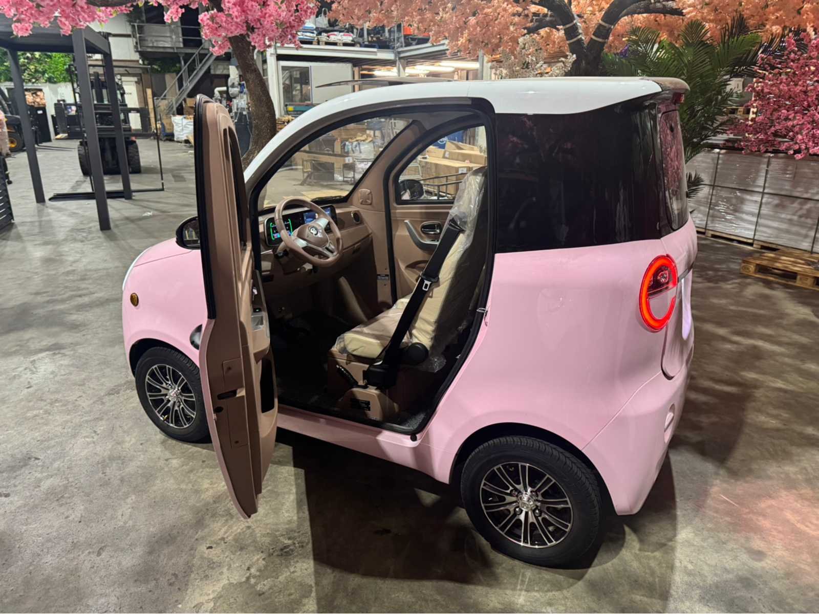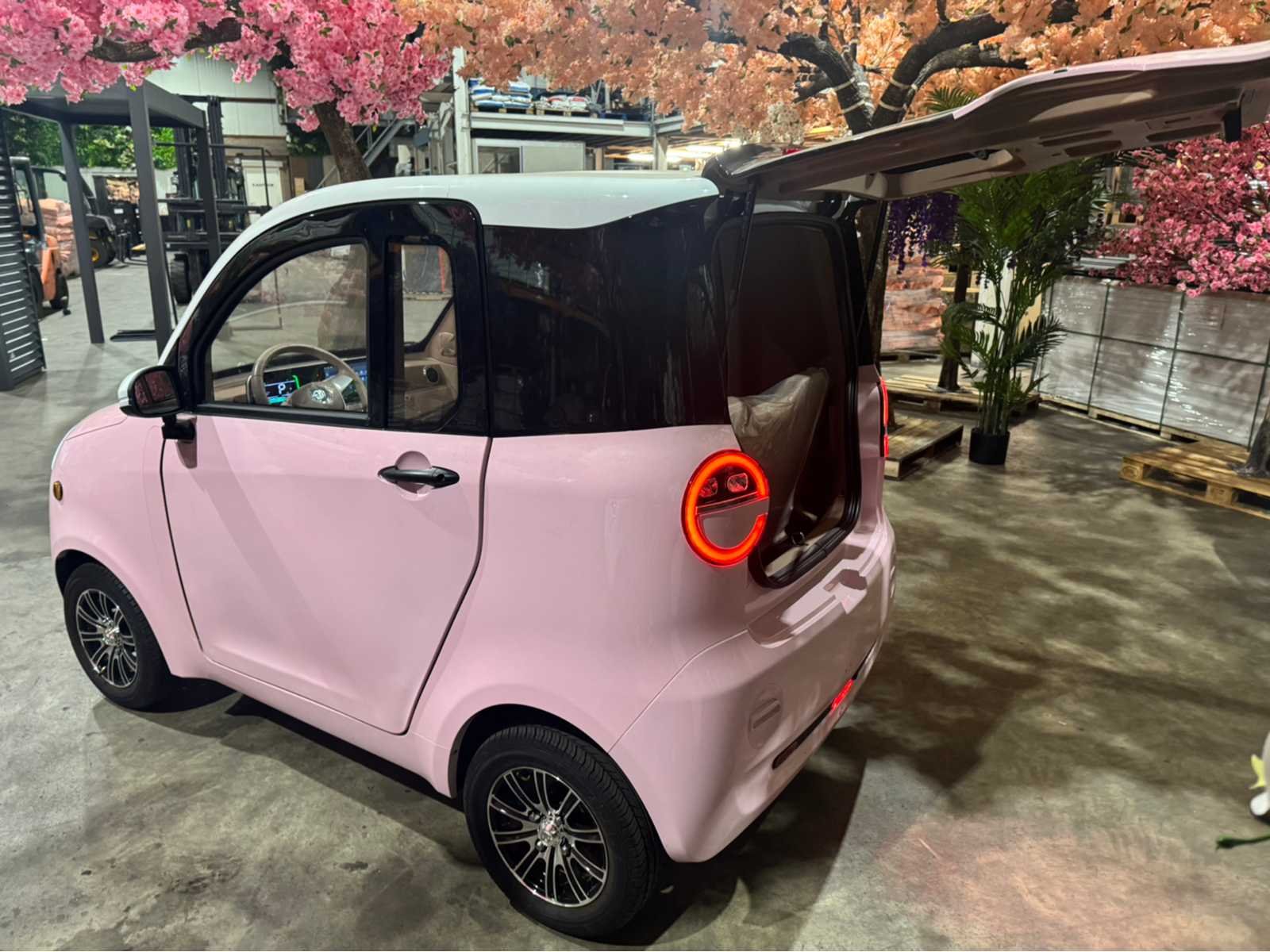 Brommobiel met veel opties; rijk uitgerust met infotainment systeem; navigatie; radio; bluetooth; achteruitrijcamera; full-screen; digitale snelheid aflezen; automaat; handrem; LED verlichting; elektrisch bedienbare ramen; sleutels; hoofdschakelaar; dakraam; een te openen raam in de achterklep; met oplaadkabel 230volt; wordt geleverd met achterbank; geschikt voor 2 personen; ná montage achterbank geschikt voor 4 personen; voertuig is nieuw; met fabrieks KM stand; met bijhorend kenteken en overschrijf papieren; dus bij ophalen moet deze overgeschreven worden; mag bestuurd worden vanaf brommer rijbewijs; 16+; ca 100-120km op een volle accu Merk: Dongwei Model: Dora - roze Type: Dora - roze Kenteken: FVS-79-J Datum eerste toelating: 2025-12-01 Brandstof: elektriciteit Kleur: Roze Bouwjaar: 2025