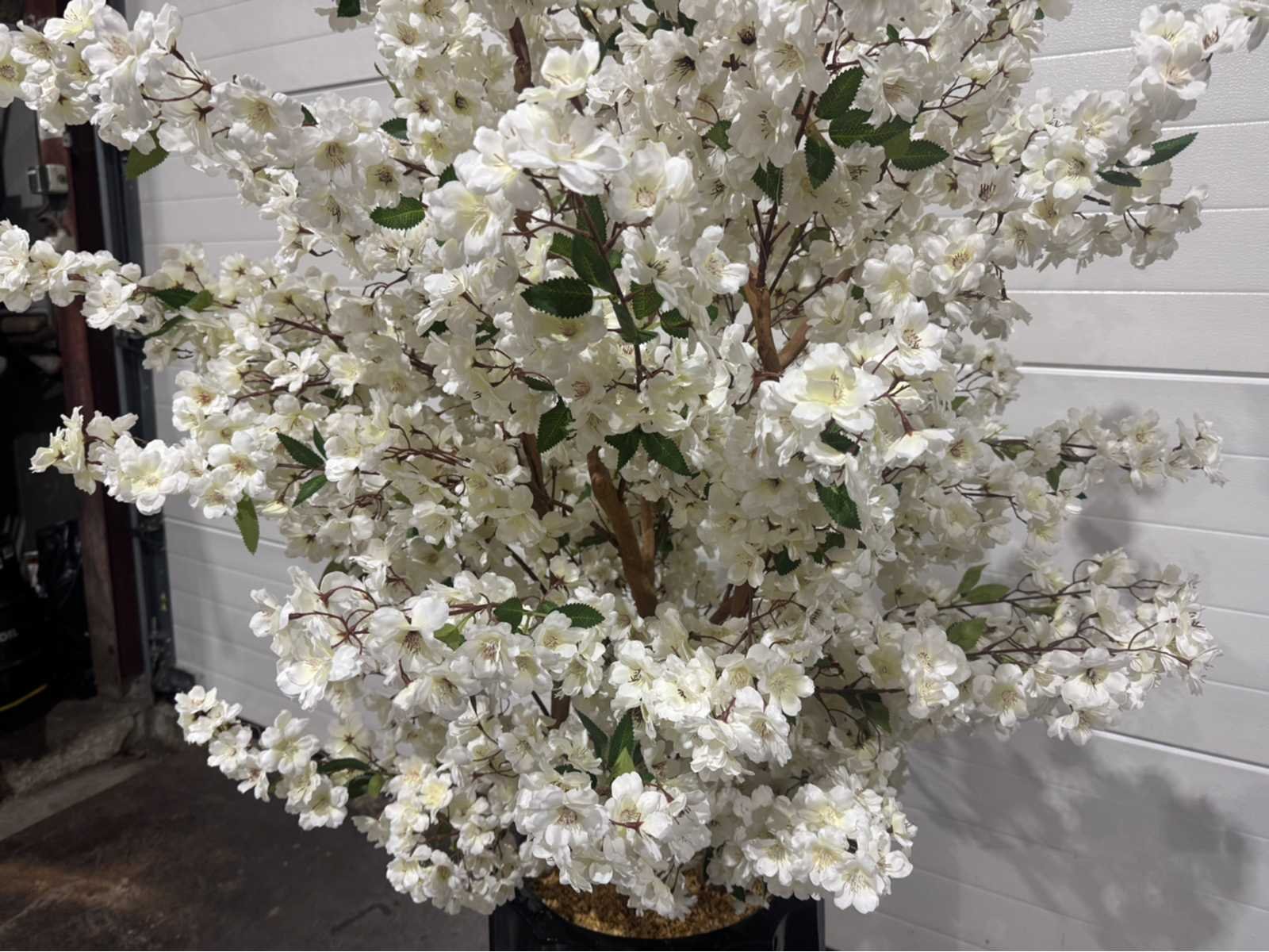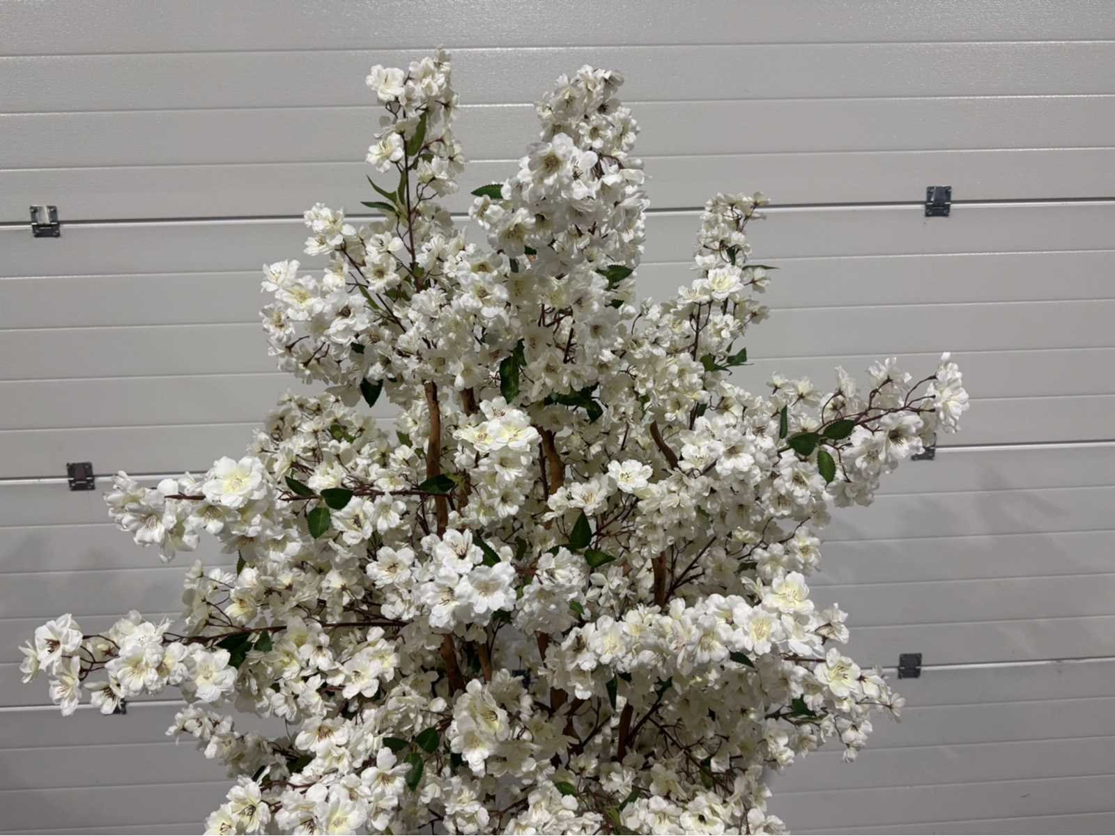 Ongebruikt; voorzien van pot, pot is dus inclusief; eenvoudig in en uit elkaar te zetten; inclusief pot is de hoogte ca 2000mm Type: Kersen bloesem Kleur: Wit Hoogte: 200cm