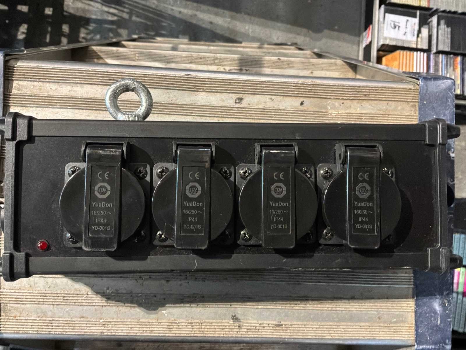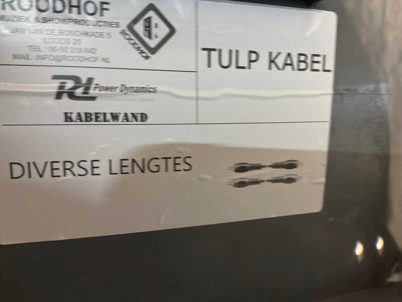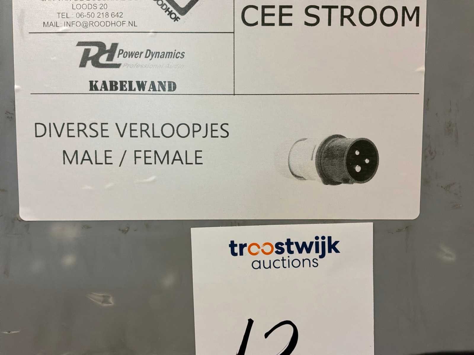 Verpakt in 8 kratten en 3x haspel. Waaronder: diverse verlopen CEE, Powercon verdeelblokken, Jack kabels, rca kabels, XLR kabels.