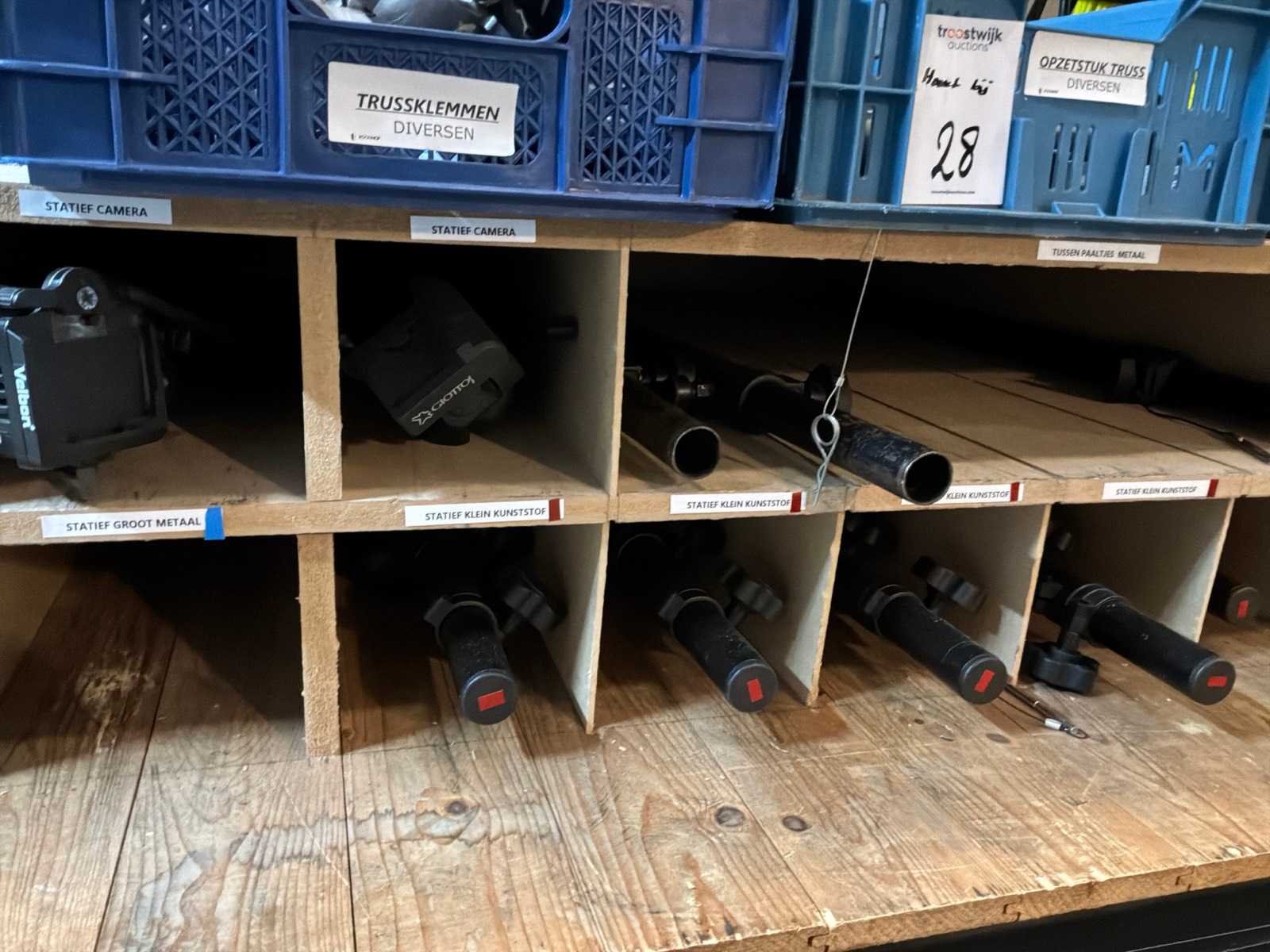 Diverse statieven, kabelbebeveiliging, trekveren, trussonderdelen.