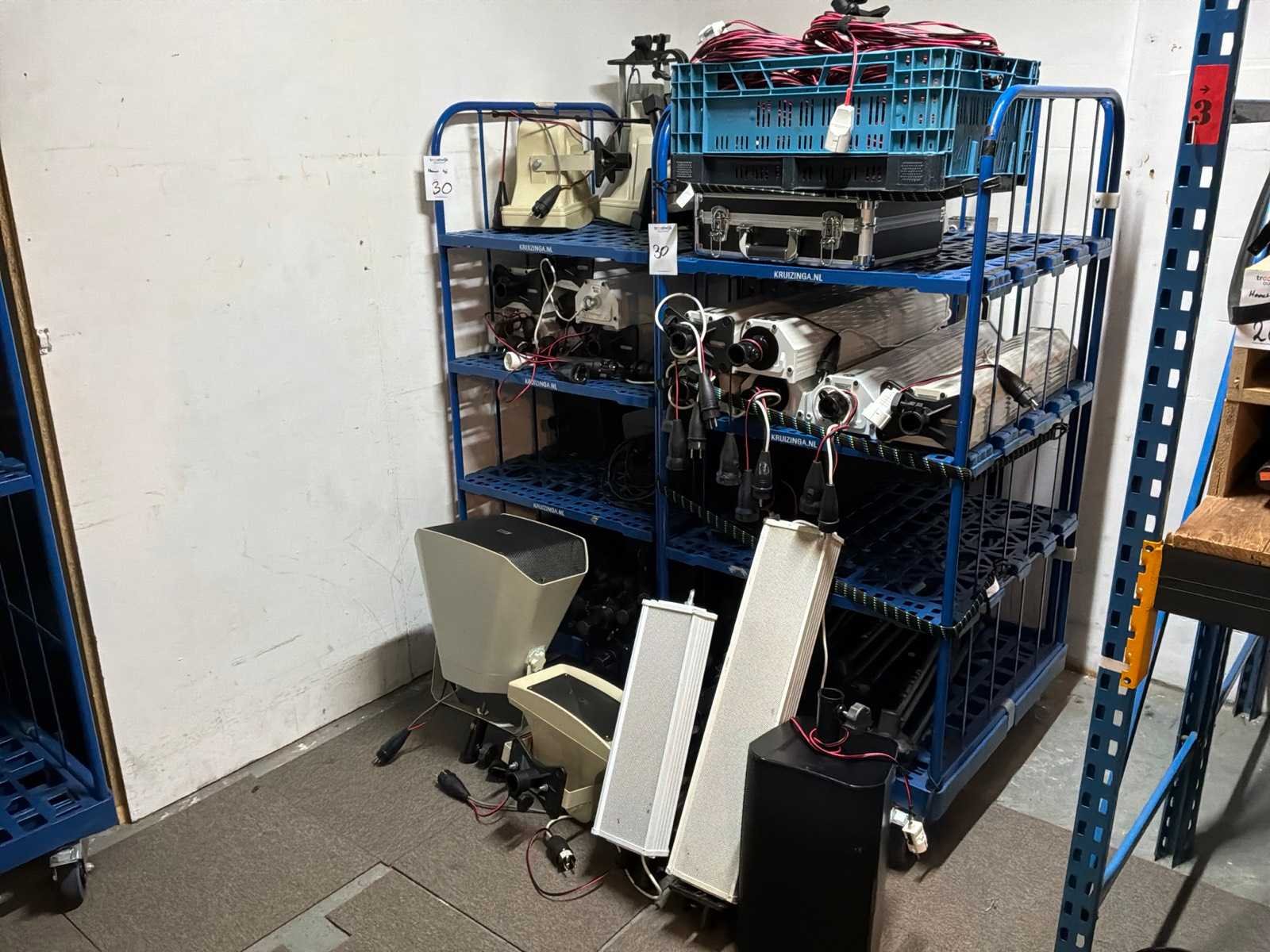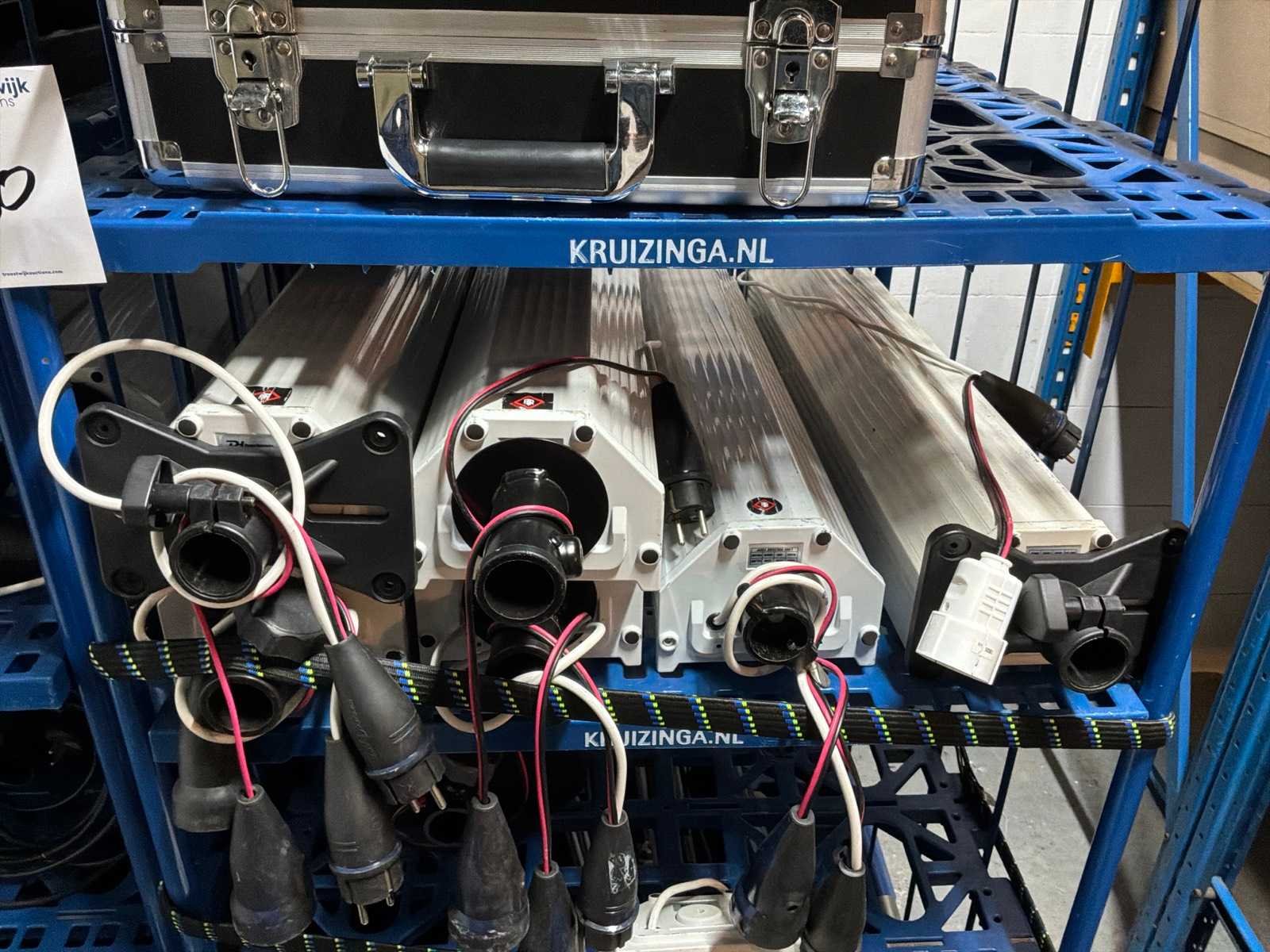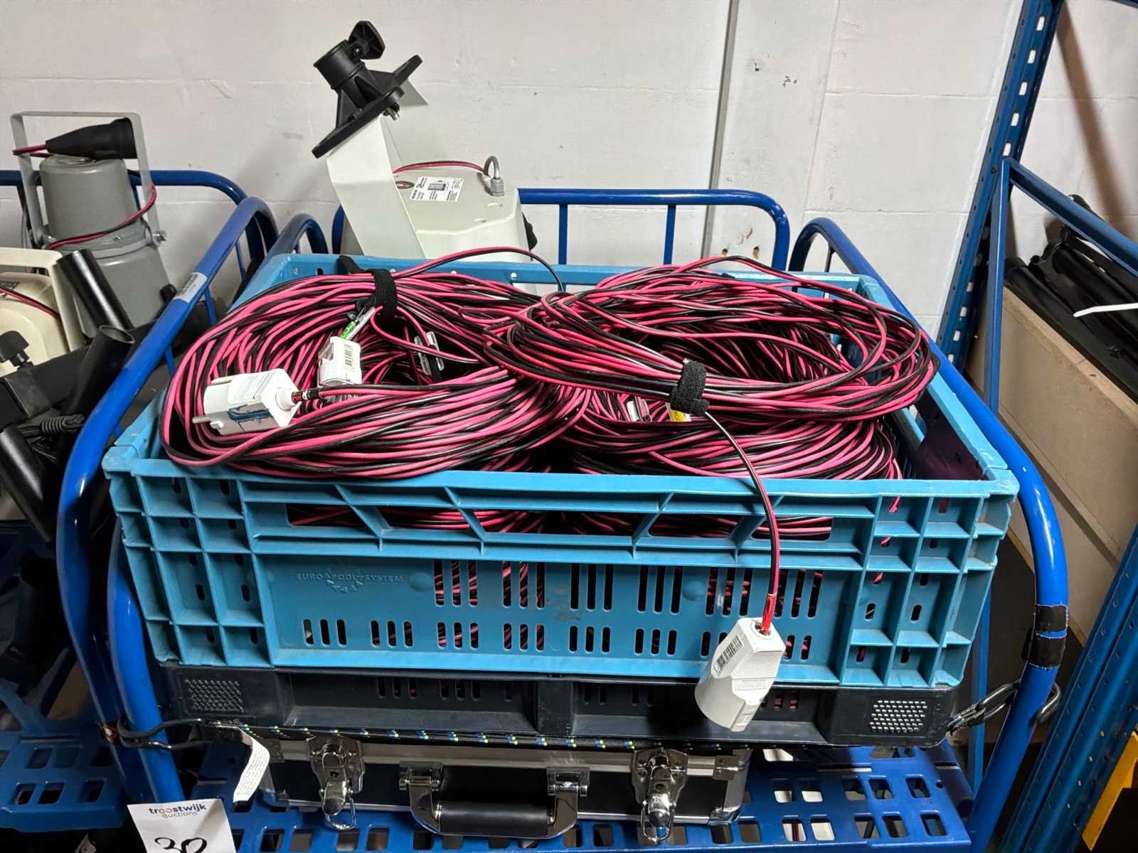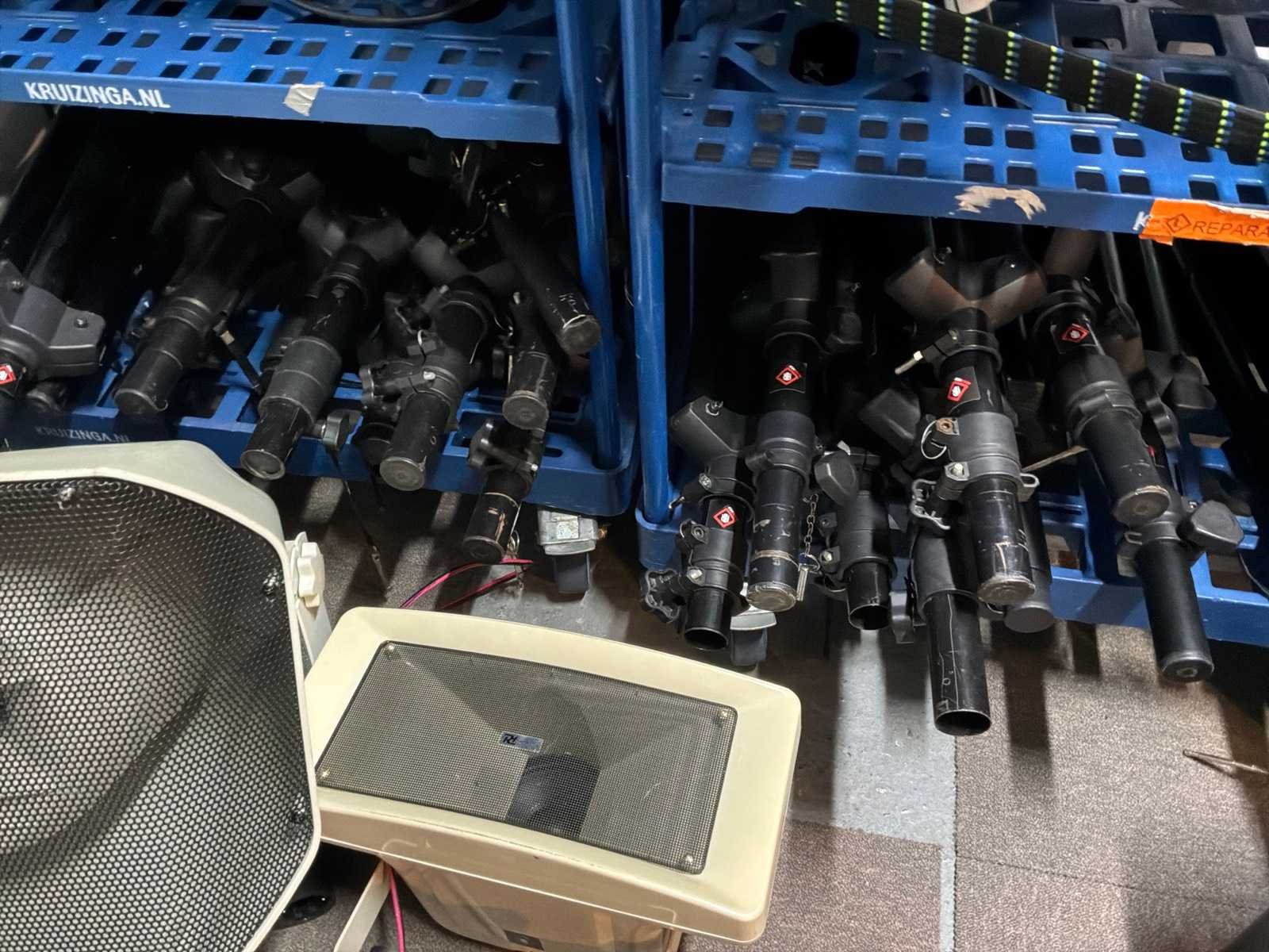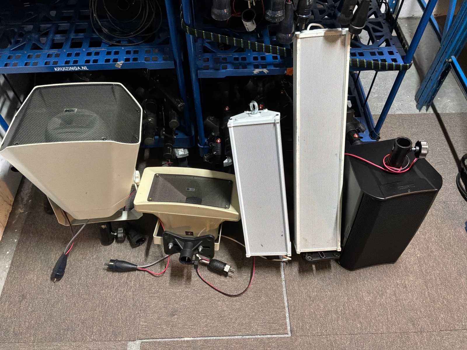4x QSC luidspreker. Inclusief rolcontainer en statieven Merk: PowerDynamics / QSC