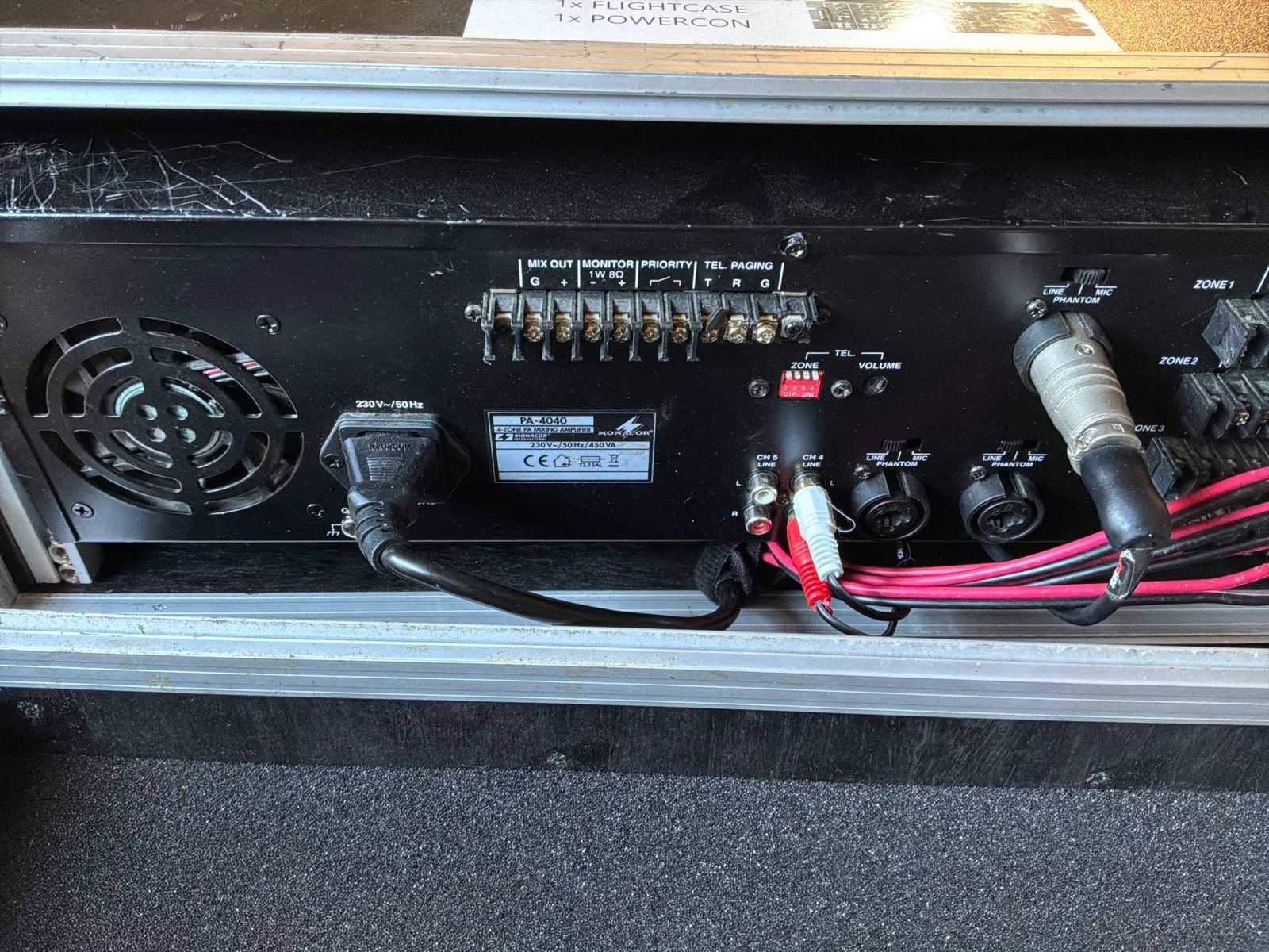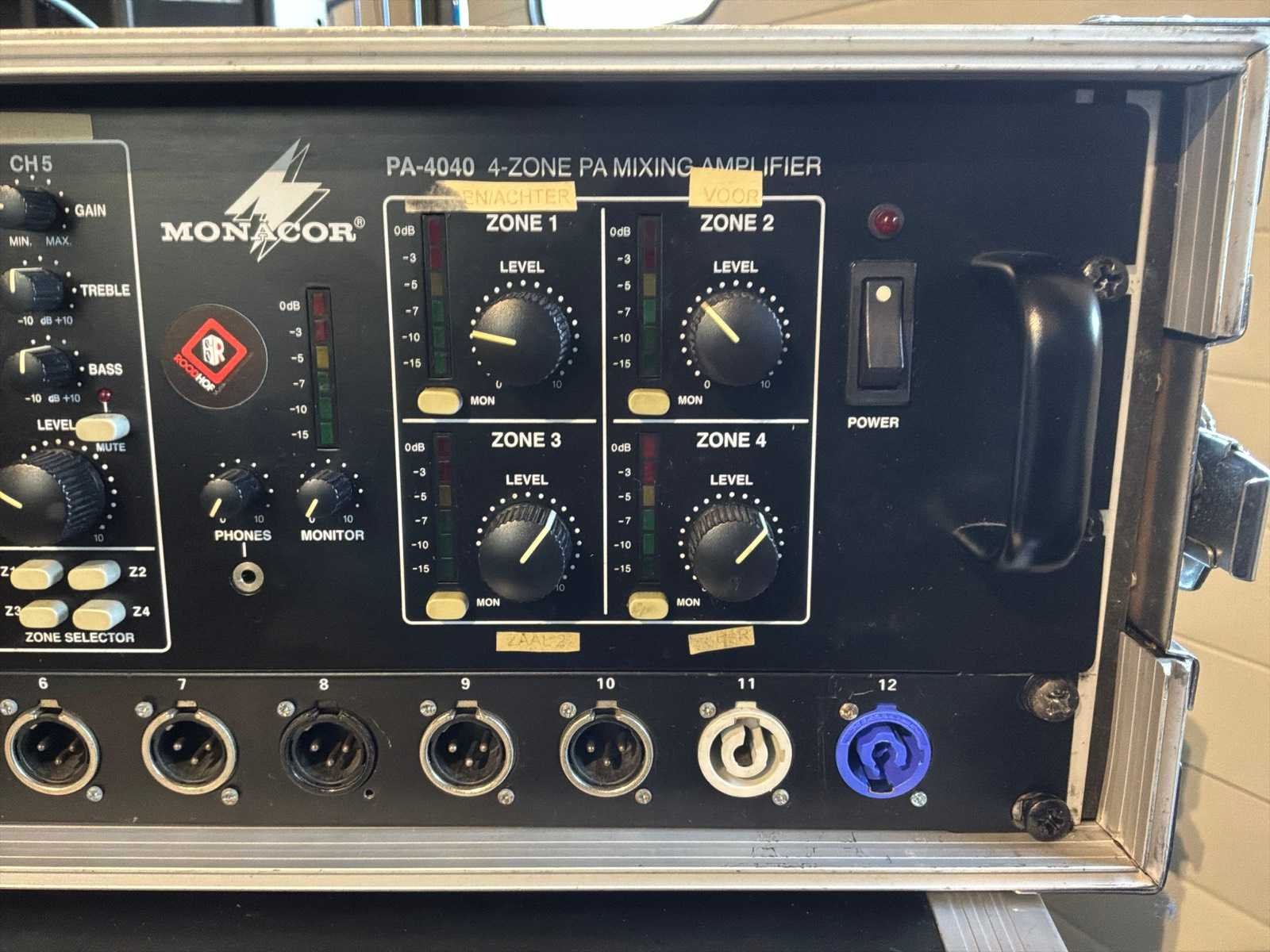 4 zone versterker, 5 kanalen, in flightcase gebouwd. Merk: Monacor Type: PA-4040 Eindversterker: true Mono: true Aansluiting: 230V