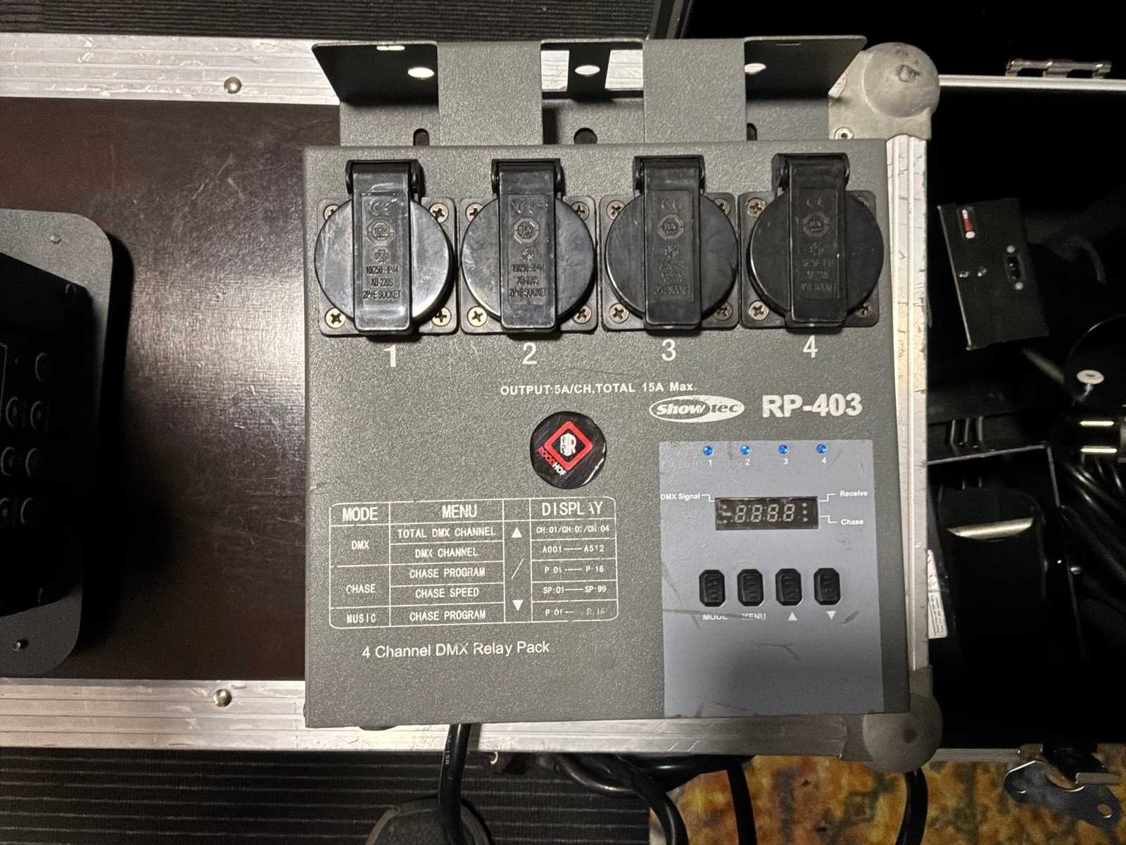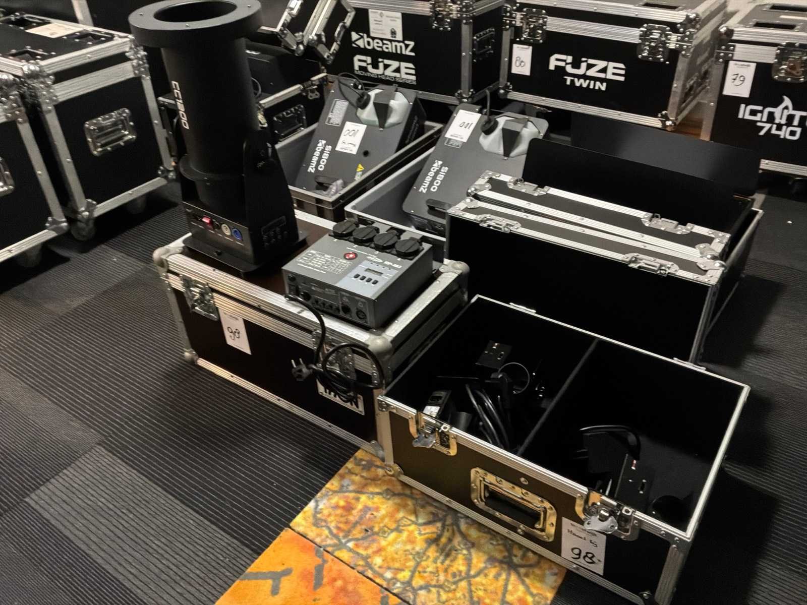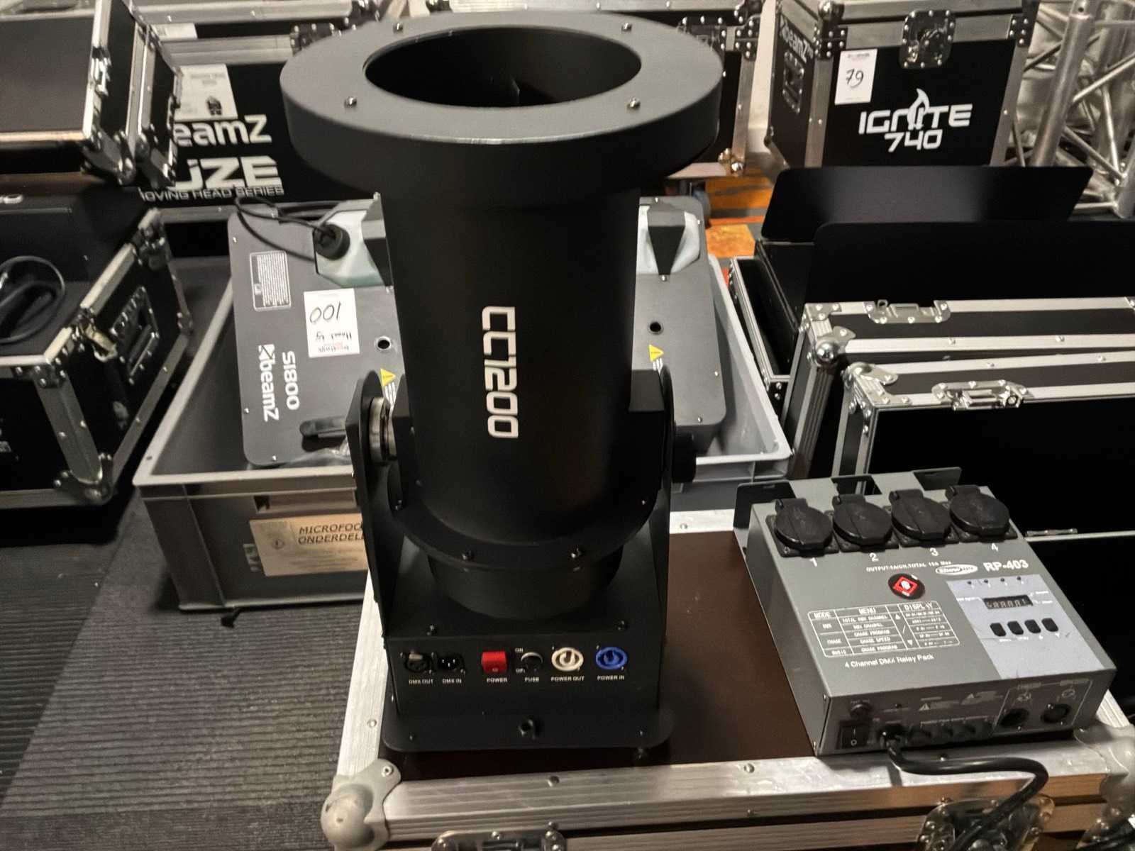 4x showtec FxShot , Showtec RP-403 dmx relaypack inbegrepen Merk: Beamz Type: CC1200 DMX: true Met flightcase: true