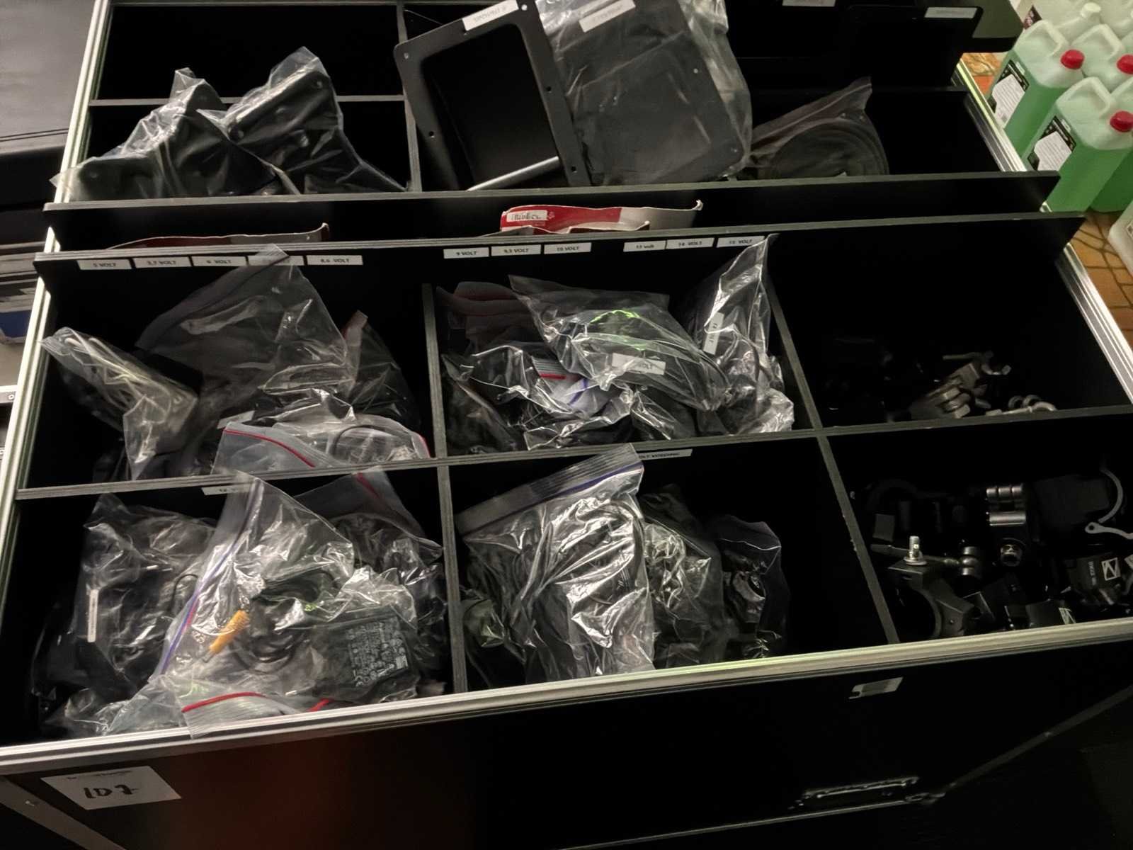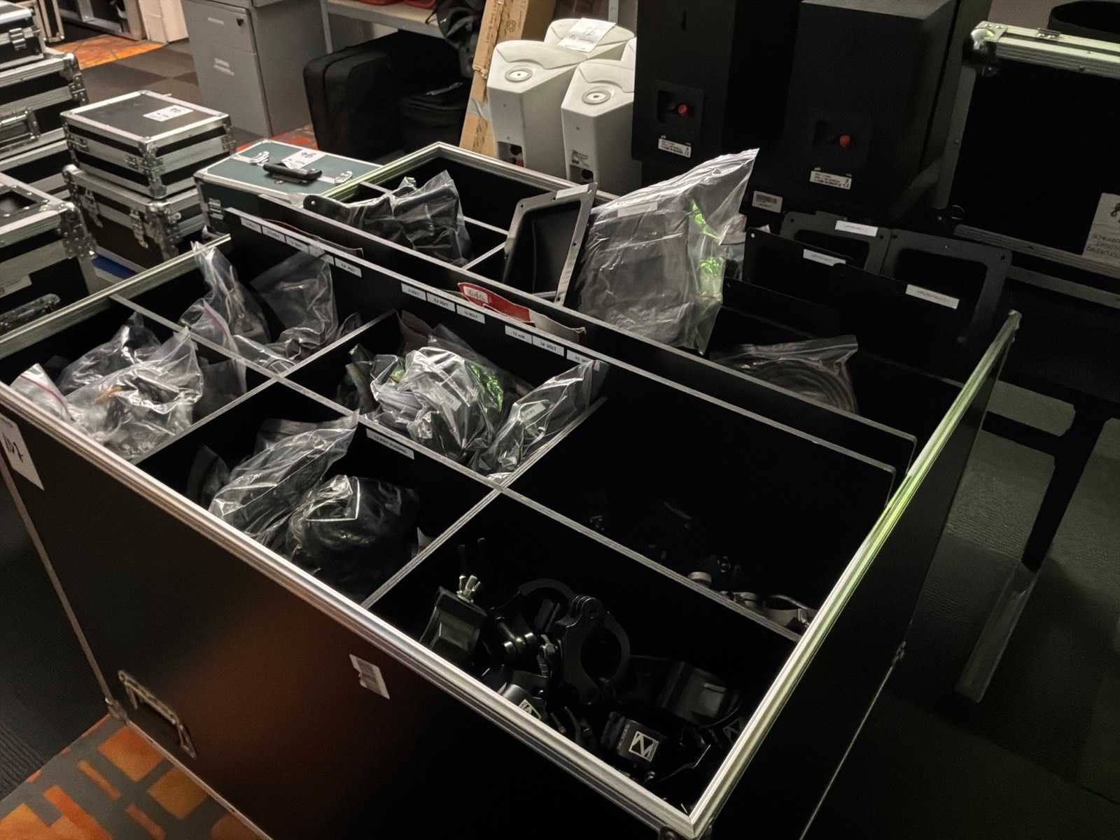Waaronder: flightcaseonderdelen, haken, voedingen, inclusief flightcase.