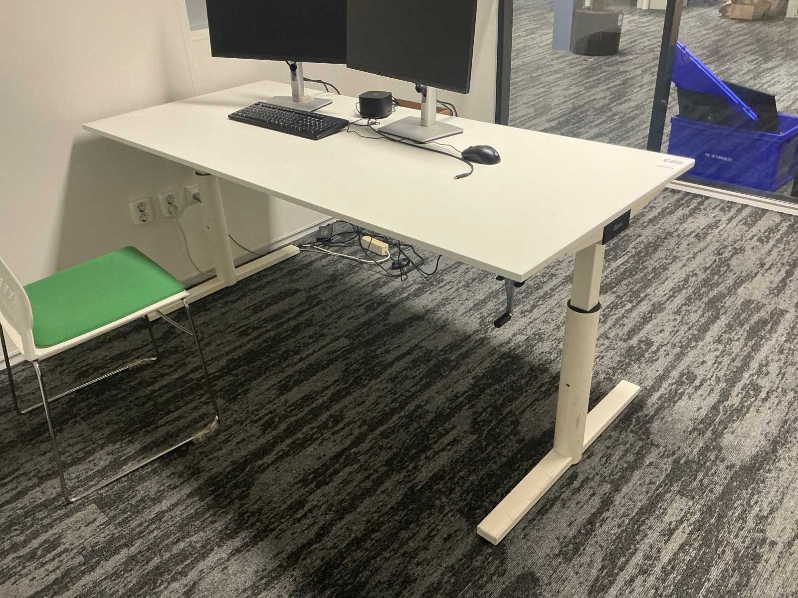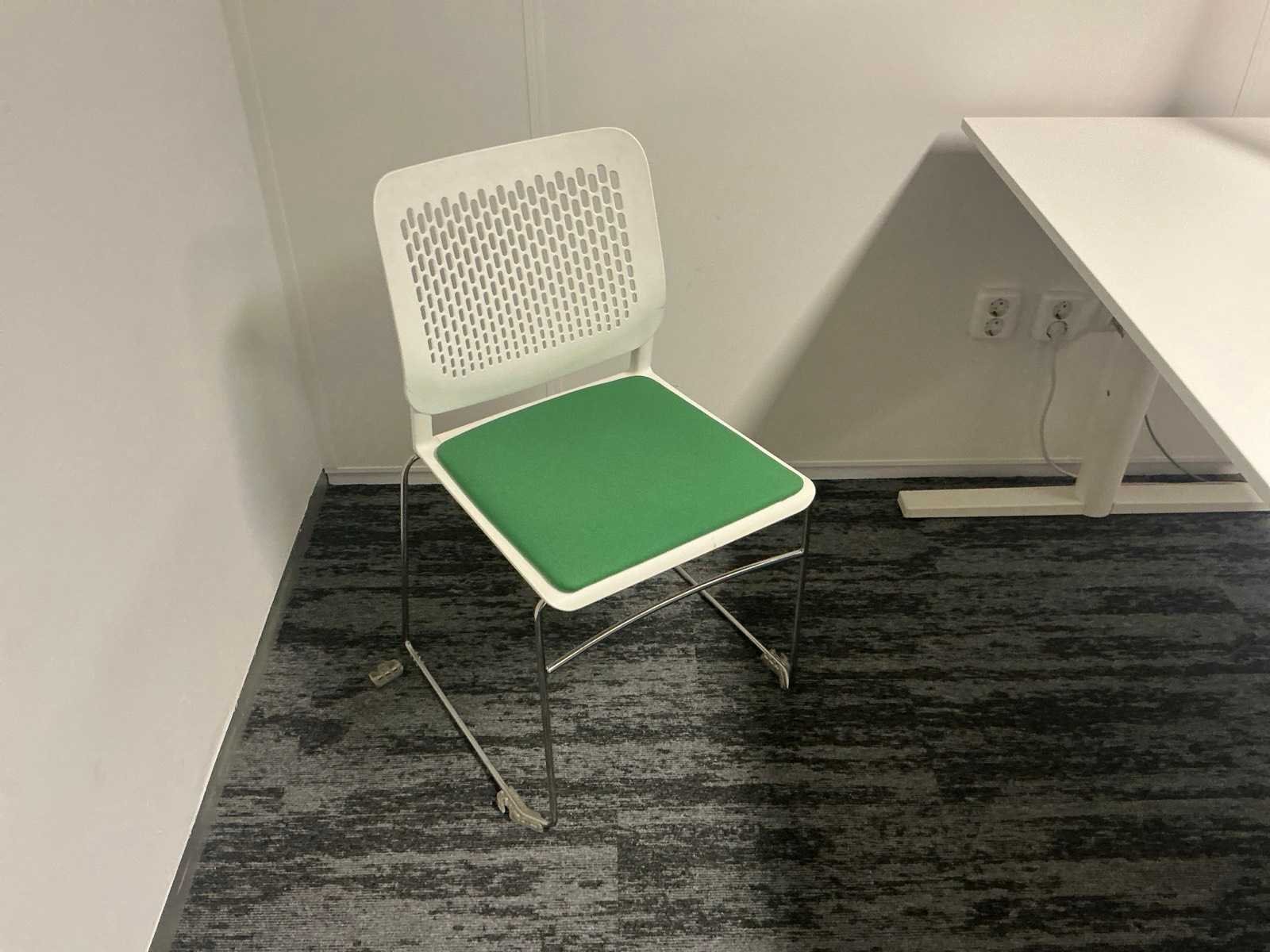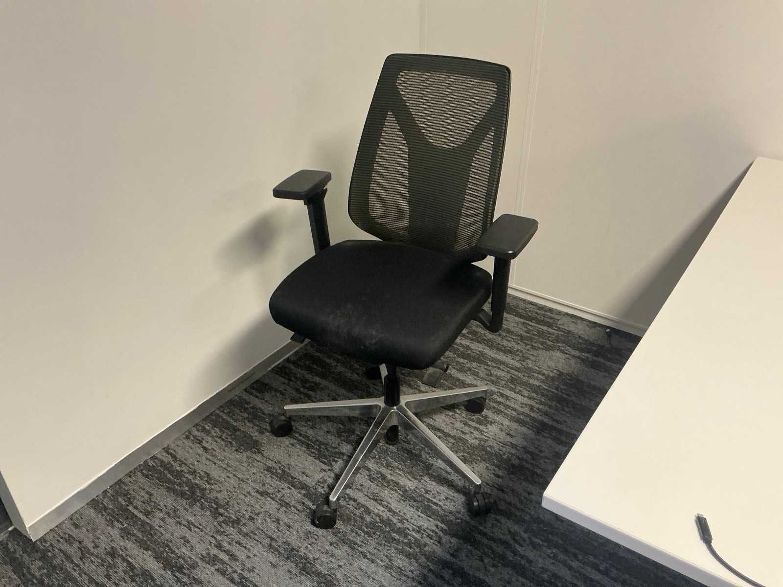 Bestaande uit: 4x bureau (190x200x75 cm, 3x 160x80x78 cm), 3x vergaderstoel, roldeurkast (120x43x197 cm), ladeblok, 2x bureaustoel. Overige goederen niet inbegrepen.