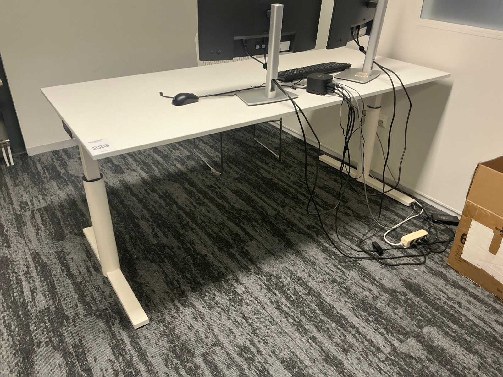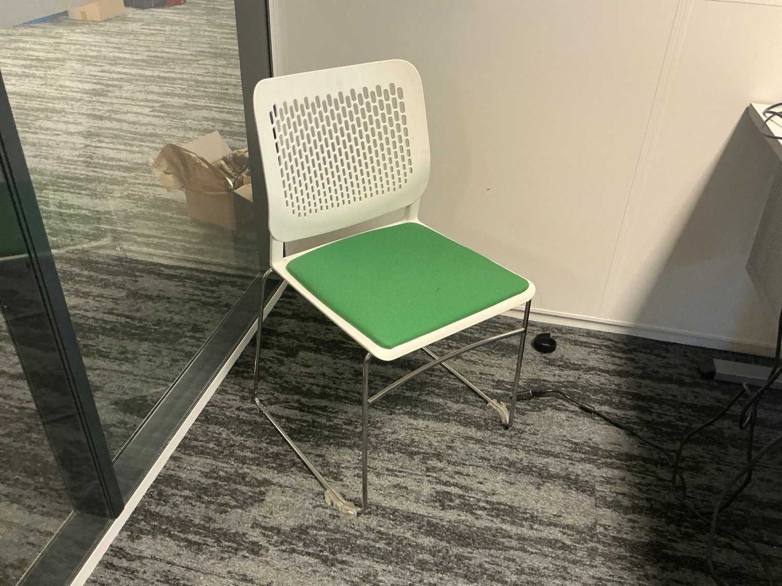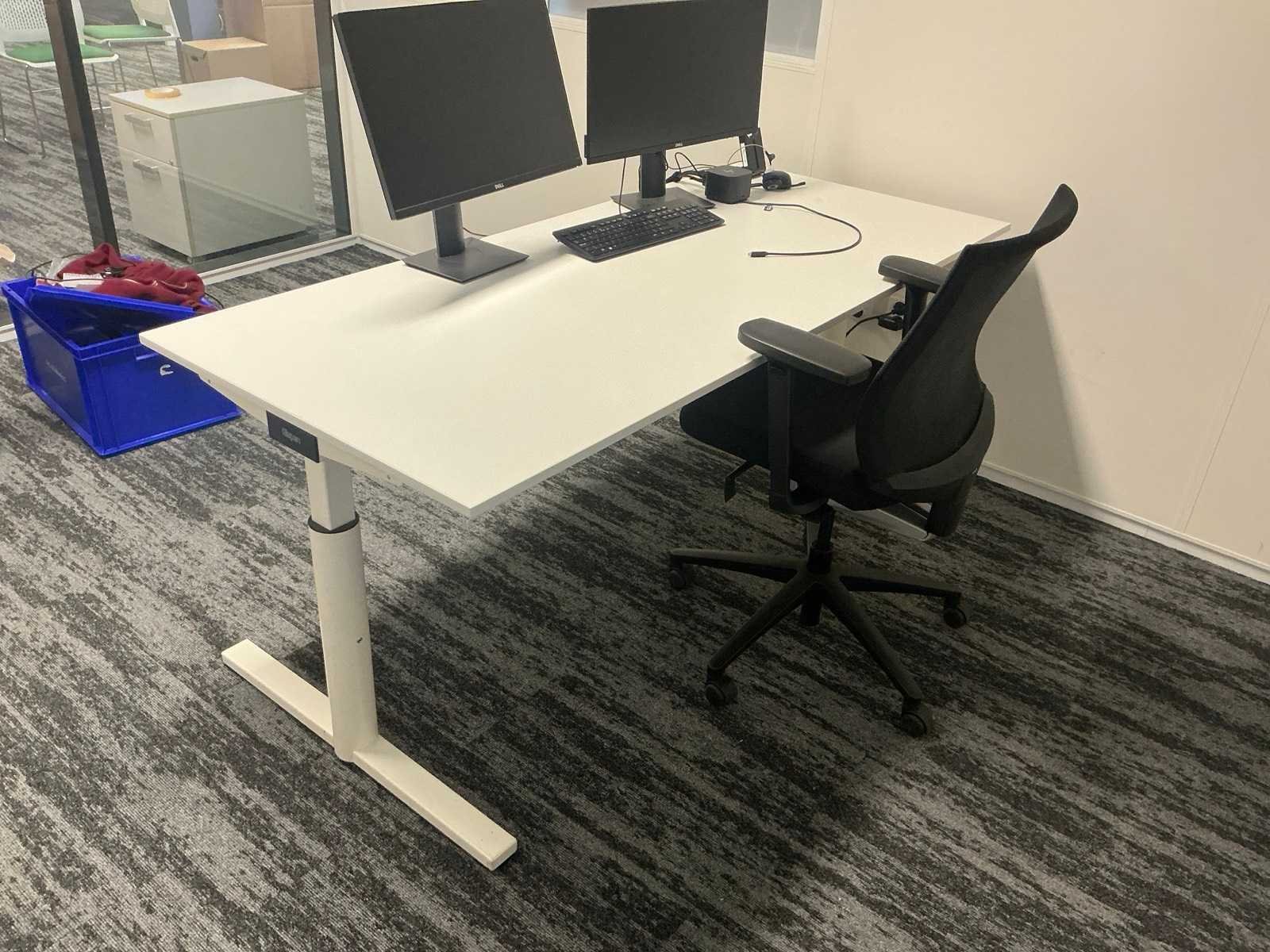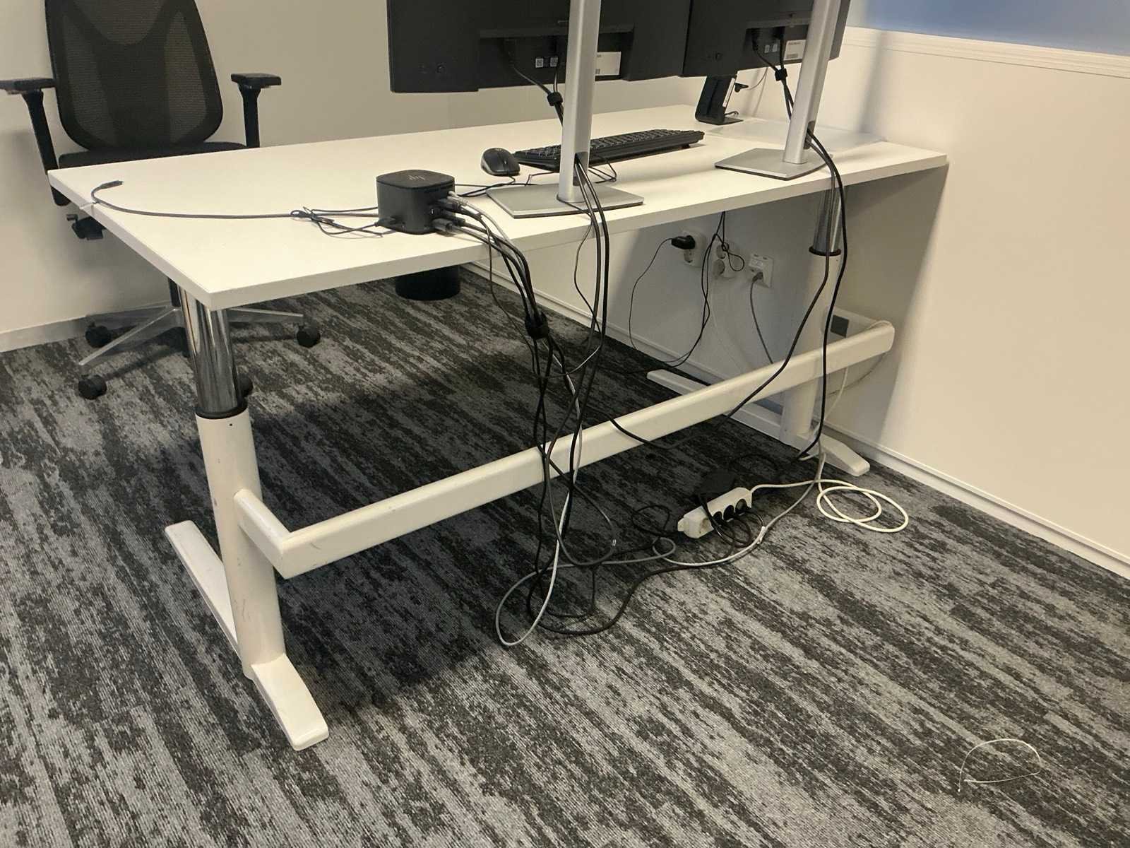 Bestaande uit: 4x bureau (190x200x75 cm, 3x 160x80x78 cm), 3x vergaderstoel, roldeurkast (120x43x197 cm), ladeblok, 2x bureaustoel. Overige goederen niet inbegrepen.