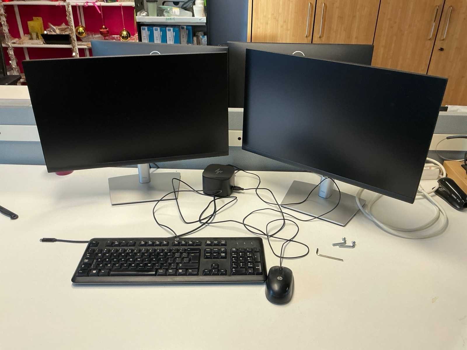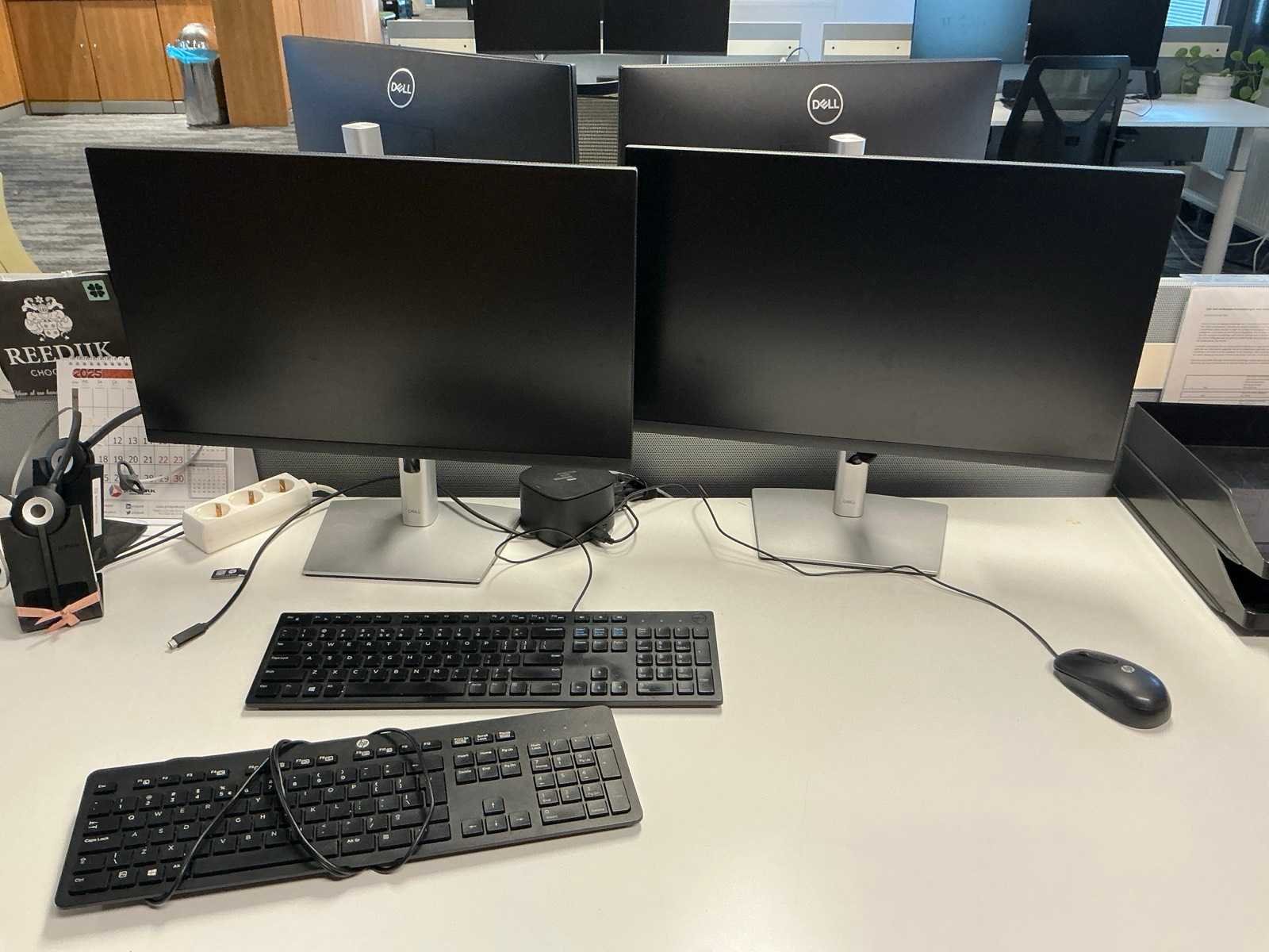 Waaronder: Dell P2422HE Monitor, HP USB-C Dock. Met diverse toetsenborden en muizen, Jabra headsets.