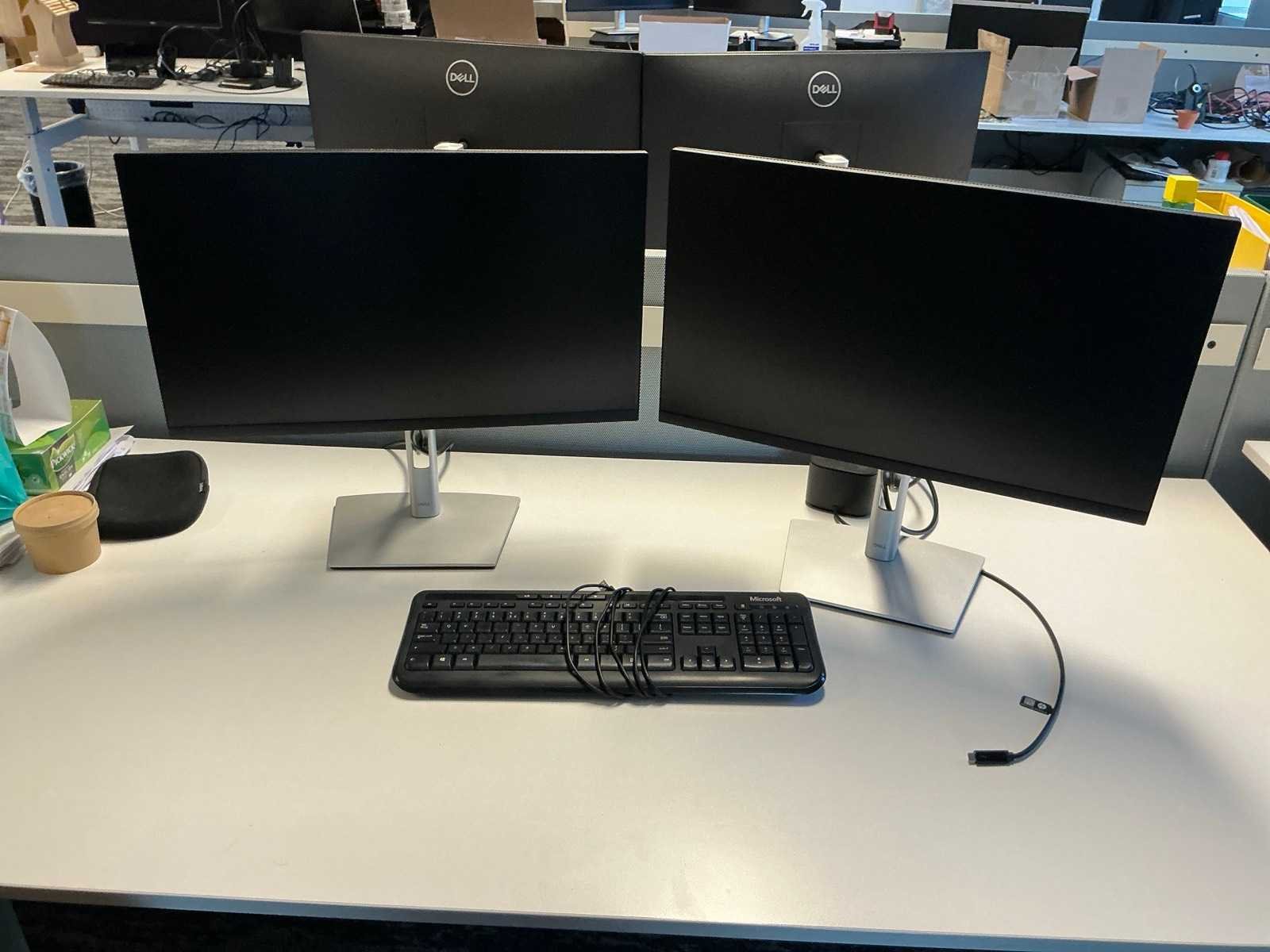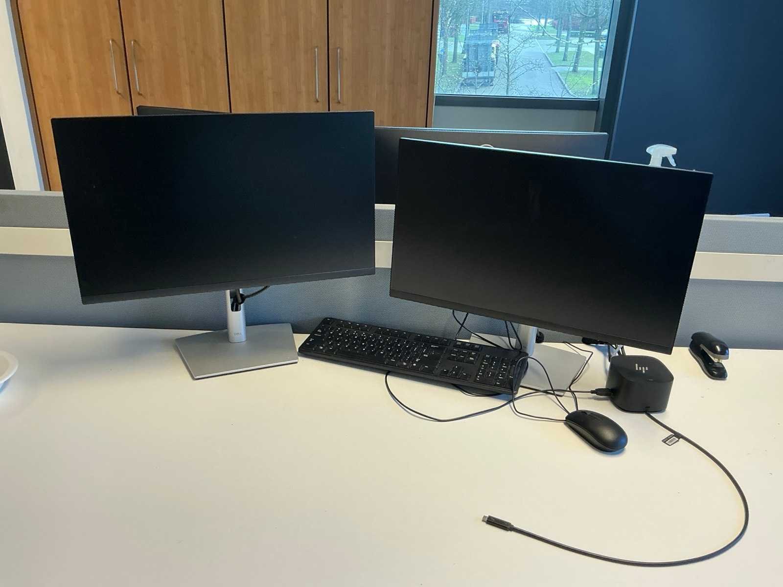Waaronder: IIyama, Dell P2422HE Monitor, HP USB-C Dock. Met diverse toetsenborden en muizen, Jabra headsets.