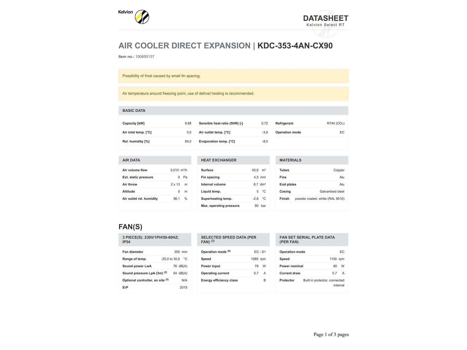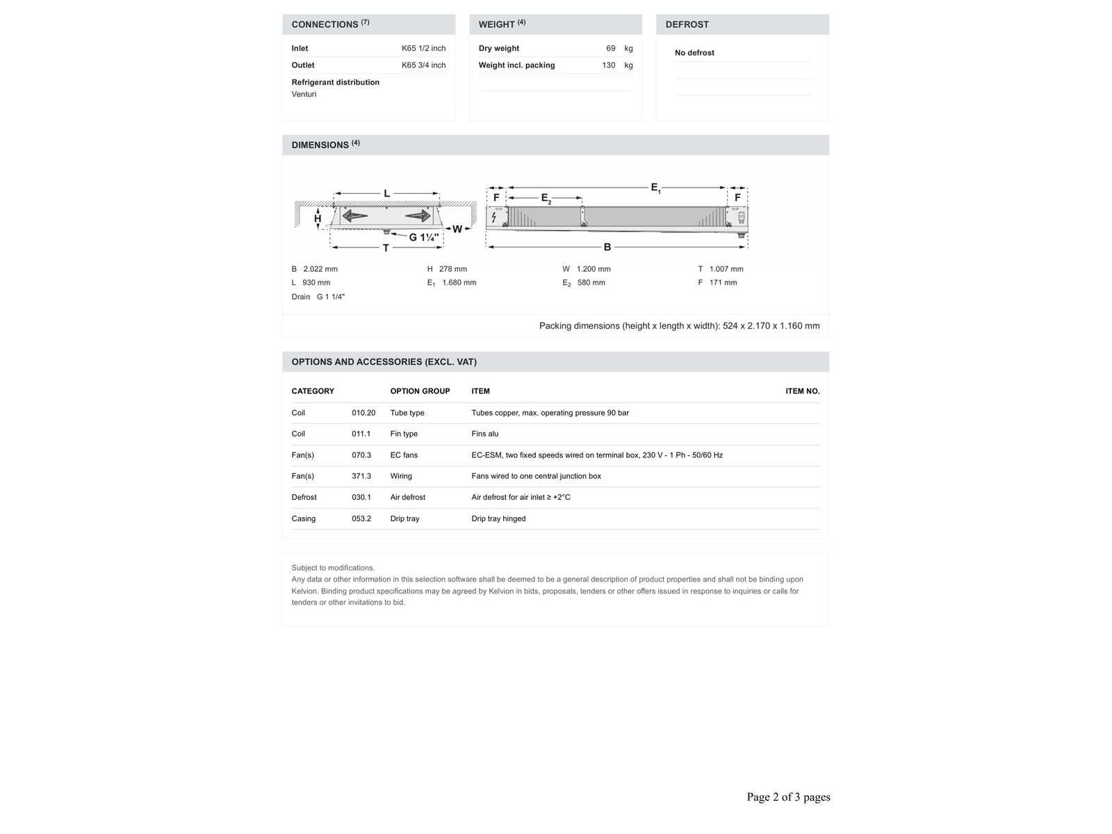 Voor Technische specificaties zie foto’s. Verdamper bevind zich in transport krat/doos. Merk: Kelvion Aansluiting: 230V Eigen gewicht: 69kg Type: KDC 353-4AN