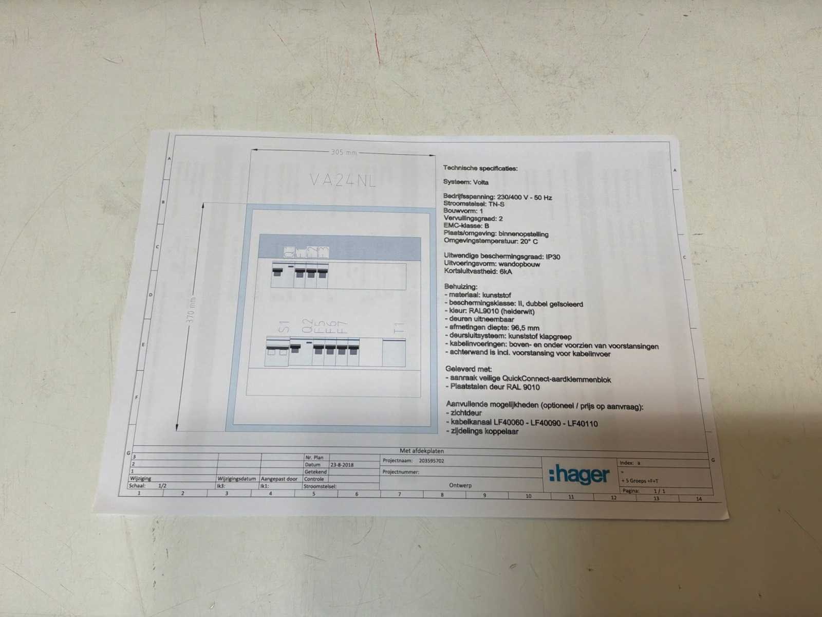 5 groepen + trafo Merk: Hager Model: VA24CN