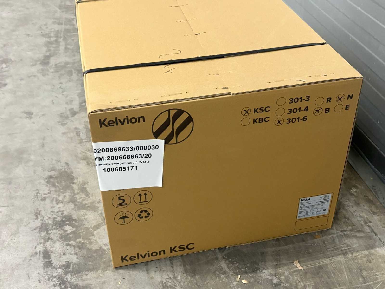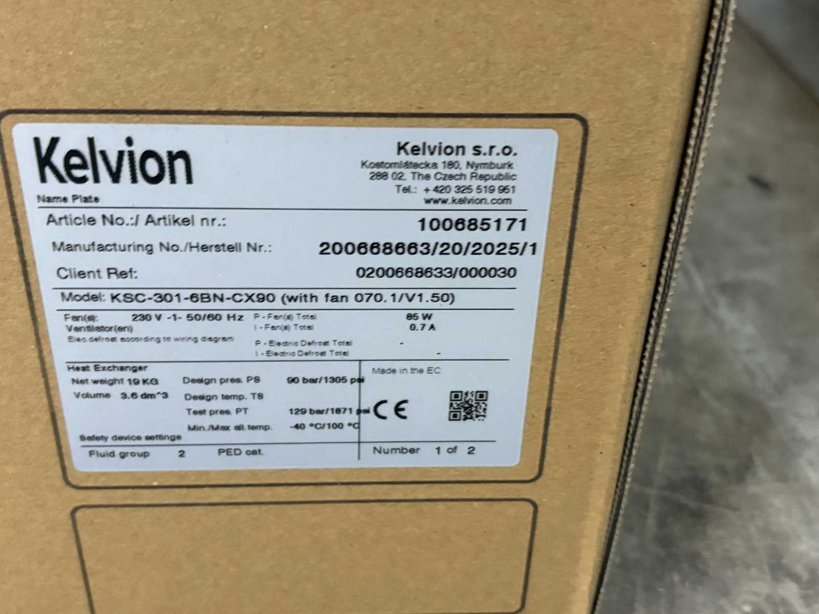 Voor Technische specificaties zie foto’s. Verdamper bevind zich in transport krat/doos. Afmetingen (LxBxH) 90x70x52 cm Merk: Kelvion Aansluiting: 230V Eigen gewicht: 19kg Type koudemiddel: R744 Type: KSC 301-6BN