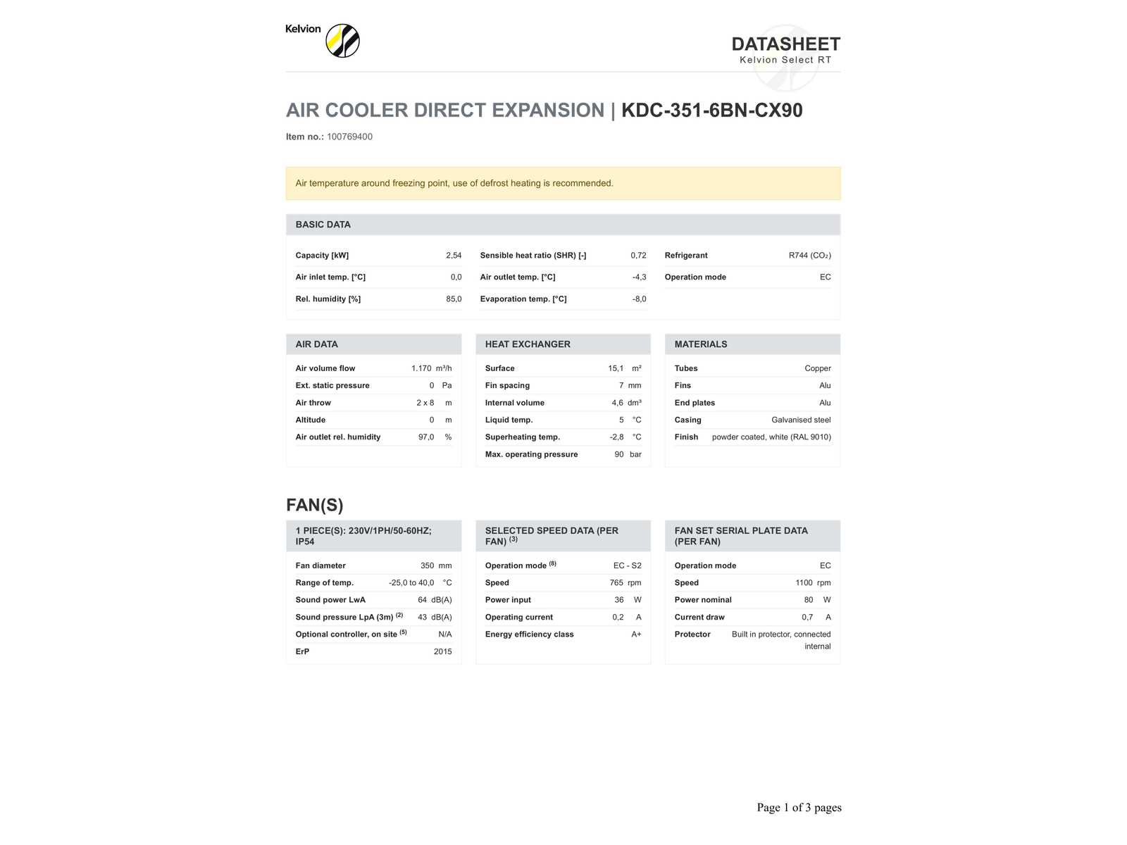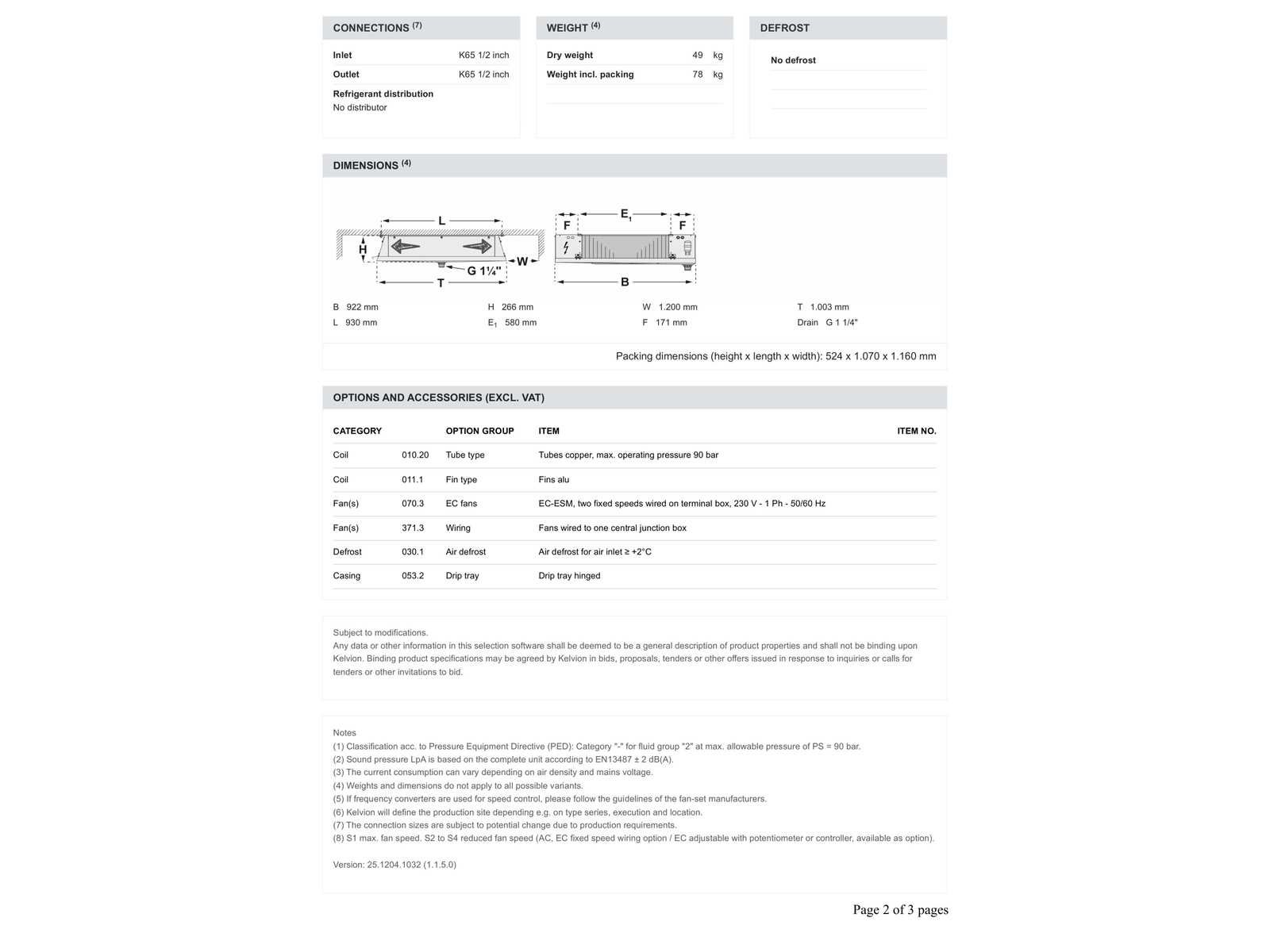 Voor Technische specificaties zie foto’s. Verdamper bevind zich in transport krat/doos. Merk: Kelvion Aansluiting: 230V Eigen gewicht: 49kg Type: KDC 351-6BN
