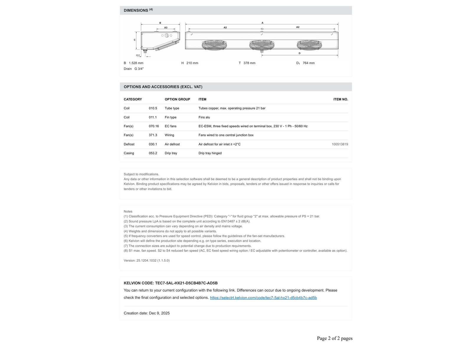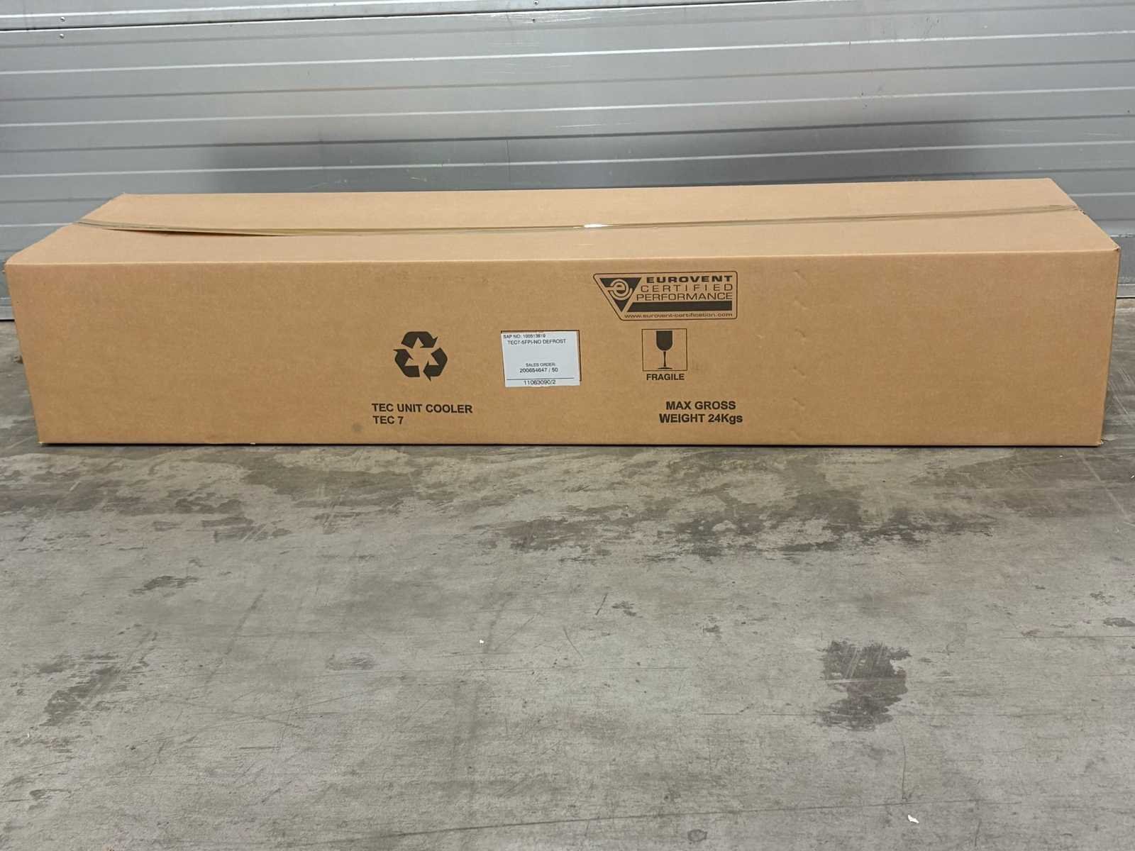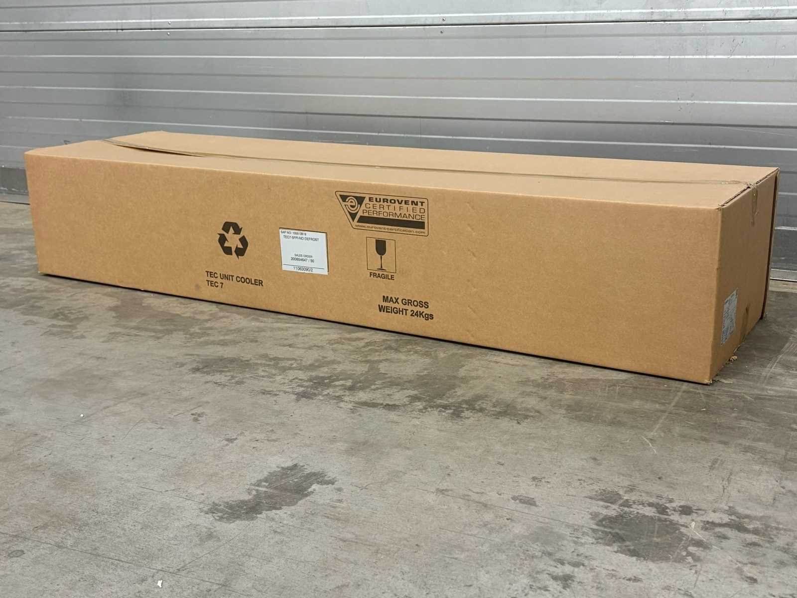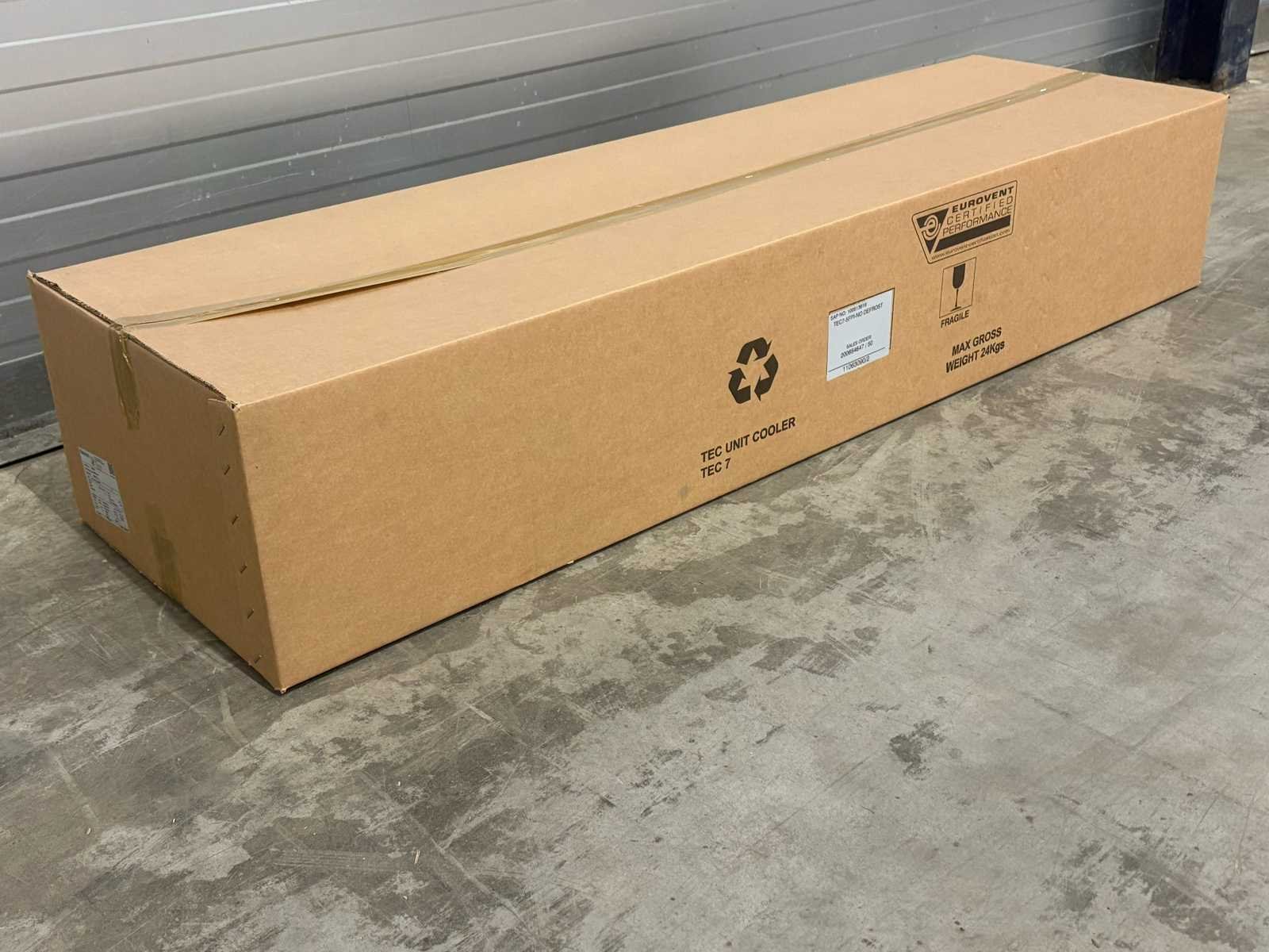 Foto 1 is NIET het juiste model zie technische tekening voor het juiste model. Verdamper bevind zich in transport krat/doos. Afmetingen (LxBxH) 165x50x30 cm Merk: Kelvion Aansluiting: 230V Type: TEC 7-5