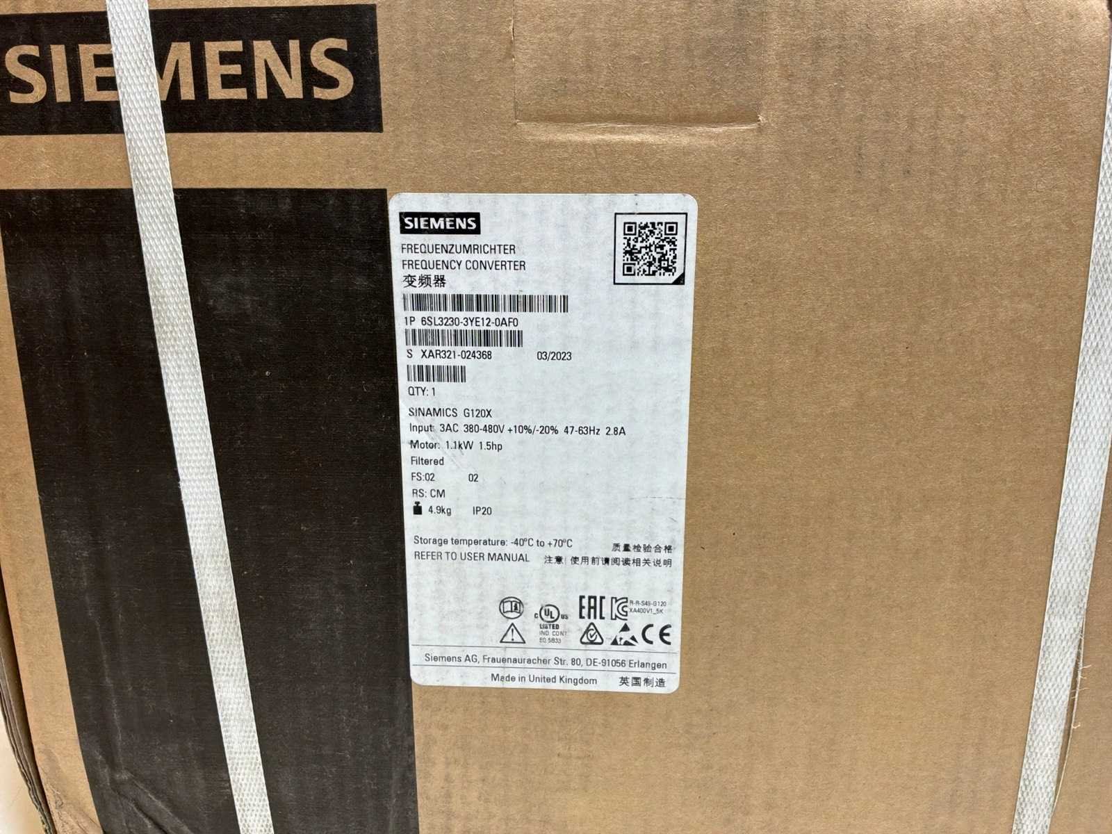 Merk: Siemens Model: Sinamics G120X Product type: 6SL3230-3YE12-0AF0