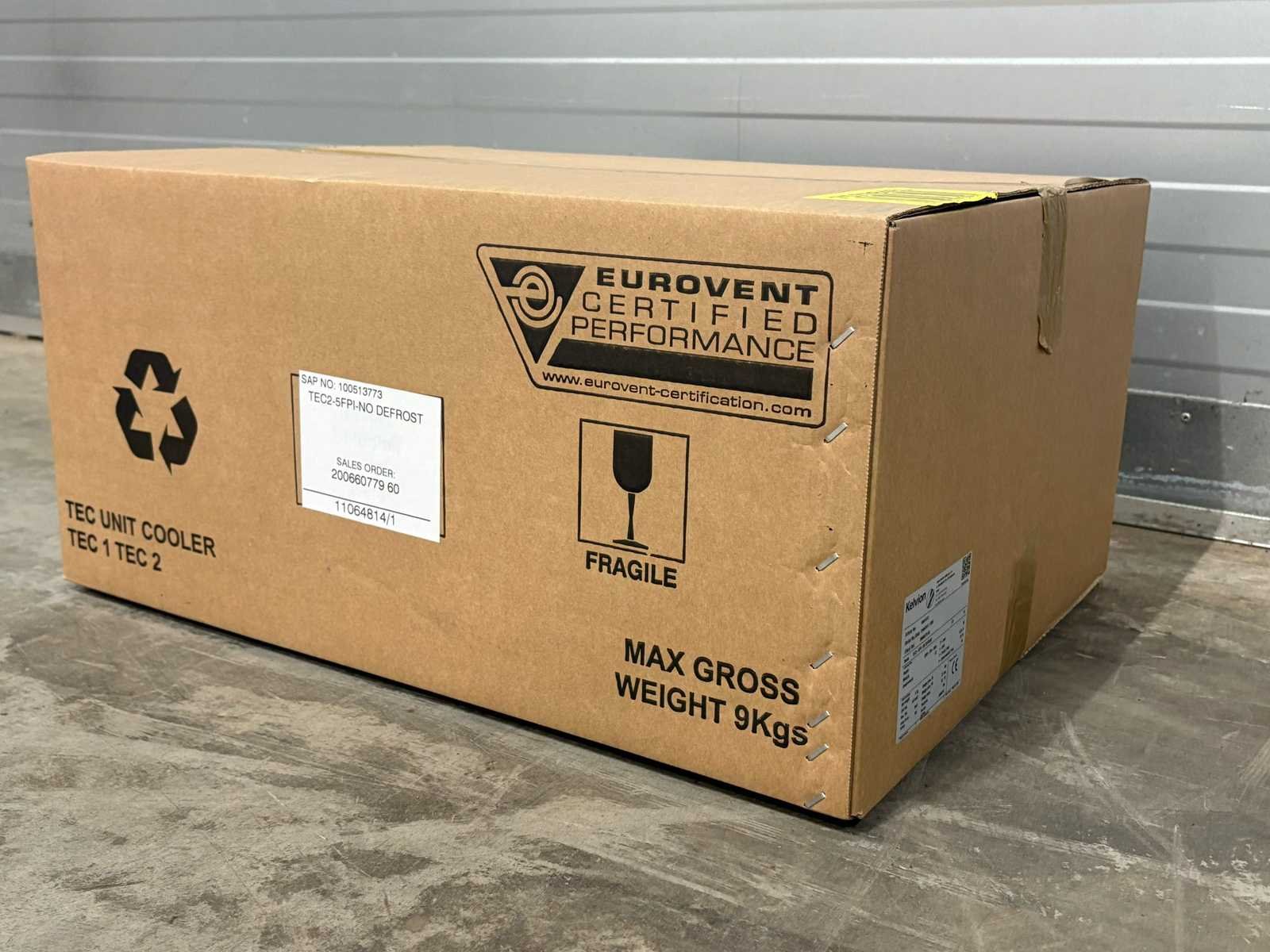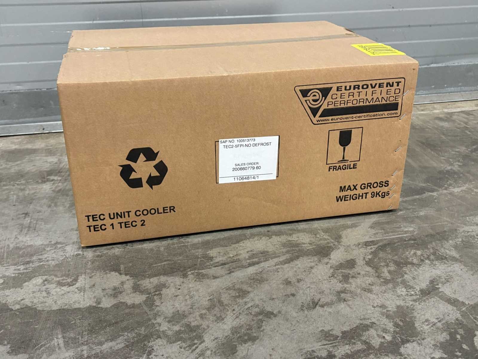 Foto 1 is NIET het juiste model zie technische tekening voor het juiste model. Verdamper bevind zich in transport krat/doos. Afmetingen (LxBxH) 62x50x30 cm Merk: Kelvion Aansluiting: 230V Type: TEC 2-5