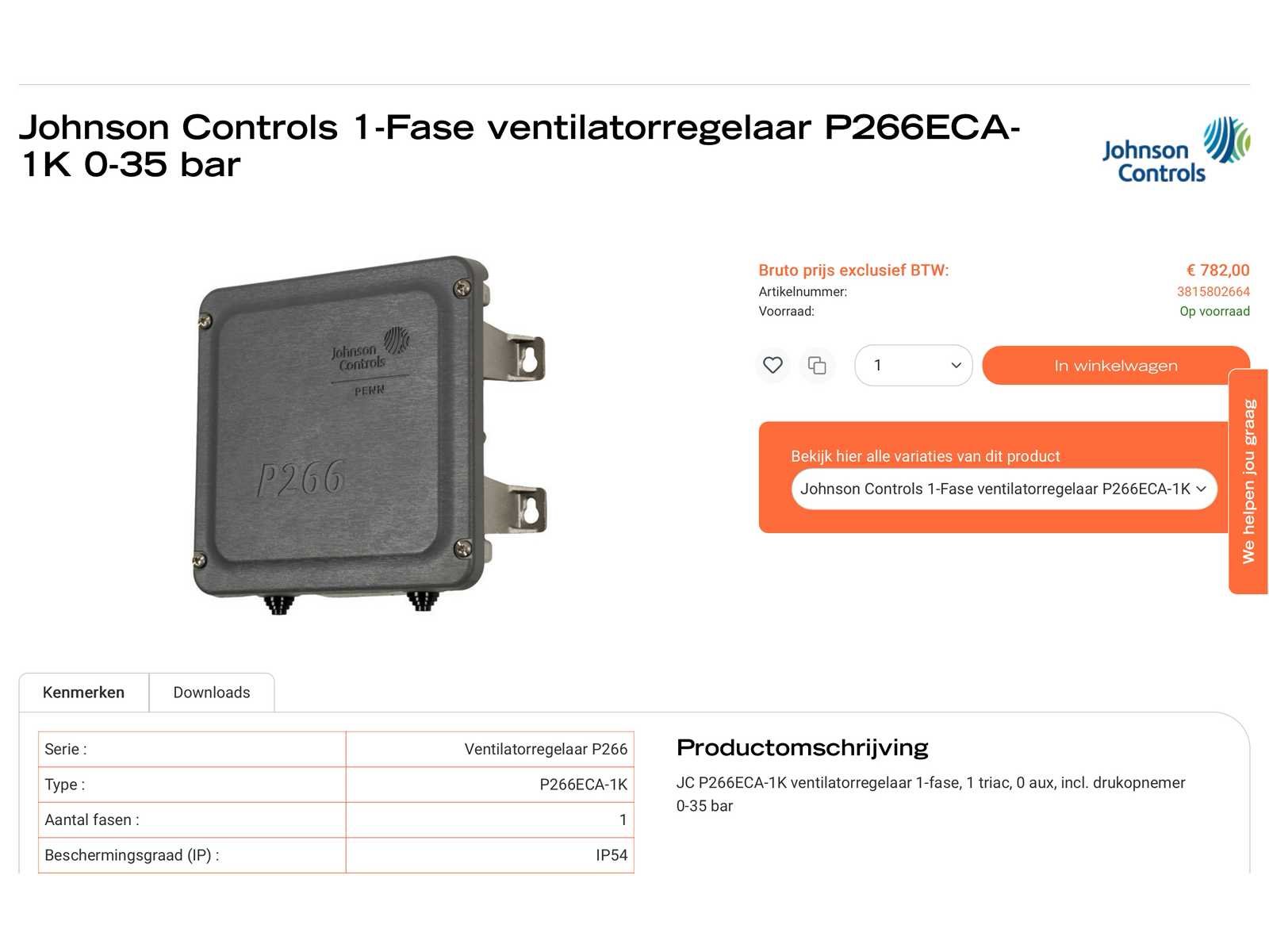 Merk: Johnson Controls Type: P266ECA-1K
