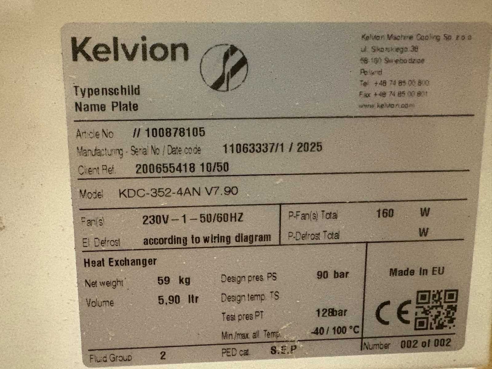 Voor Technische specificaties zie foto’s. Verdamper bevind zich in transport krat/doos. Merk: Kelvion Aansluiting: 230V Eigen gewicht: 59kg Type: KDC 352-4AN