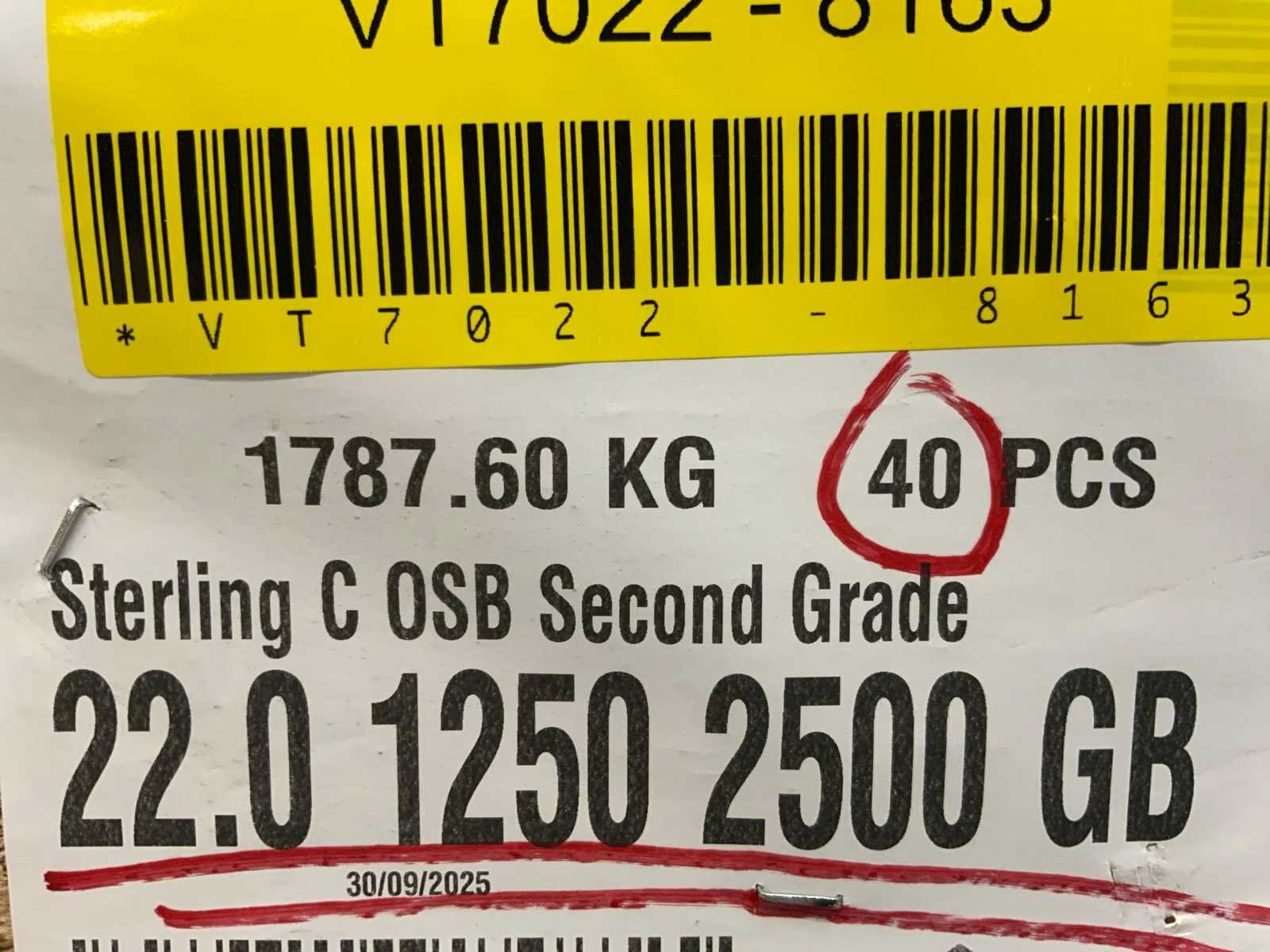 Osb plaat 2500x1250x22mm (40x)