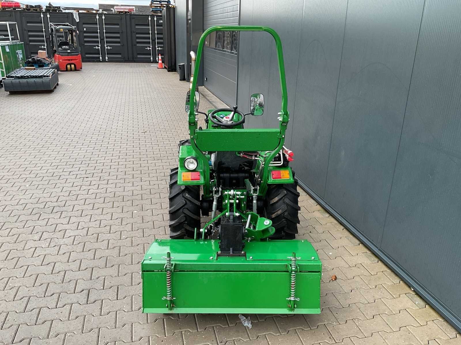 Voorzien van; 3-puntshefinrichting; 1100 mm roterende frees; 5.5/65-11 voorbanden; 8.50/75-13 achterbanden; 2 - cillinder dieselmotor; ca 20 pk vermogen; handgeschakeld 2 bereiken; Aftakas (WOM/PTO) achter 2 snelheden; 1 paar hydraulische uitgangen achter; voorgewichten aan de neus Merk: Greenstar Type: MK20 Bouwjaar: 2024 Motorvermogen (kW): 14,7kW Versnellingsbaktype: handgeschakeld Aantal hydraulische ventielen achter: 2 Eigen gewicht: 600kg