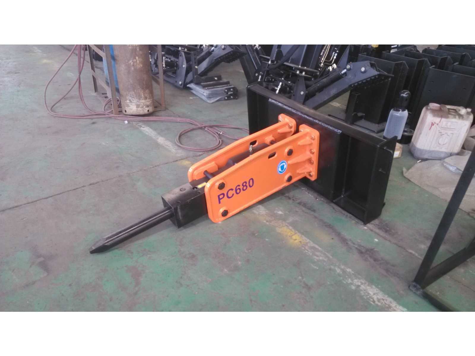Voorzien van schranklader/“bobcat” opname-/aanbouwplaat; lengte 1719 mm; werkdruk 50-90 liter/min; werk kracht 120-170 kg/cm2; impact rate 400-800 bpm; beitel diameter 7,5 cm; 6-9 Ton; geleverd in stalen krat; ongebruikt Merk: Rhino-cross Type: Hydraulic Breaker Bouwjaar: 2025 Eigen gewicht: 375kg