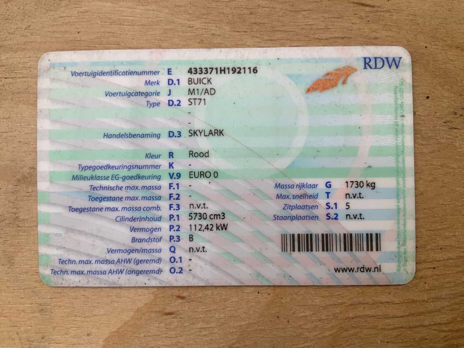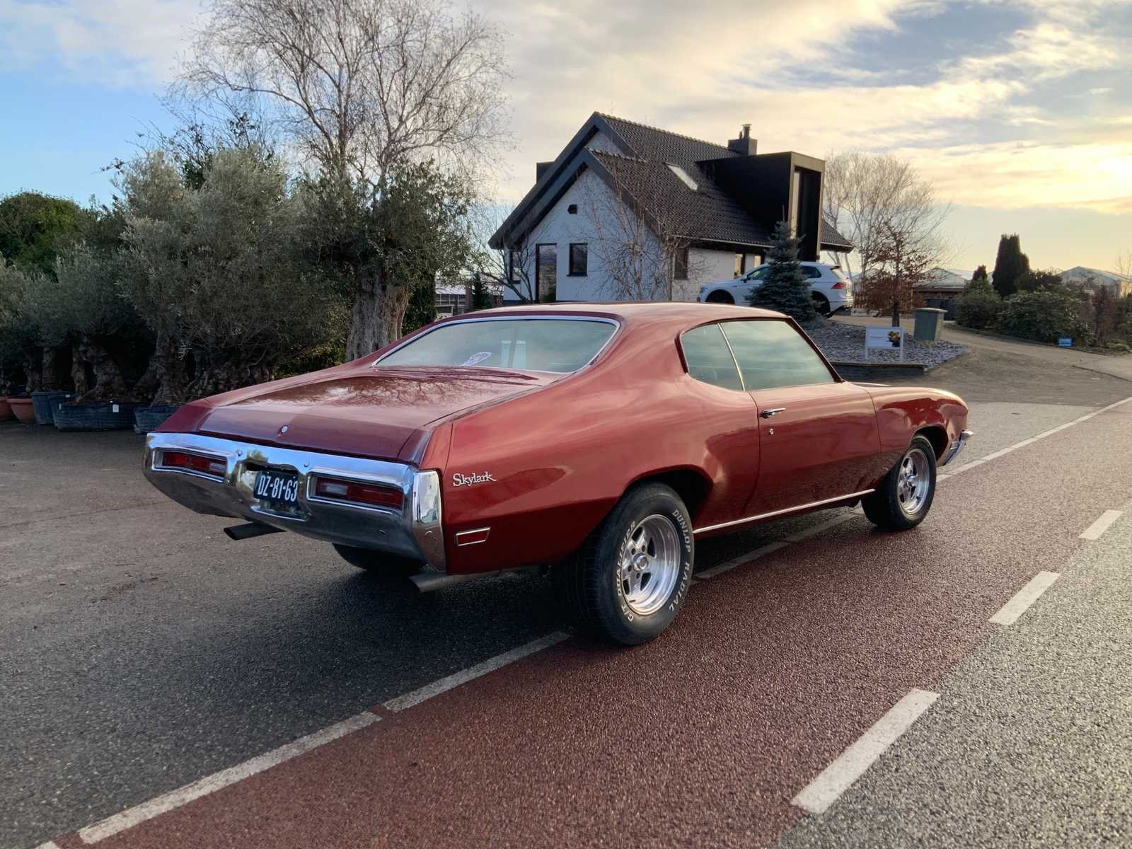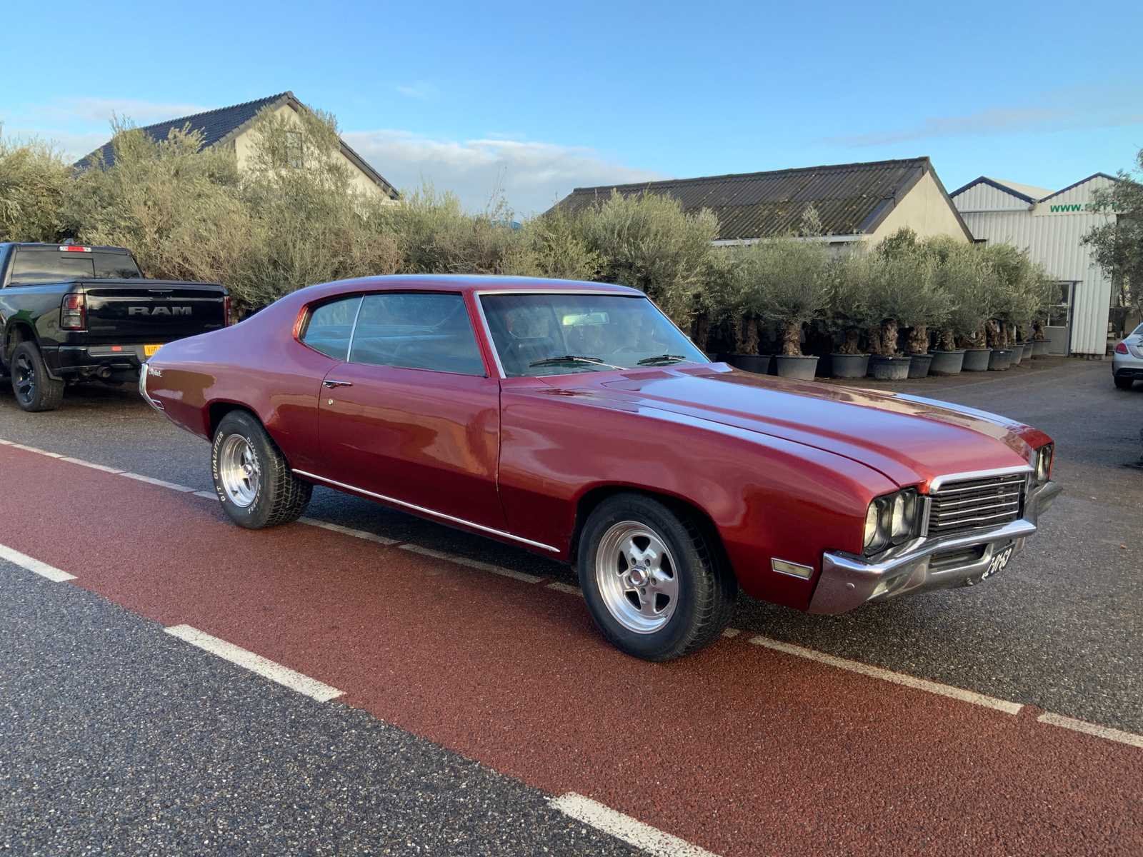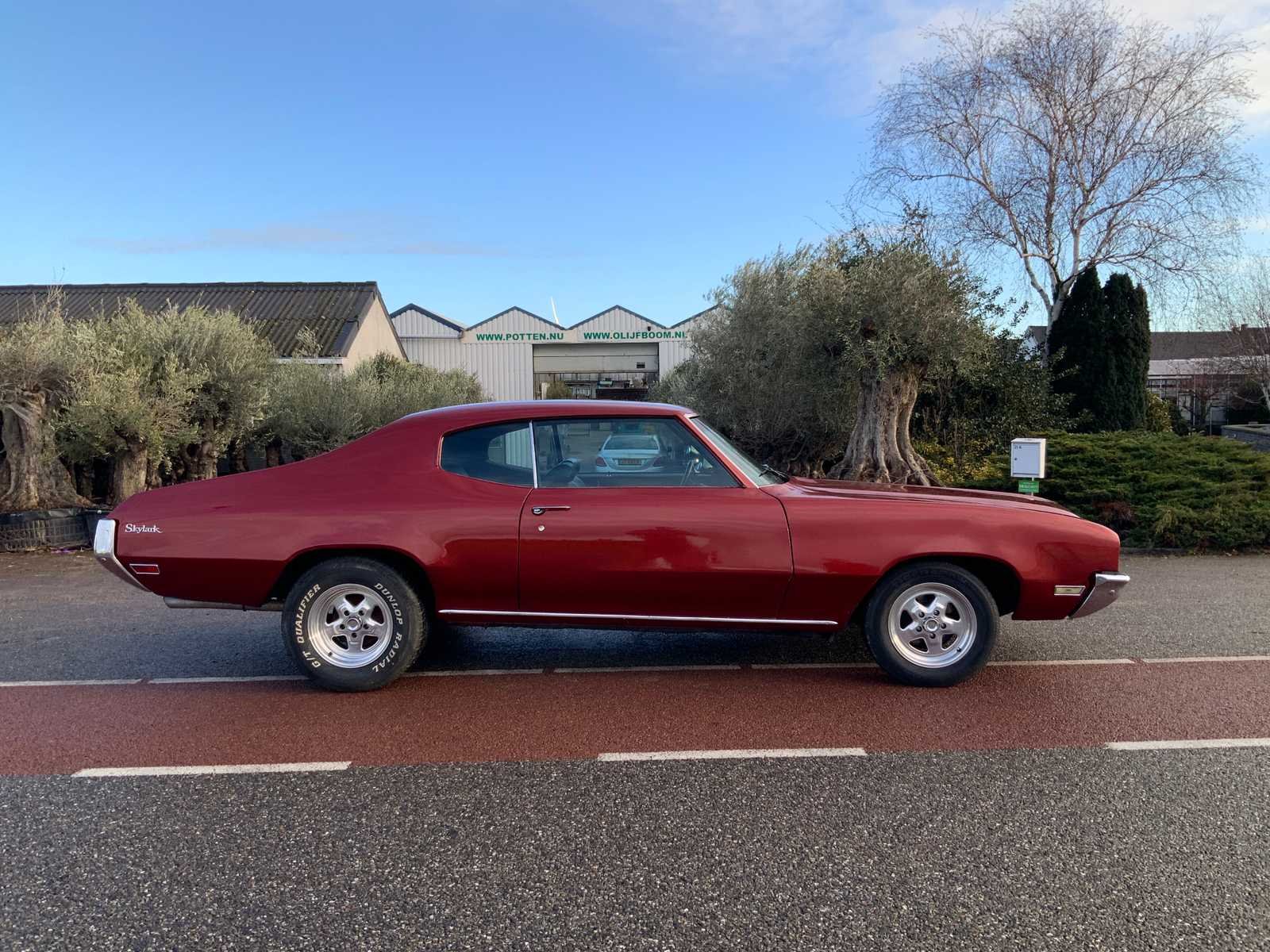 Buick is uitgevoerd met 350 motor en dubbele turbo, gereviseerde en verzwaarde 400 versnellingsbak, sper cardan, nieuwe line lock, nieuwe startmotor, schokbrekers vernieuwd, vering vernieuwd, goede banden en uitlaat aangepast voor extra V8 geluid. Kenteken: DZ-81-63 Merk: Buick Type: Skylark Bouwjaar: 1971 Chassisnummer: 433371H192116 Afgelezen mijlenstand: 36657mi Brandstof: benzine Datum eerste toelating: 1971-02-28 Datum eerste toelating (NL): 2019-07-11 Kentekenpapieren compleet?: true Carrosserie: coupe Emissieklasse: 0 Aantal deuren: 2 Aantal zitplaatsen: 5 Kleur: rood Cilinderinhoud: 5730 Aantal cilinders: 8 Ledig gewicht: 1630 Self drive export possible : true