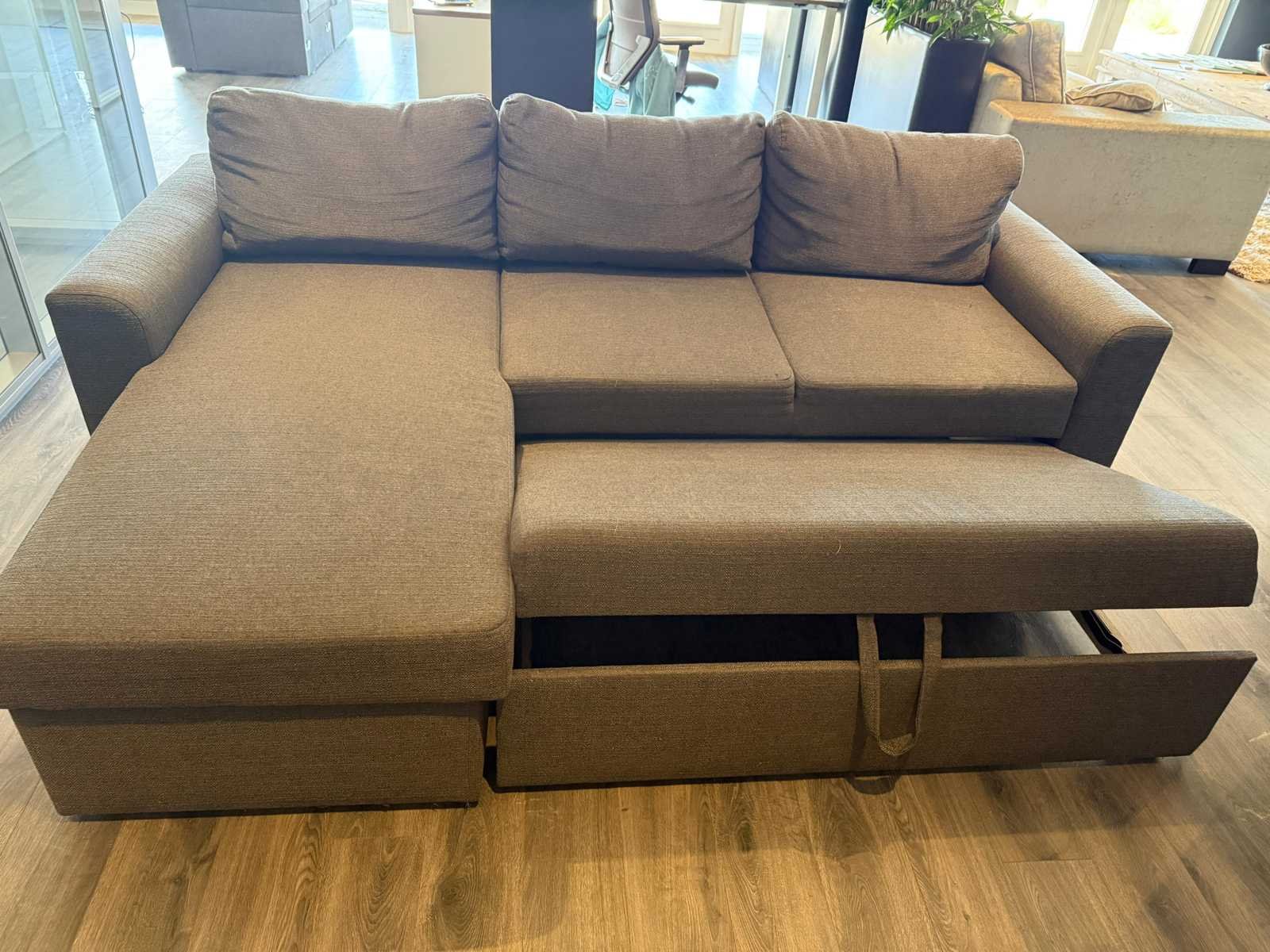 Bedden zijn nieuw gekocht in 2025 zie foto van factuur, nieuwprijs per stuk bij Leen Bakker is € 649,- afmeting slaapgedeelte 132 x 187 cm en geïntegreerde opbergruimte, slaapbank bestaat uit twee delen en losse kussens. Merk: Turijn Lengte: 215cm Breedte: 145cm Hoogte: 82cm Zithoogte: 46cm Materiaal: Stof
