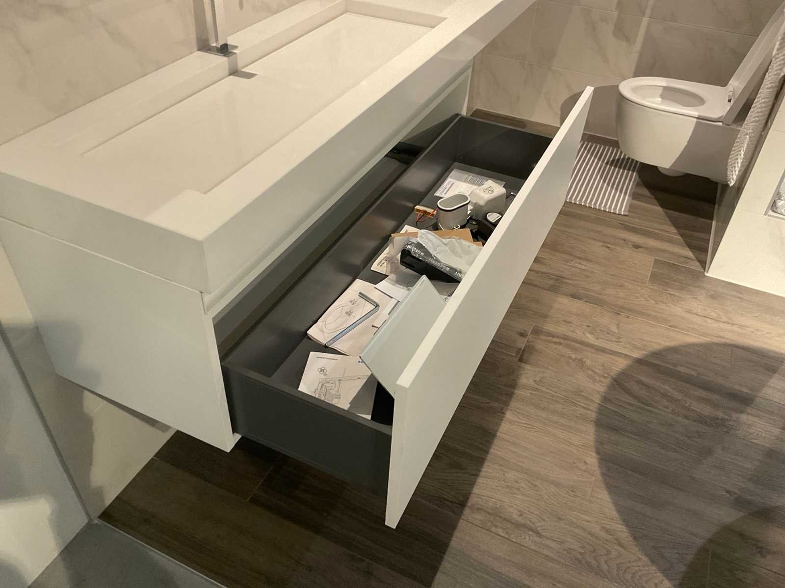 Met spiegel en kraan; zonder hanglampen, handdoekrek en accessoires; Let op; kijken op afspraak via aanmelden@troostwijkauctions.com. Merk: Dsan Lengte: 240cm Breedte: 45cm Hoogte: 50cm