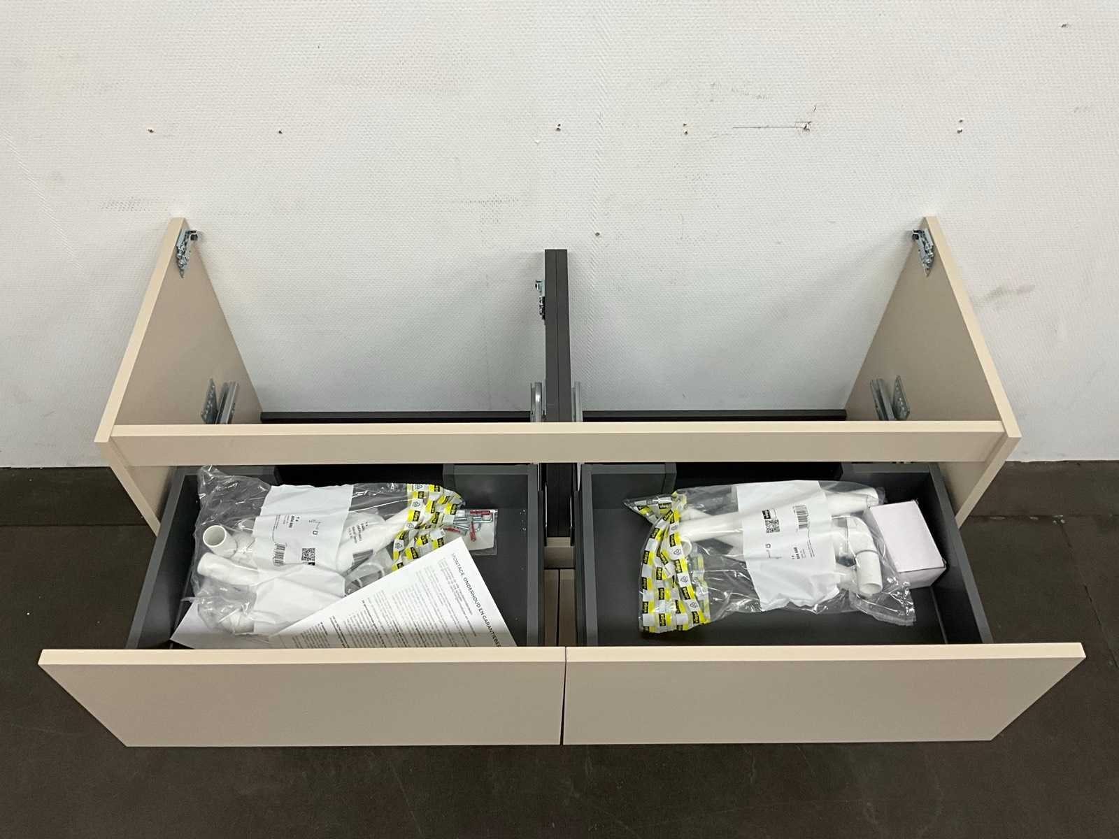 Merk: Primabad Kleur: Grijs, zacht wit Lengte: 120cm Breedte: 43cm Hoogte: 65cm